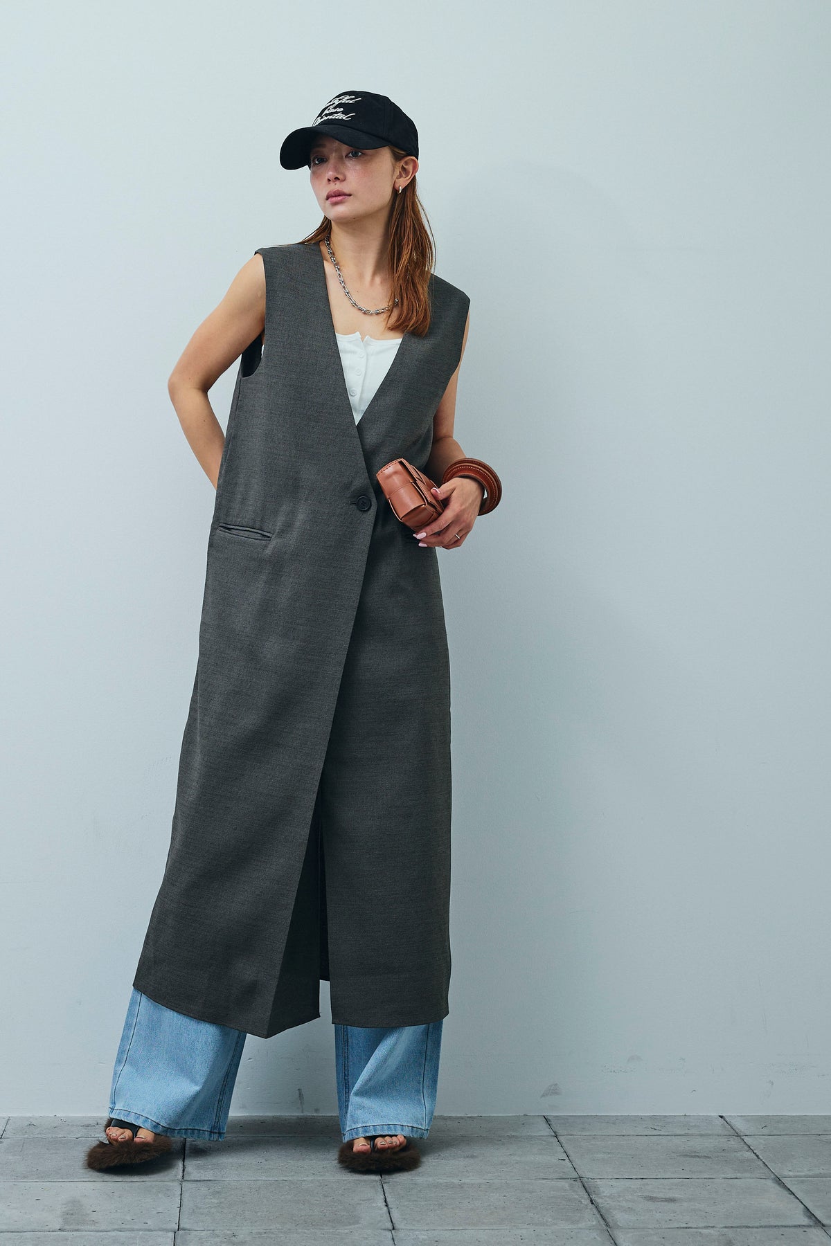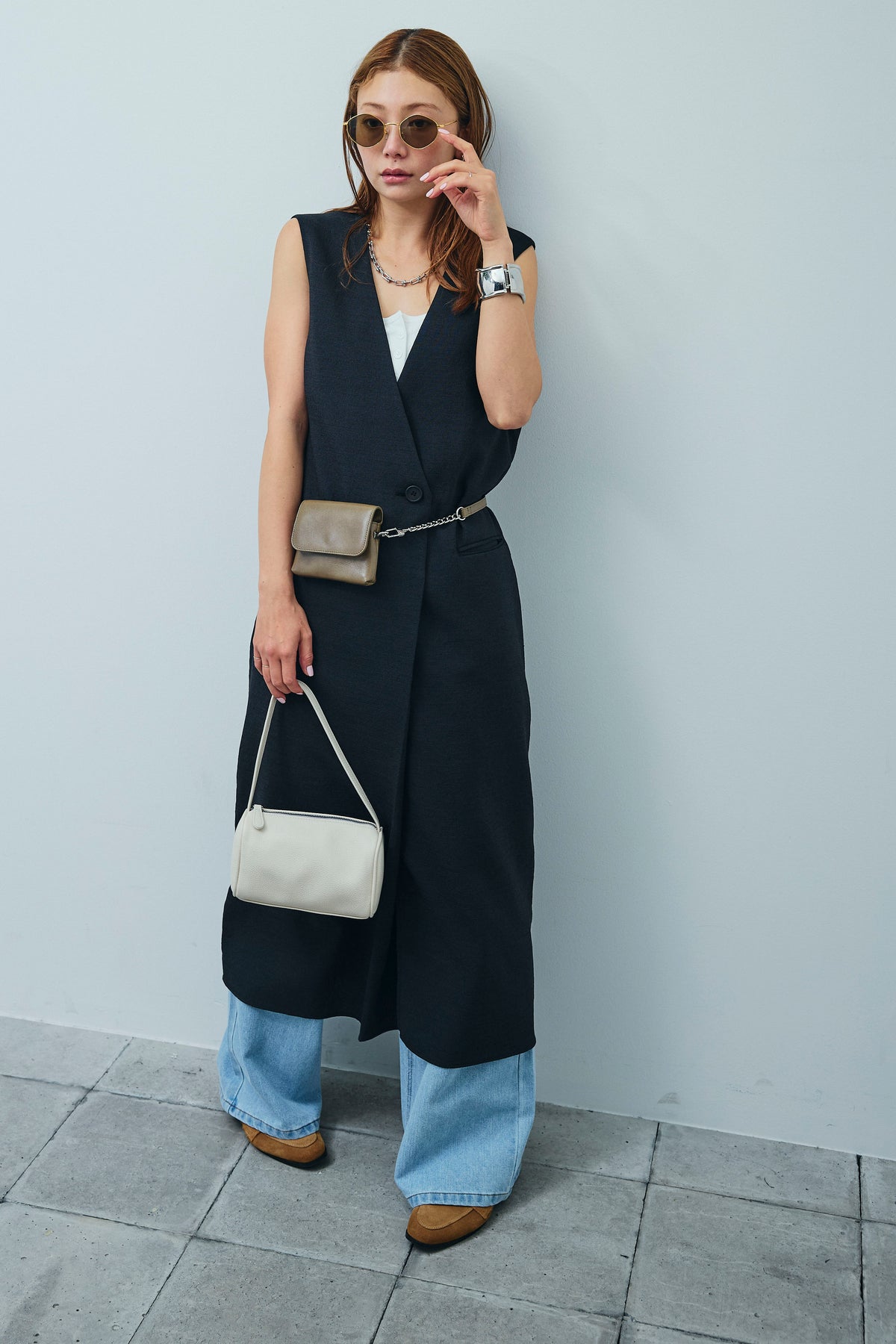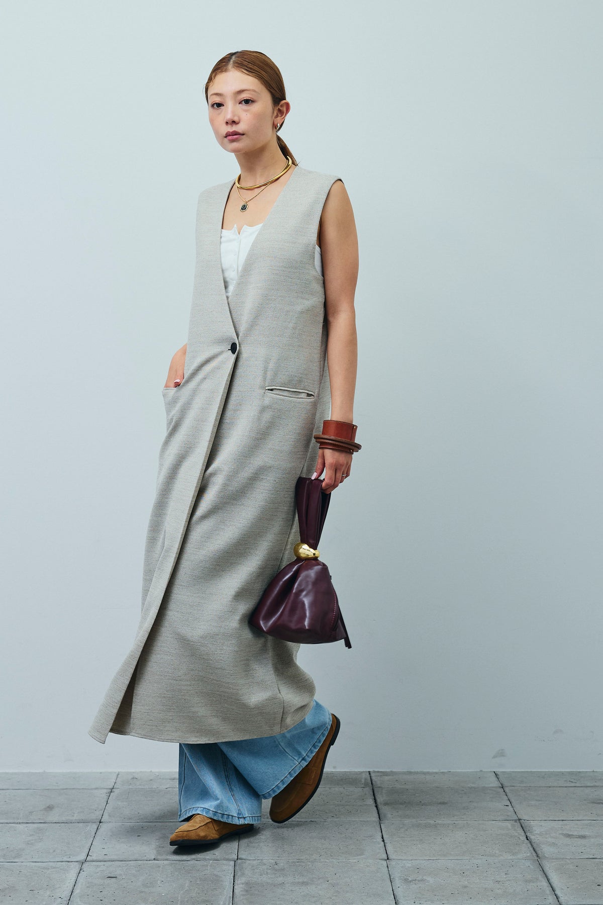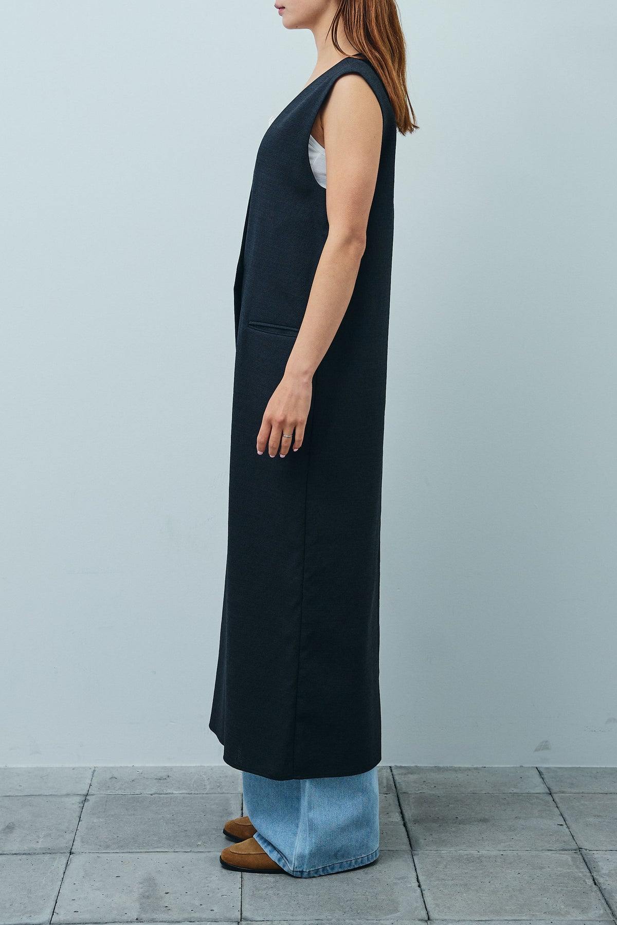 [予約/SET]リネンタッチVネックロングOP+デニムルーズポケットパンツ(2set)