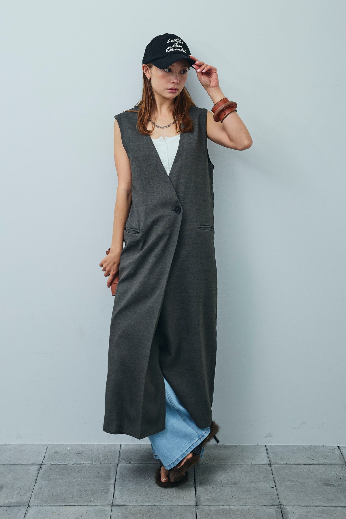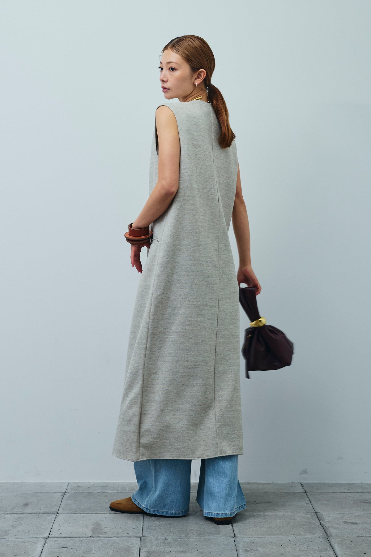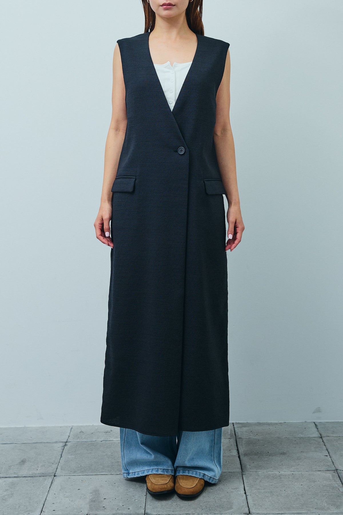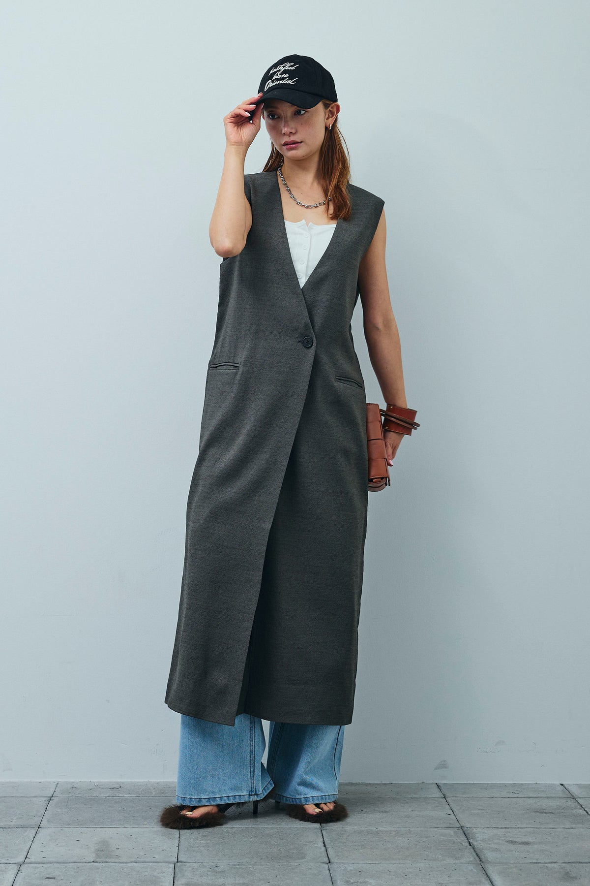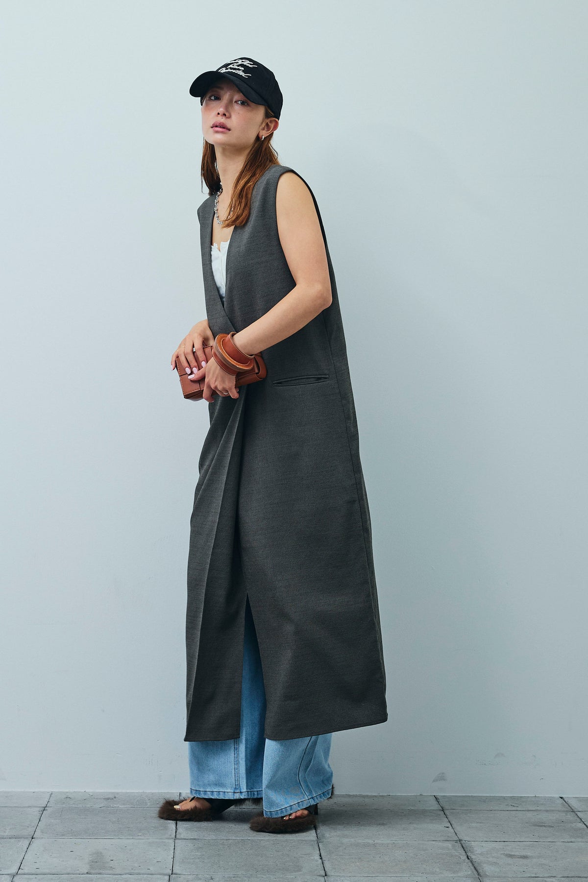 [予約/SET]リネンタッチVネックロングOP+デニムルーズポケットパンツ(2set)