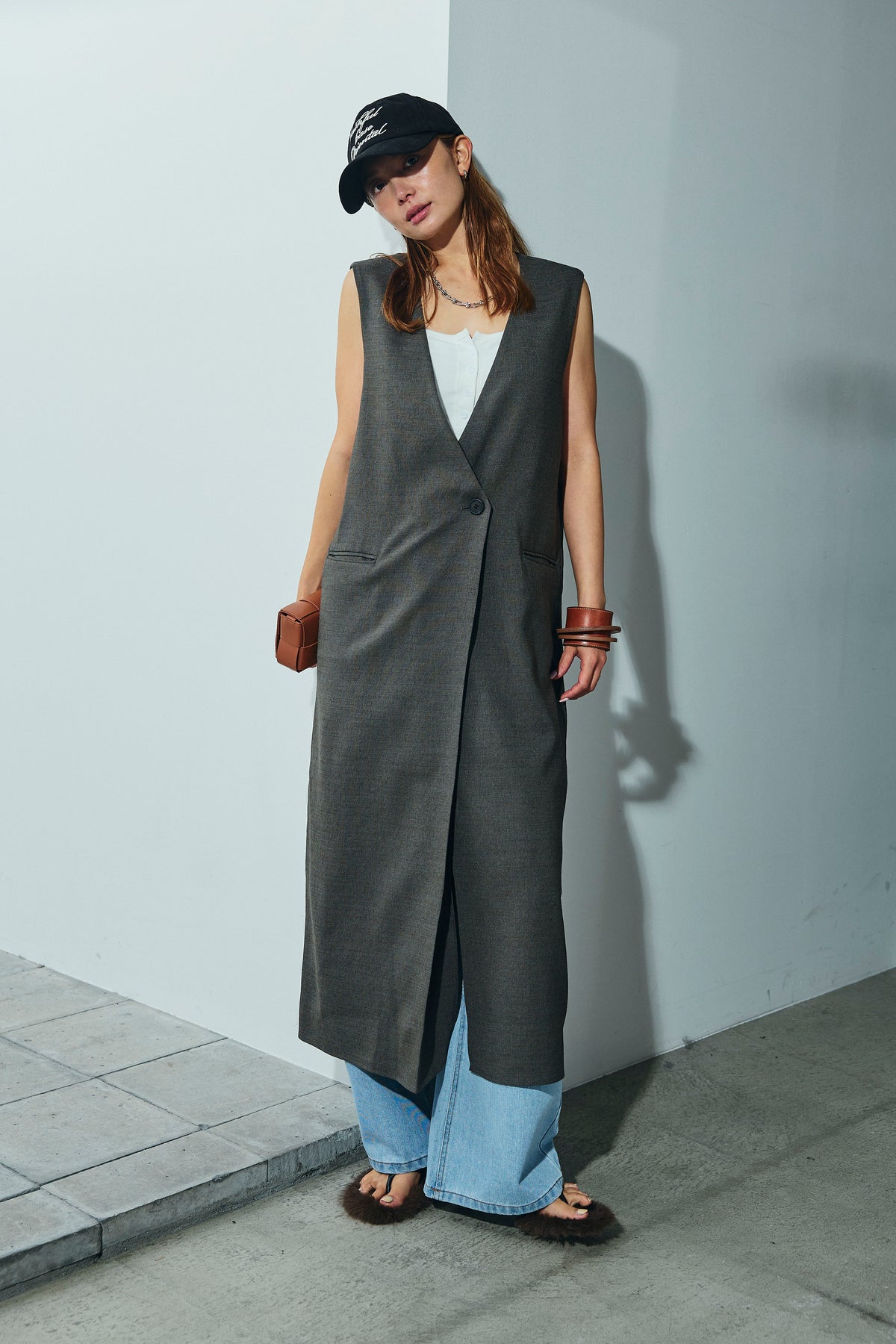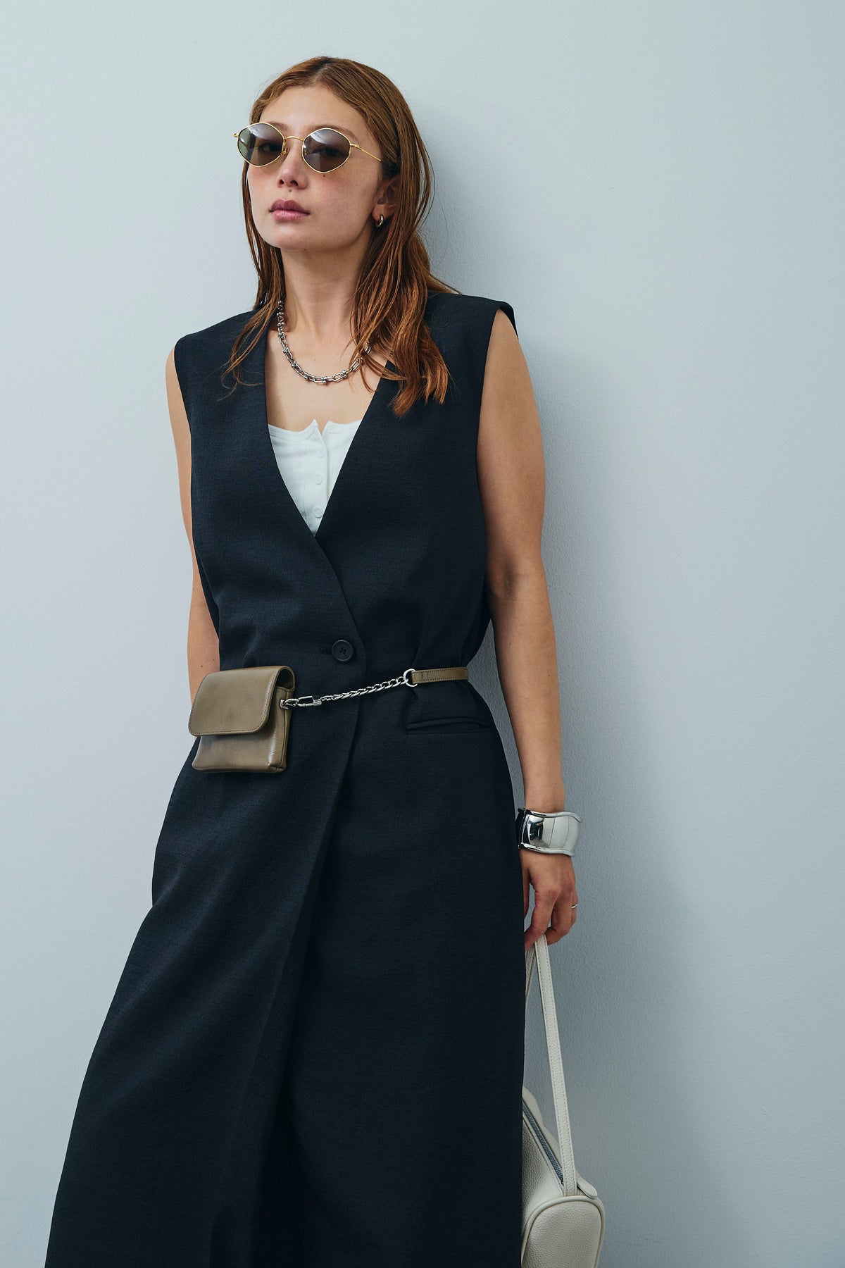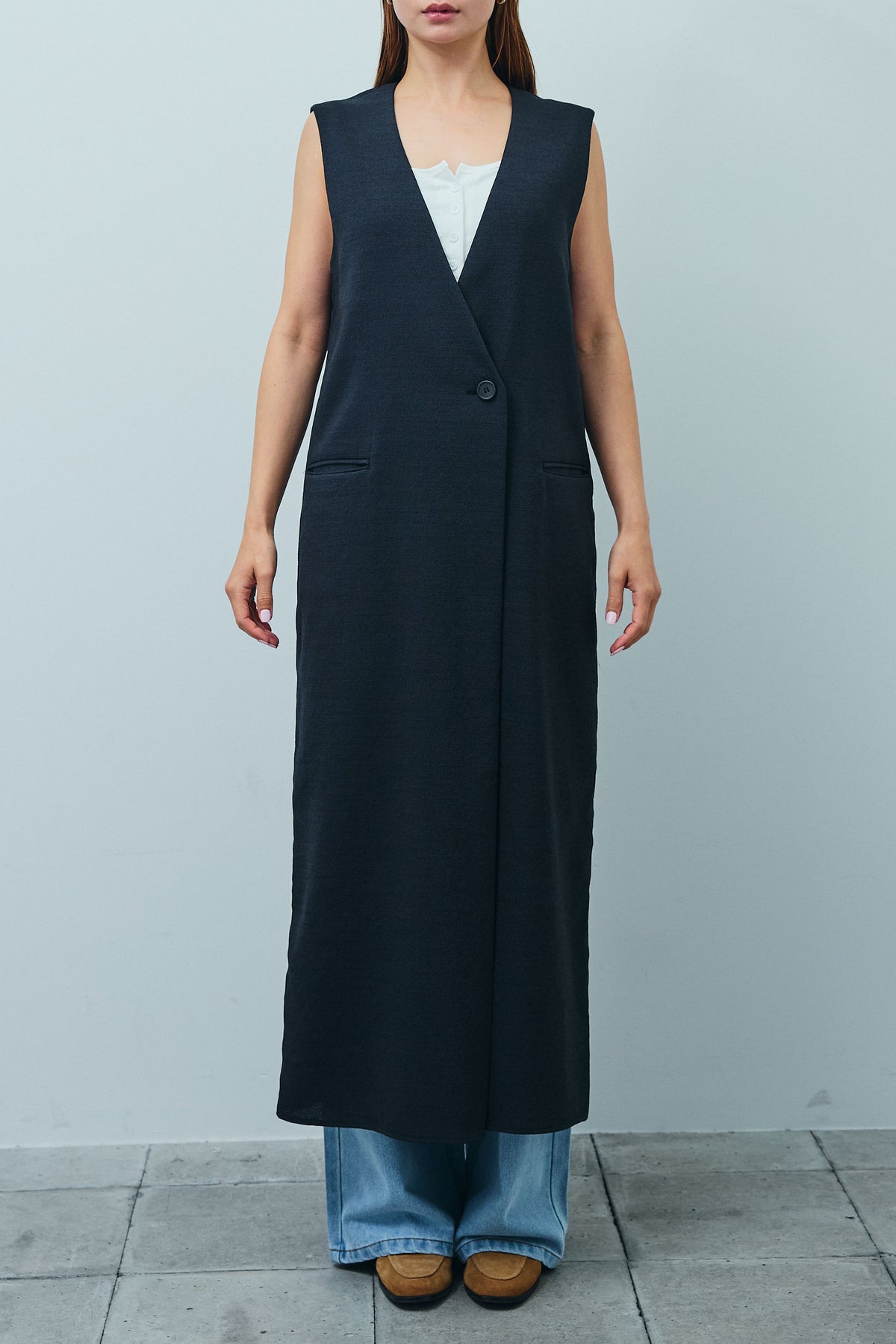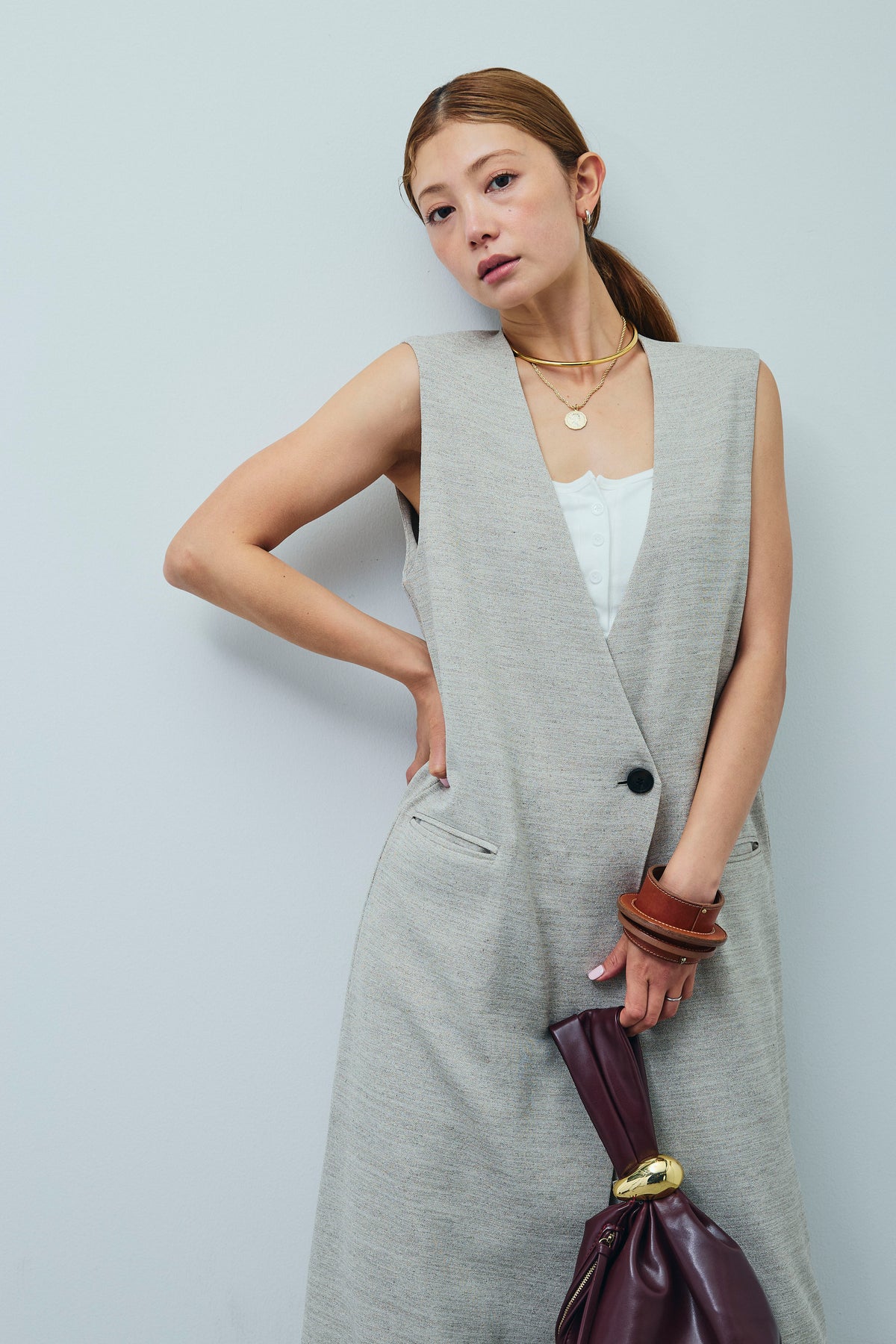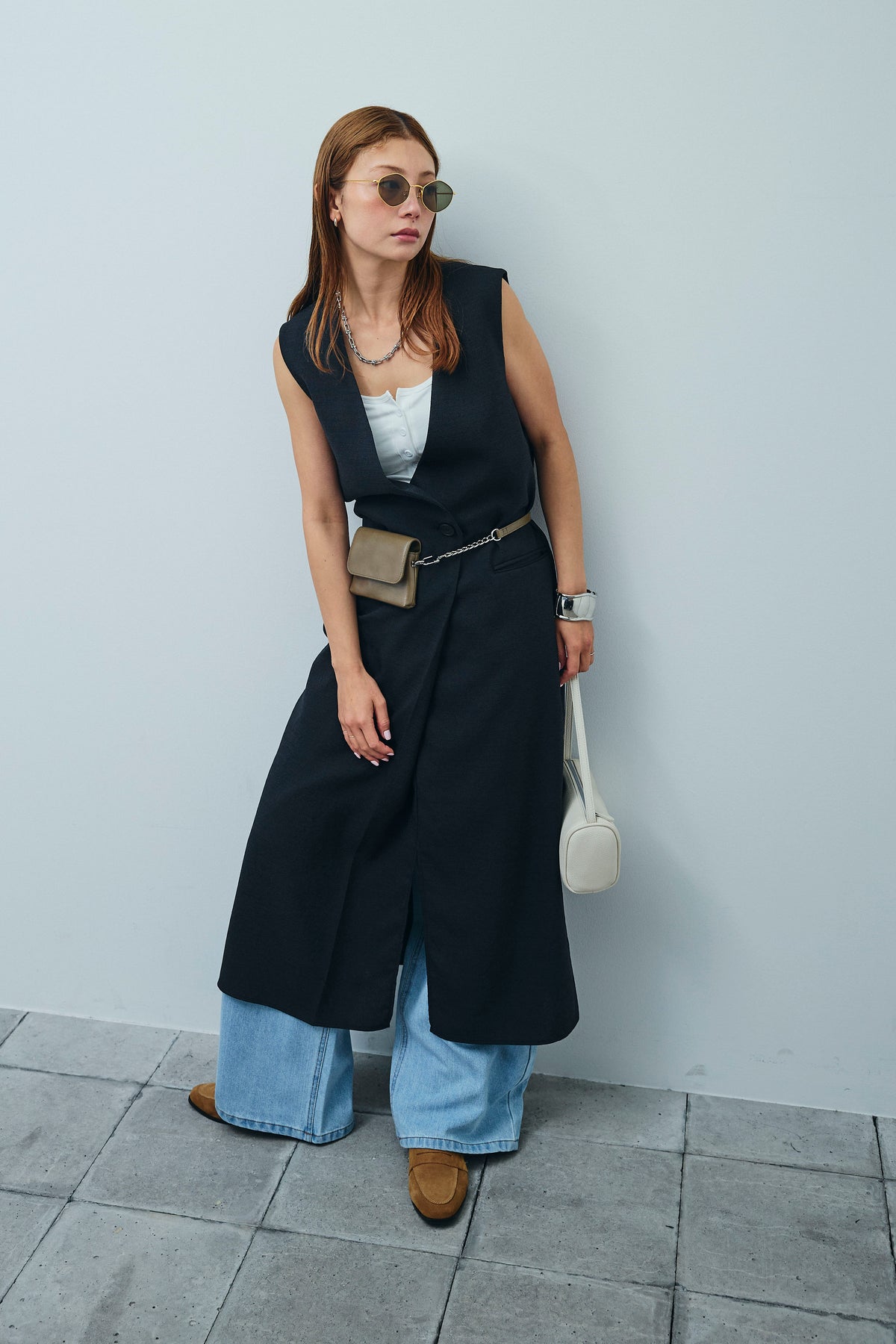 [予約/SET]リネンタッチVネックロングOP+デニムルーズポケットパンツ(2set)