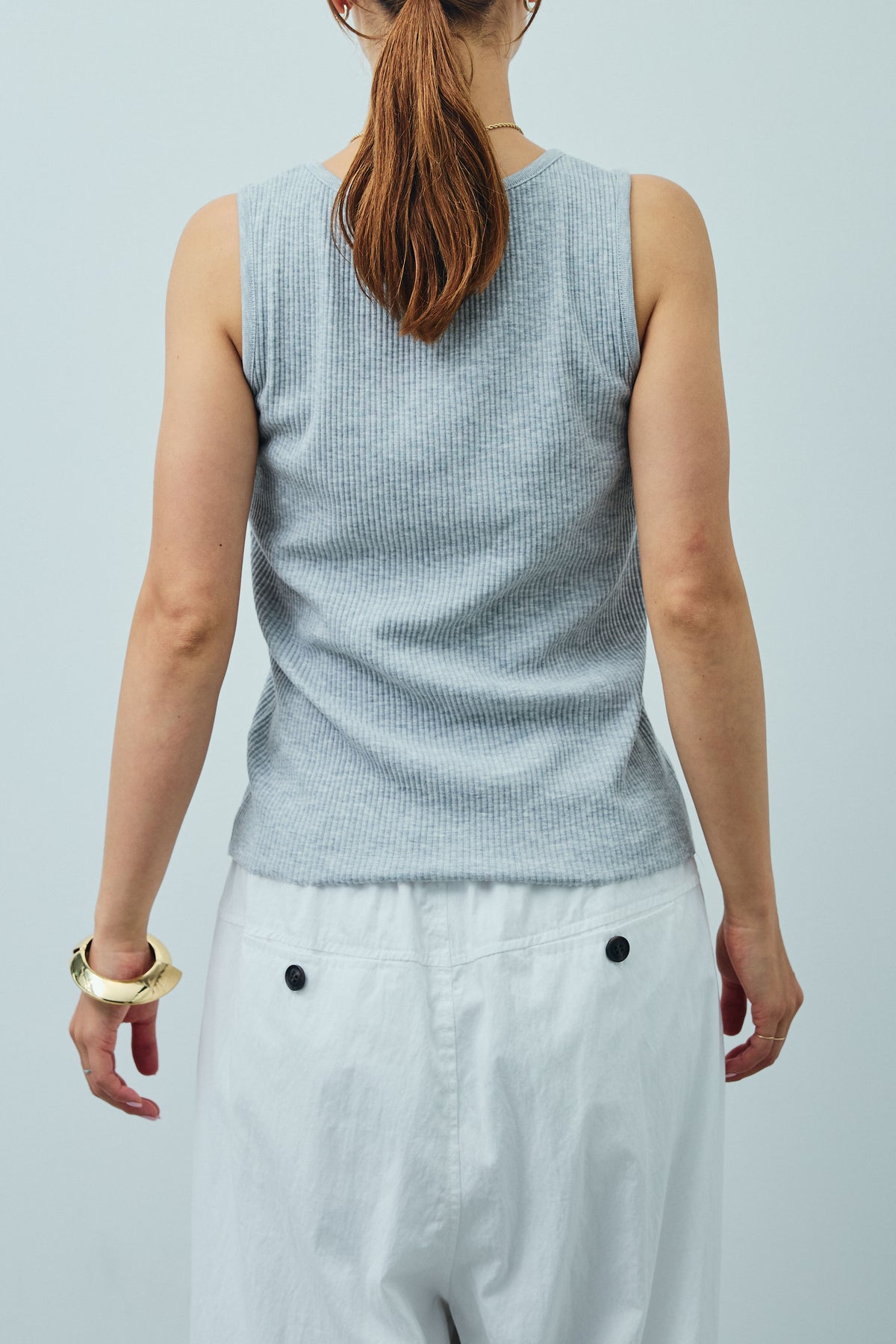 [予約]セルフカットリブヘンリーネックノースリーブトップス