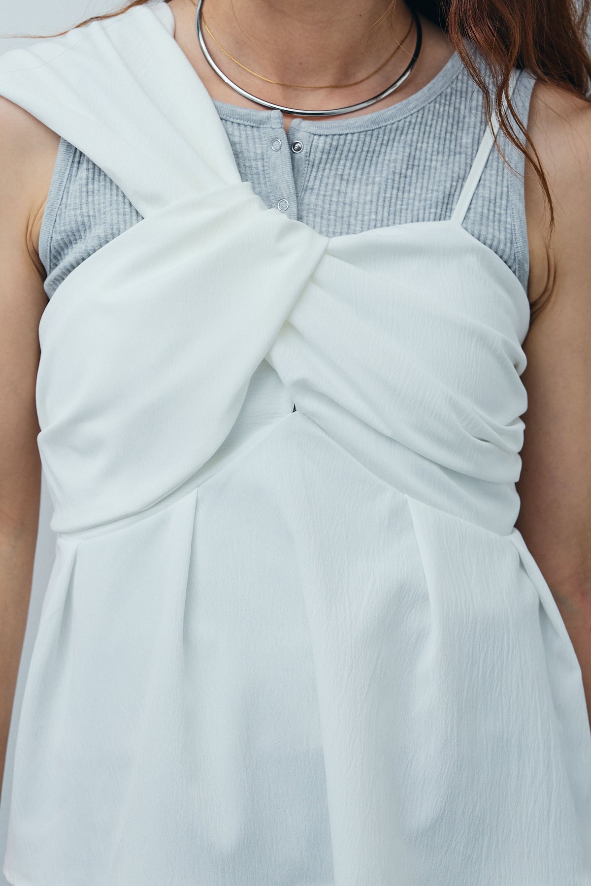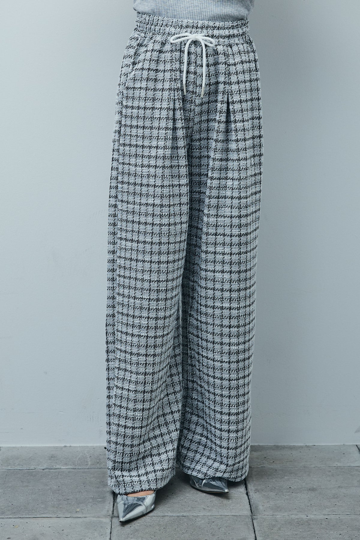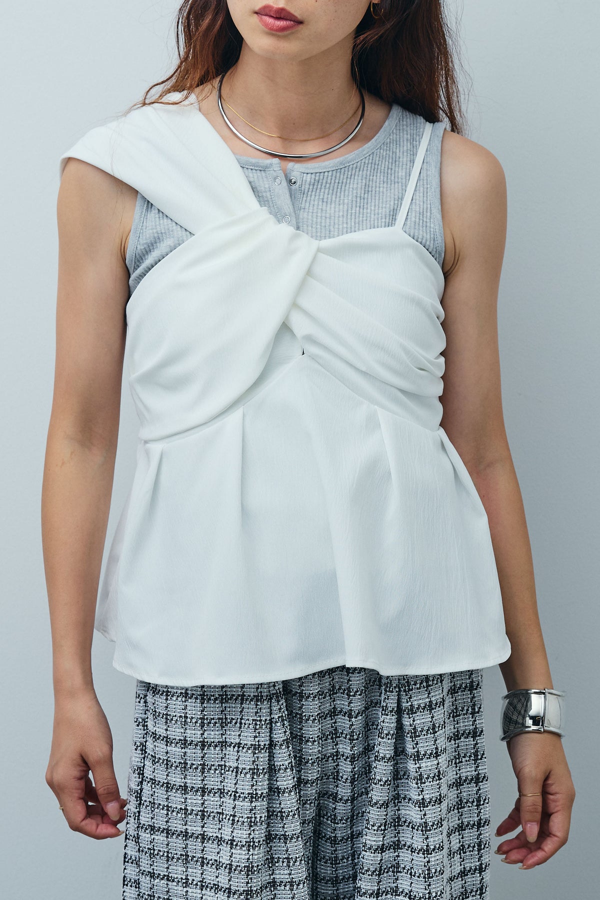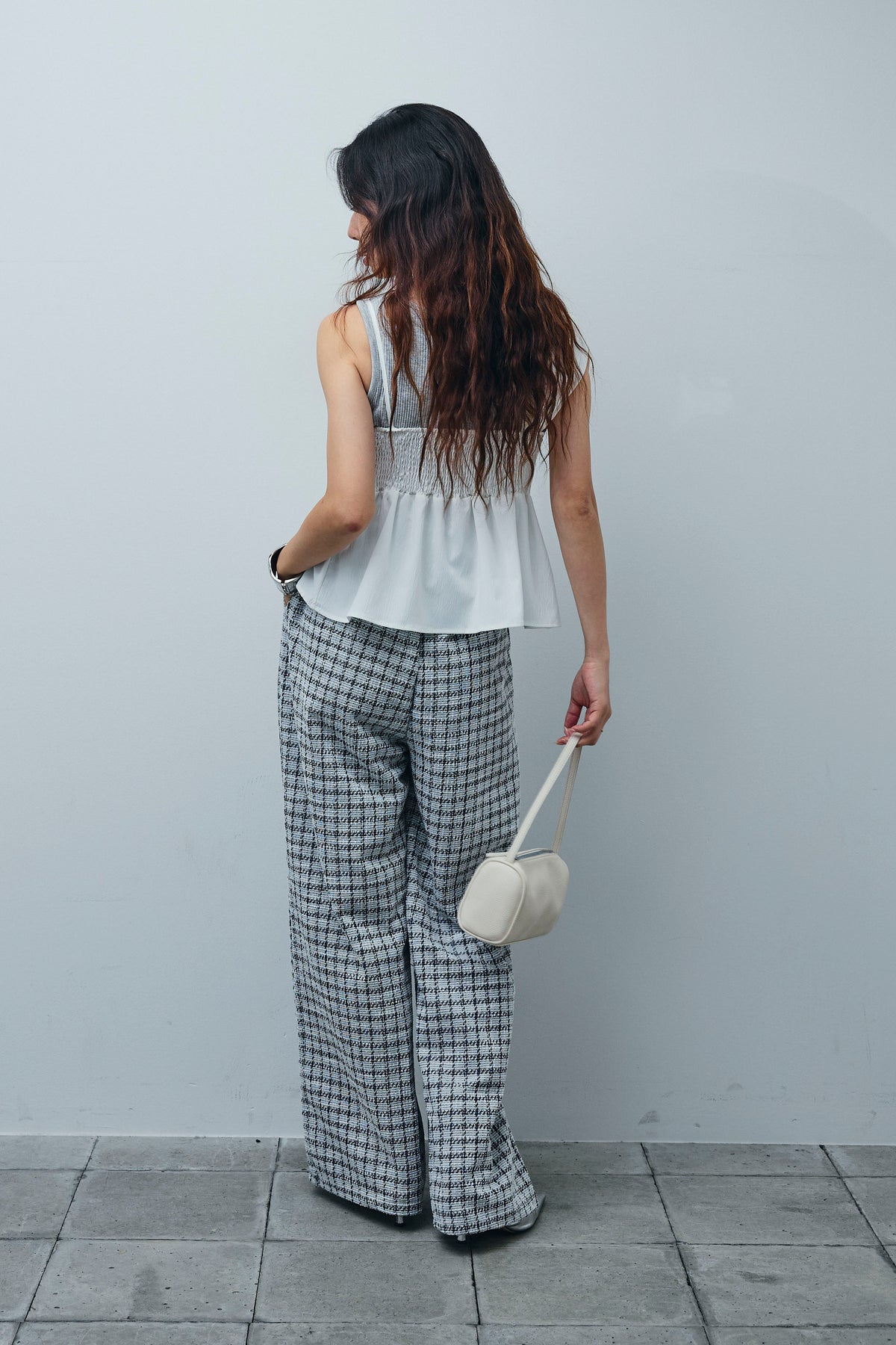 [予約/SET]アシンメトリーキャミソール+セルフカットリブヘンリーネックノースリーブトップス+サマーツイードリラックスパンツ(3set)