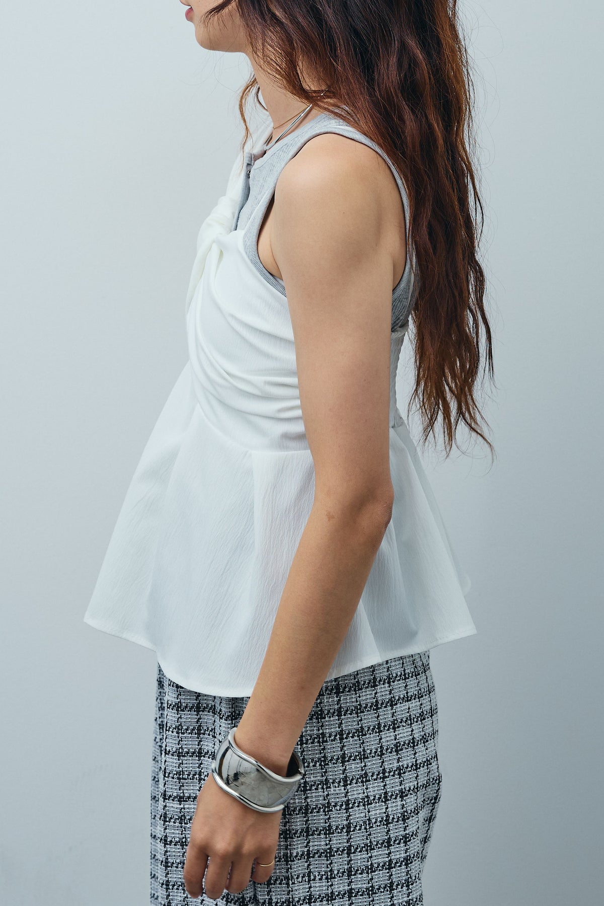 ◆ セルフカットリブヘンリーネックノースリーブトップス