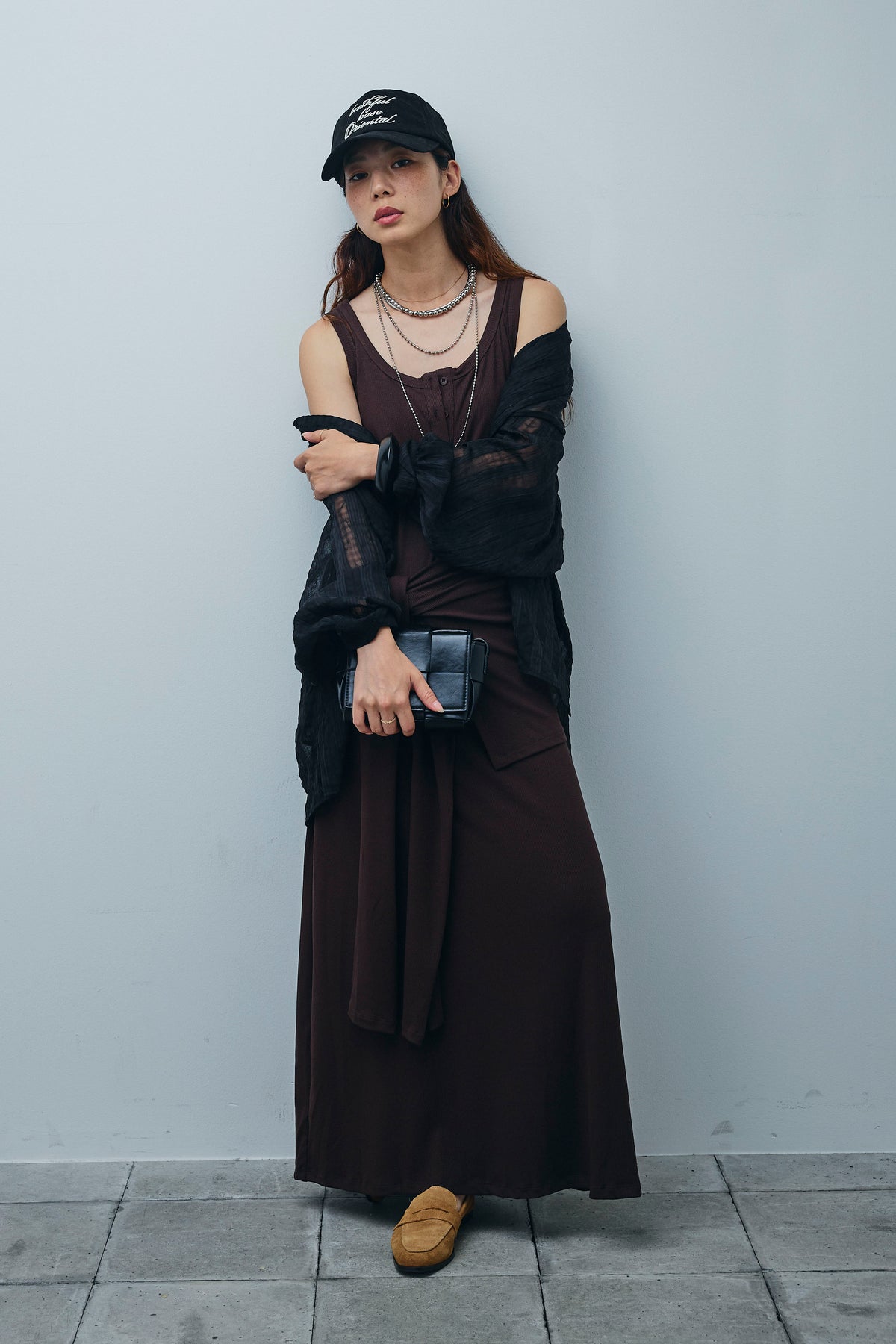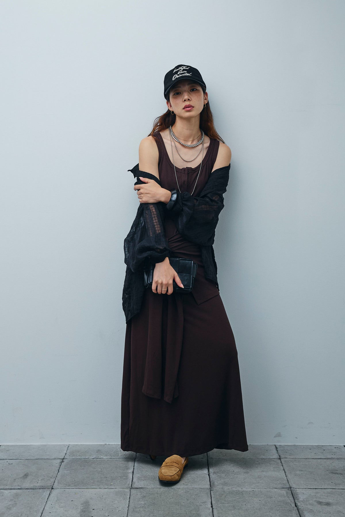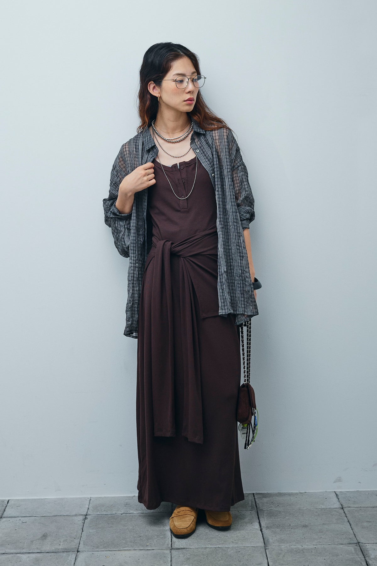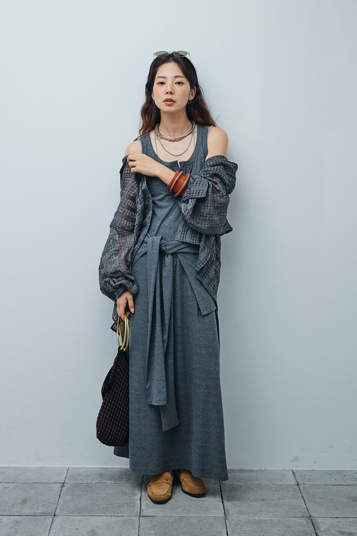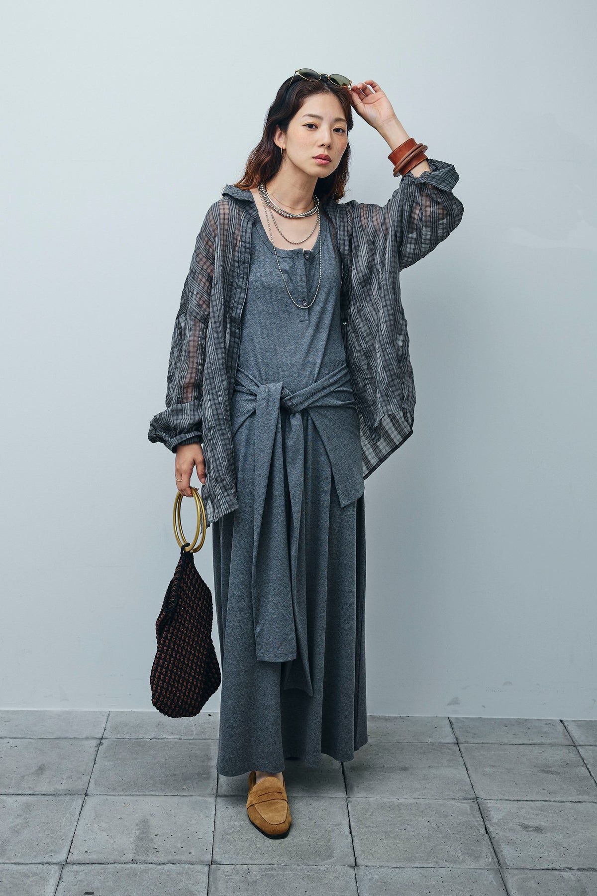 [予約/SET]ラップレイヤードリブロングワンピース+シアーブラウス(2set)