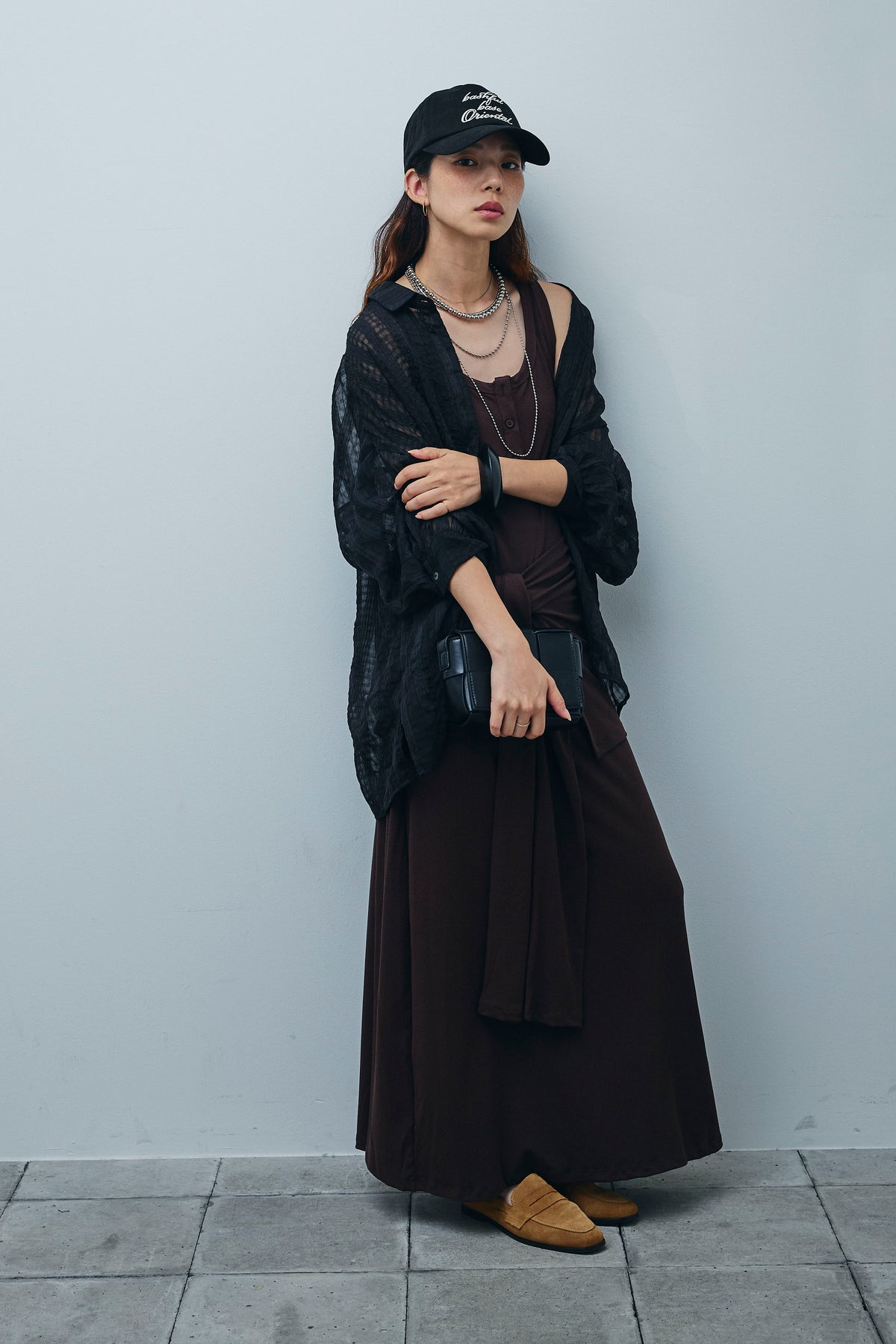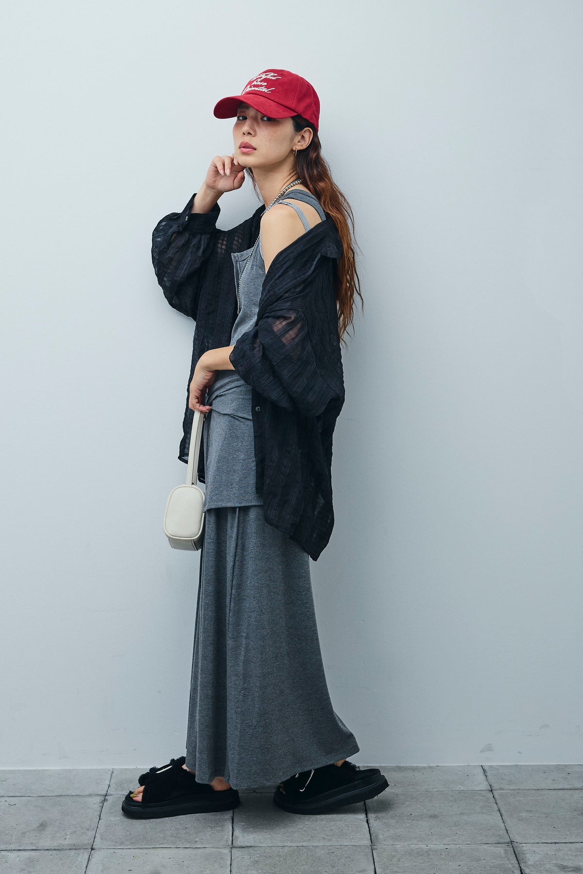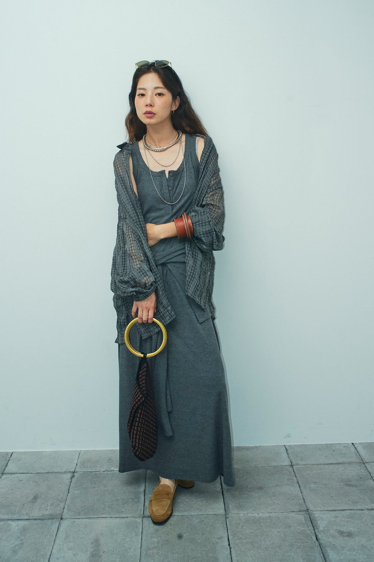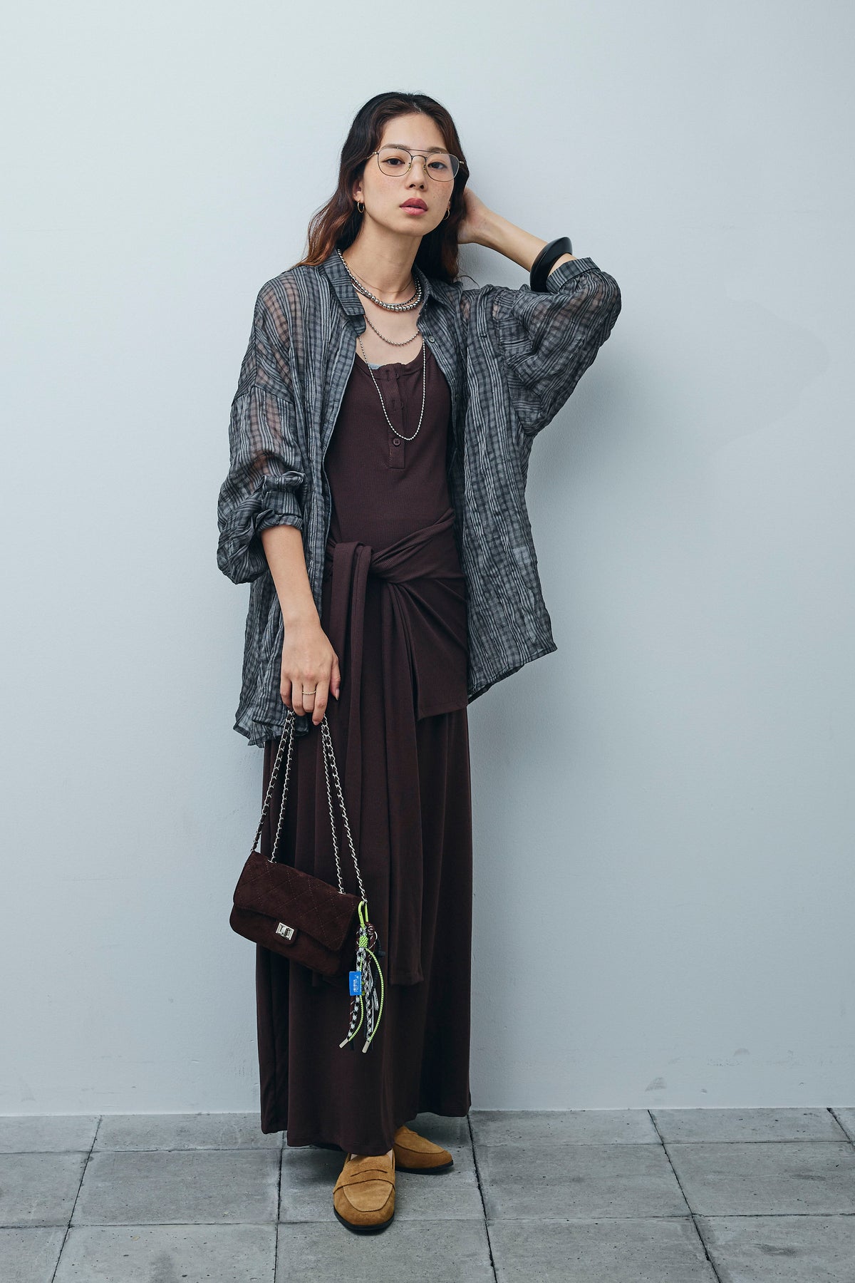 [予約/SET]ラップレイヤードリブロングワンピース+シアーブラウス(2set)