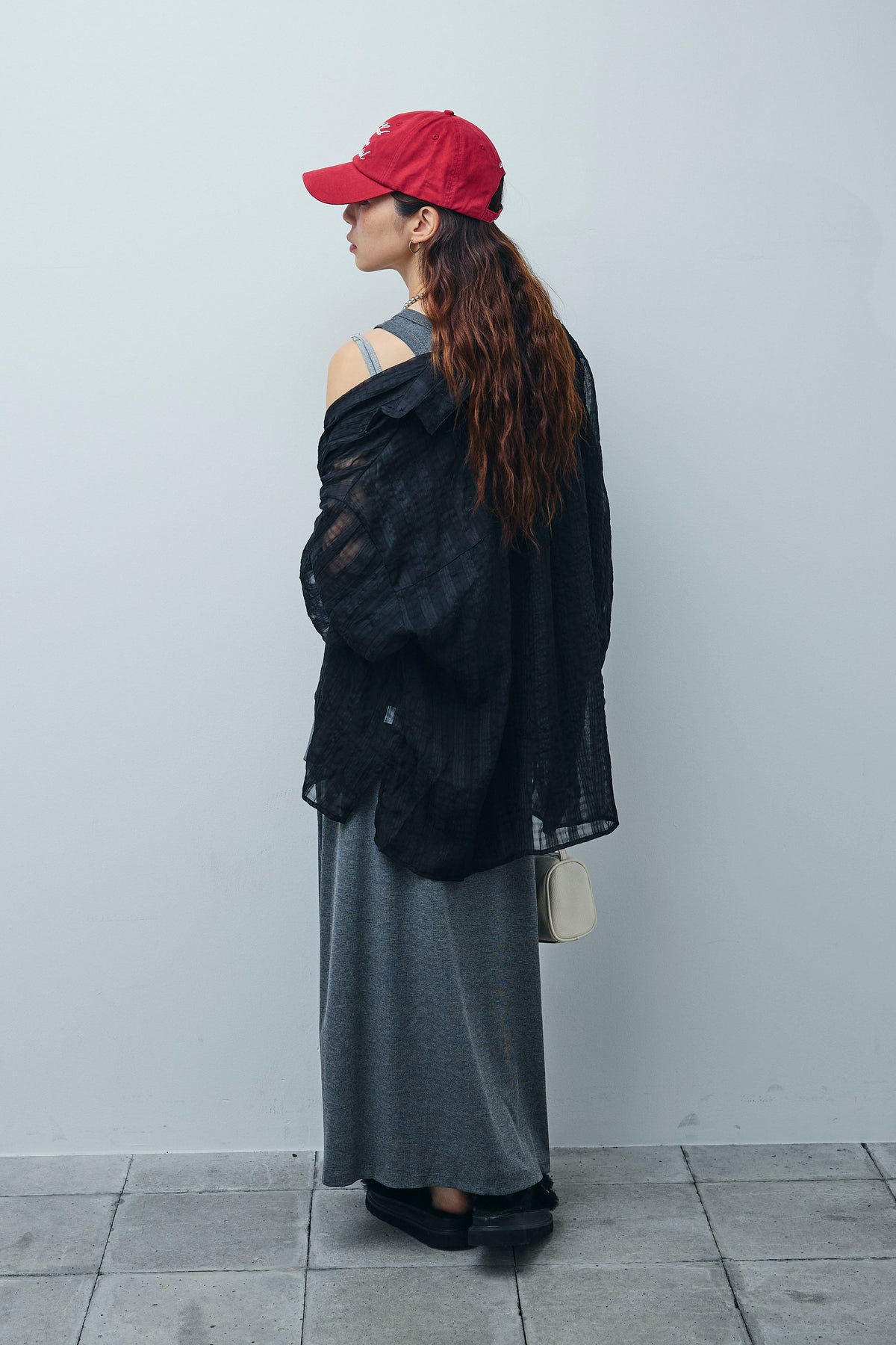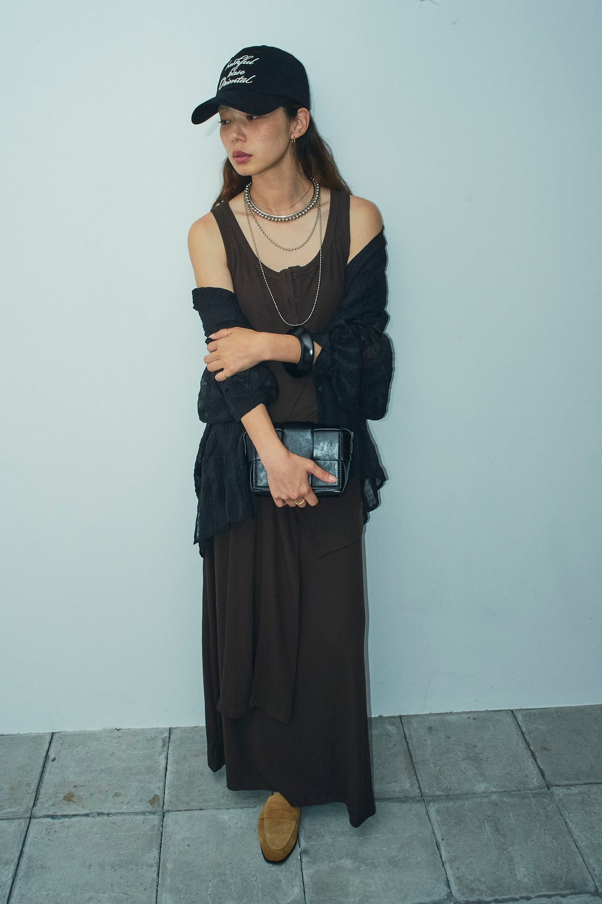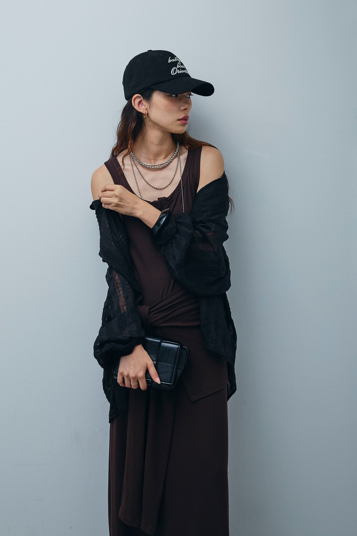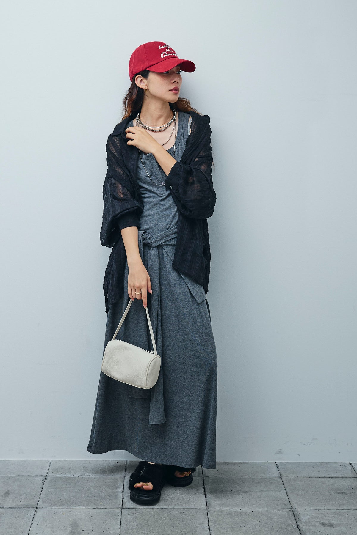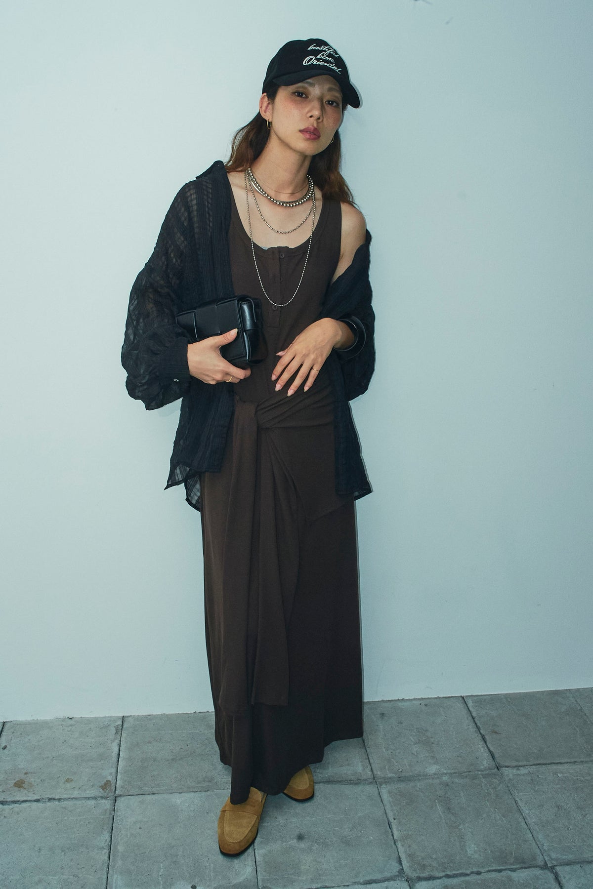 [予約/SET]ラップレイヤードリブロングワンピース+シアーブラウス(2set)