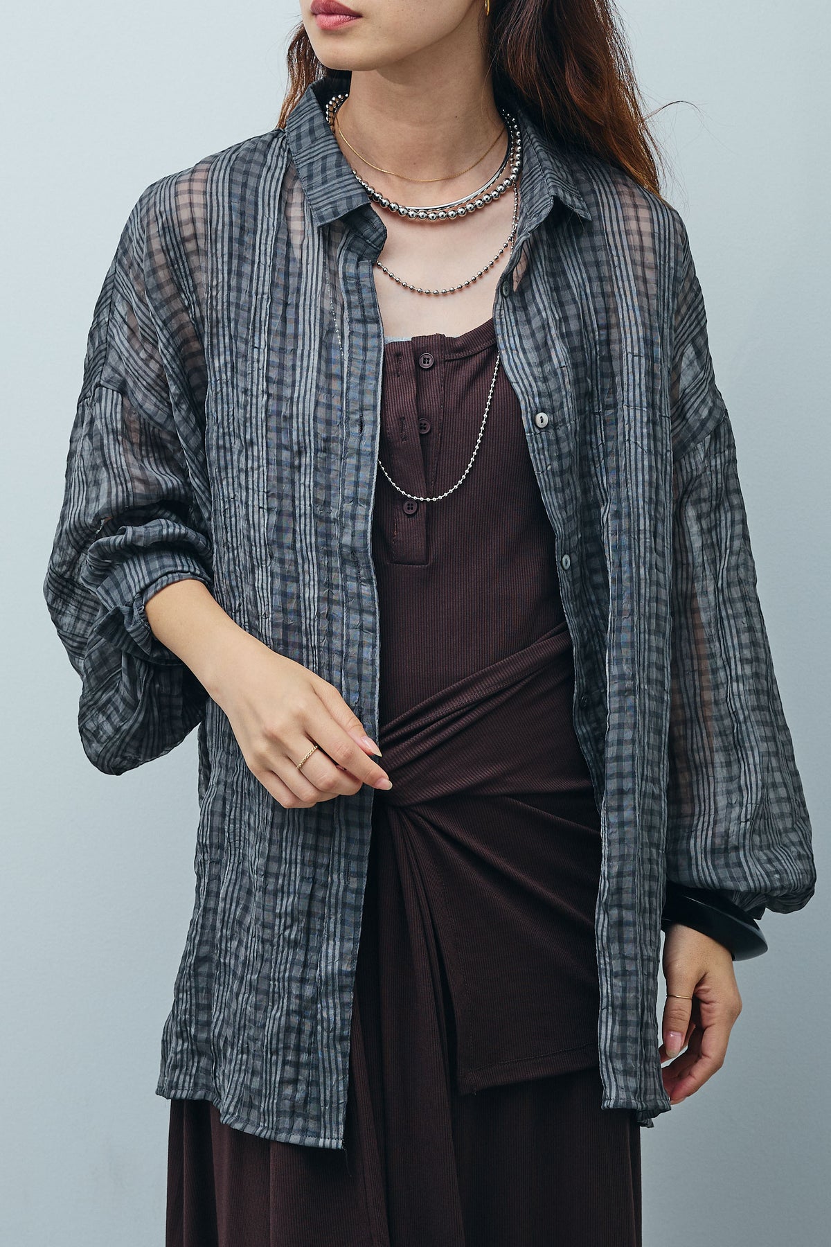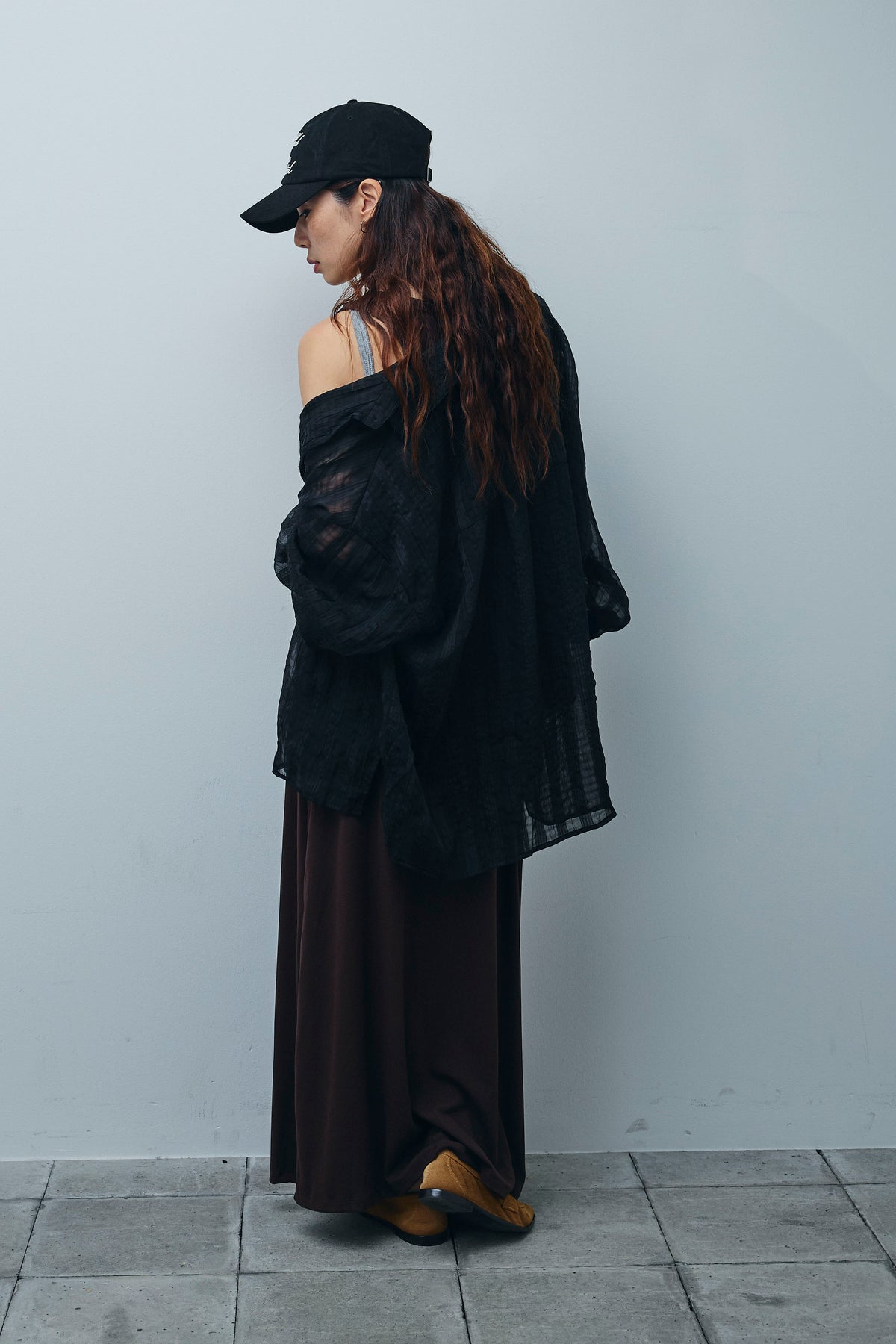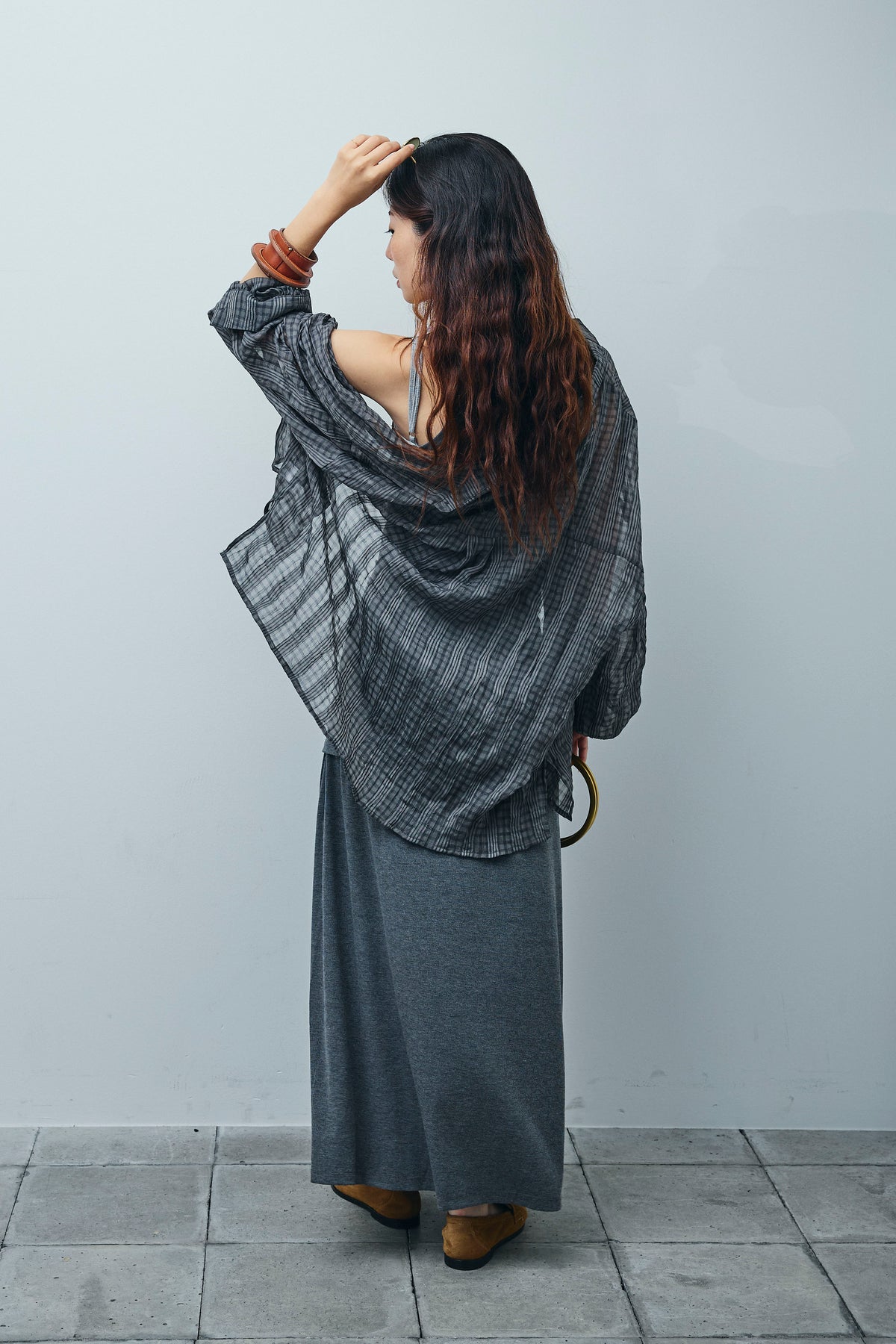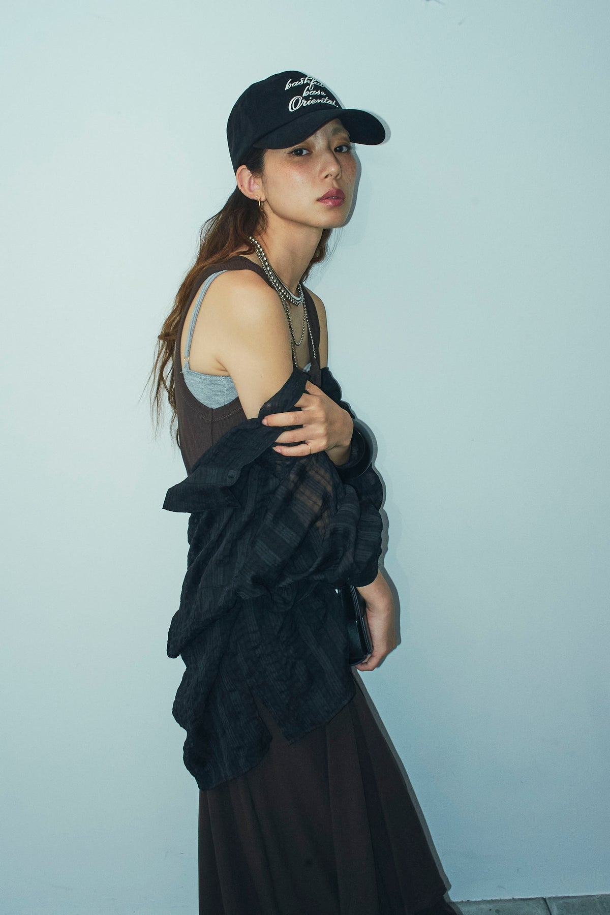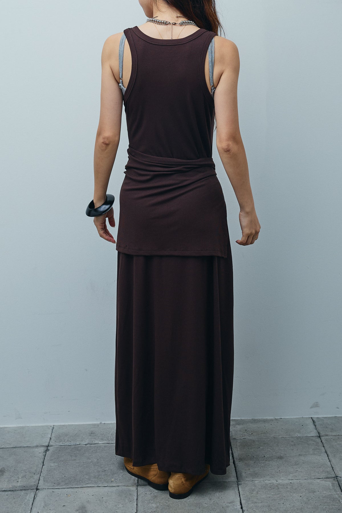 [予約/SET]ラップレイヤードリブロングワンピース+シアーブラウス(2set)