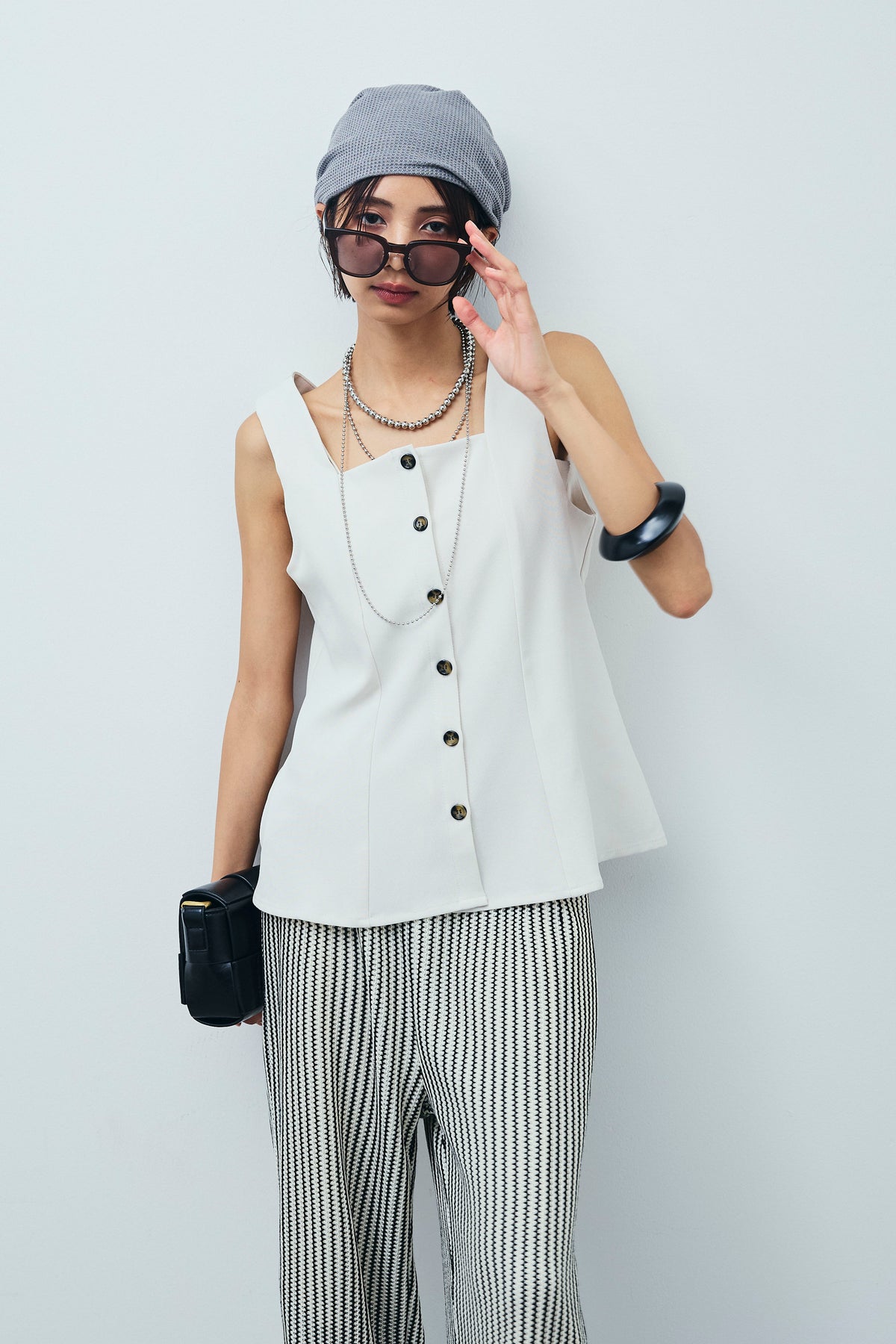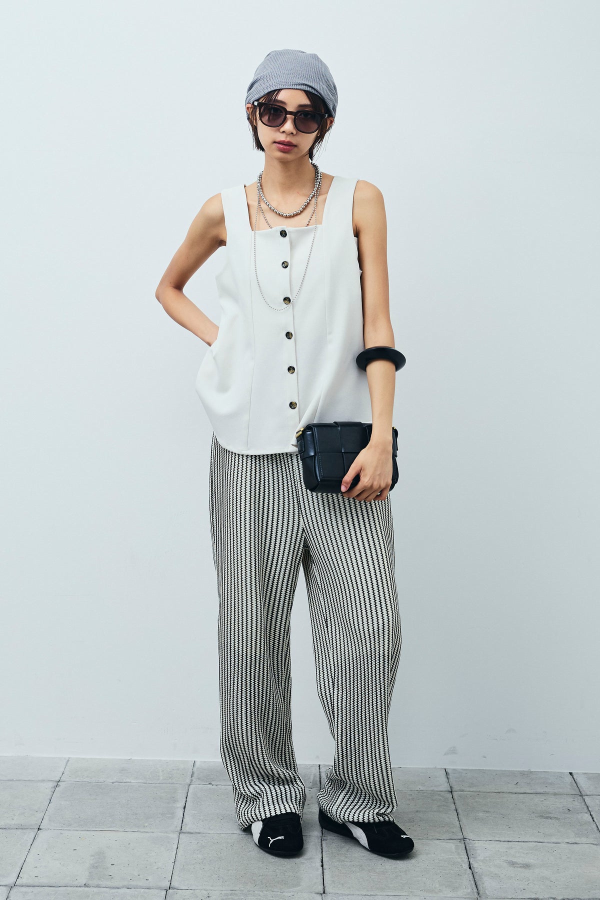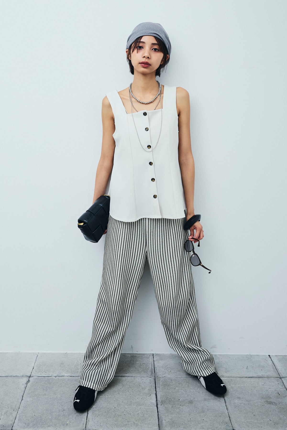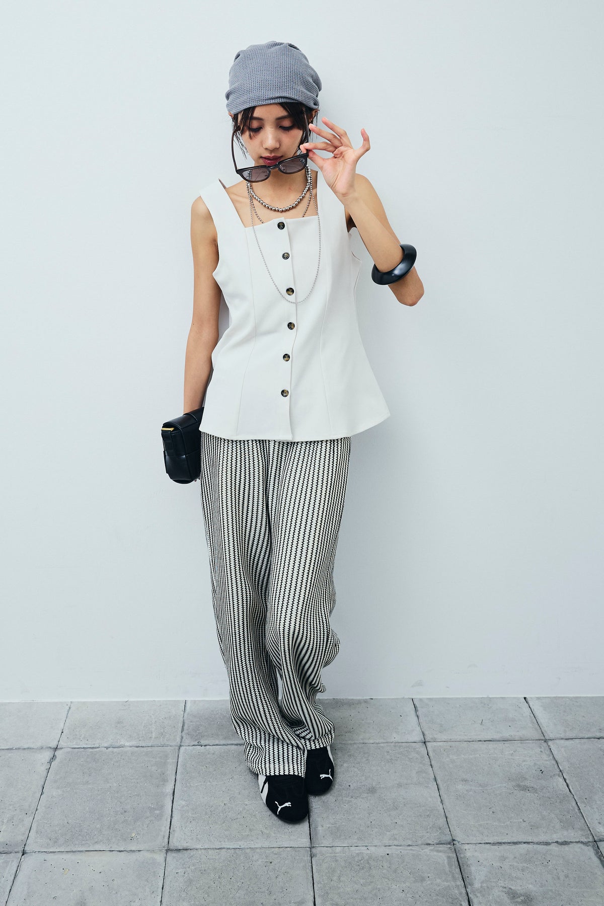 [予約/SET]ノースリーブフロントボタントップス+ストライプレースイージーPT(2set)