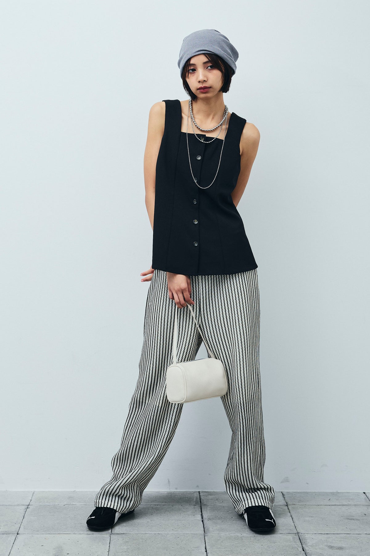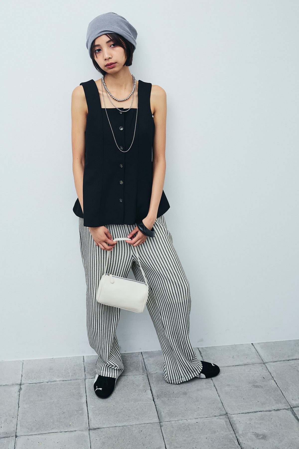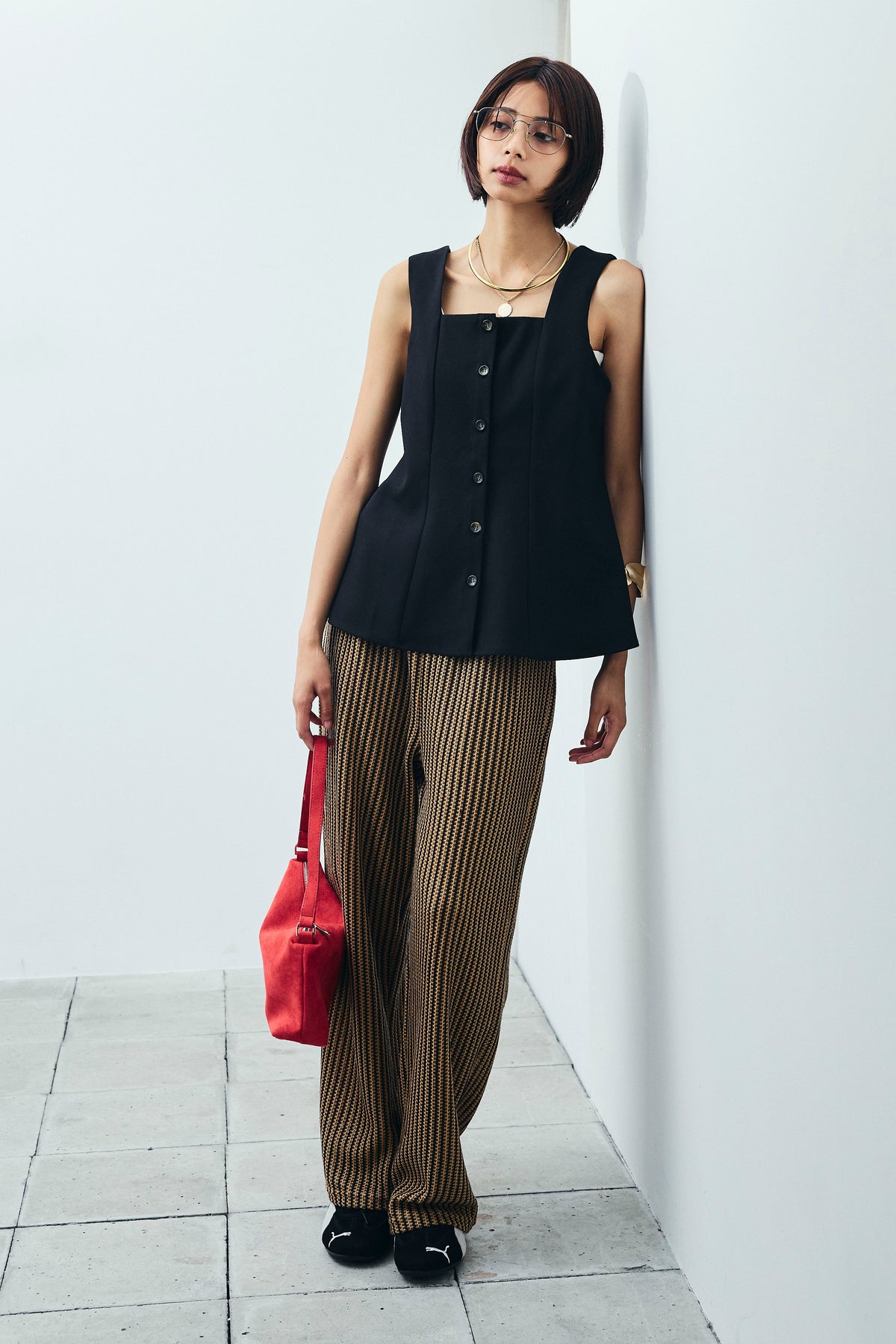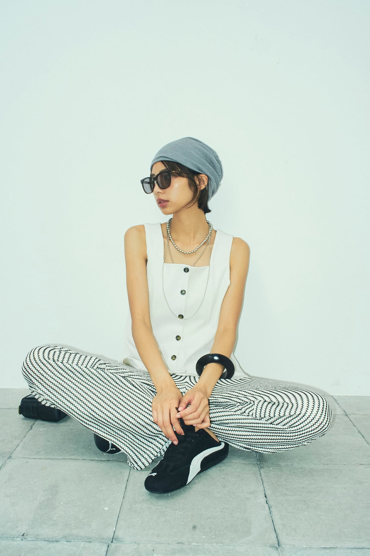 [予約/SET]ノースリーブフロントボタントップス+ストライプレースイージーPT(2set)