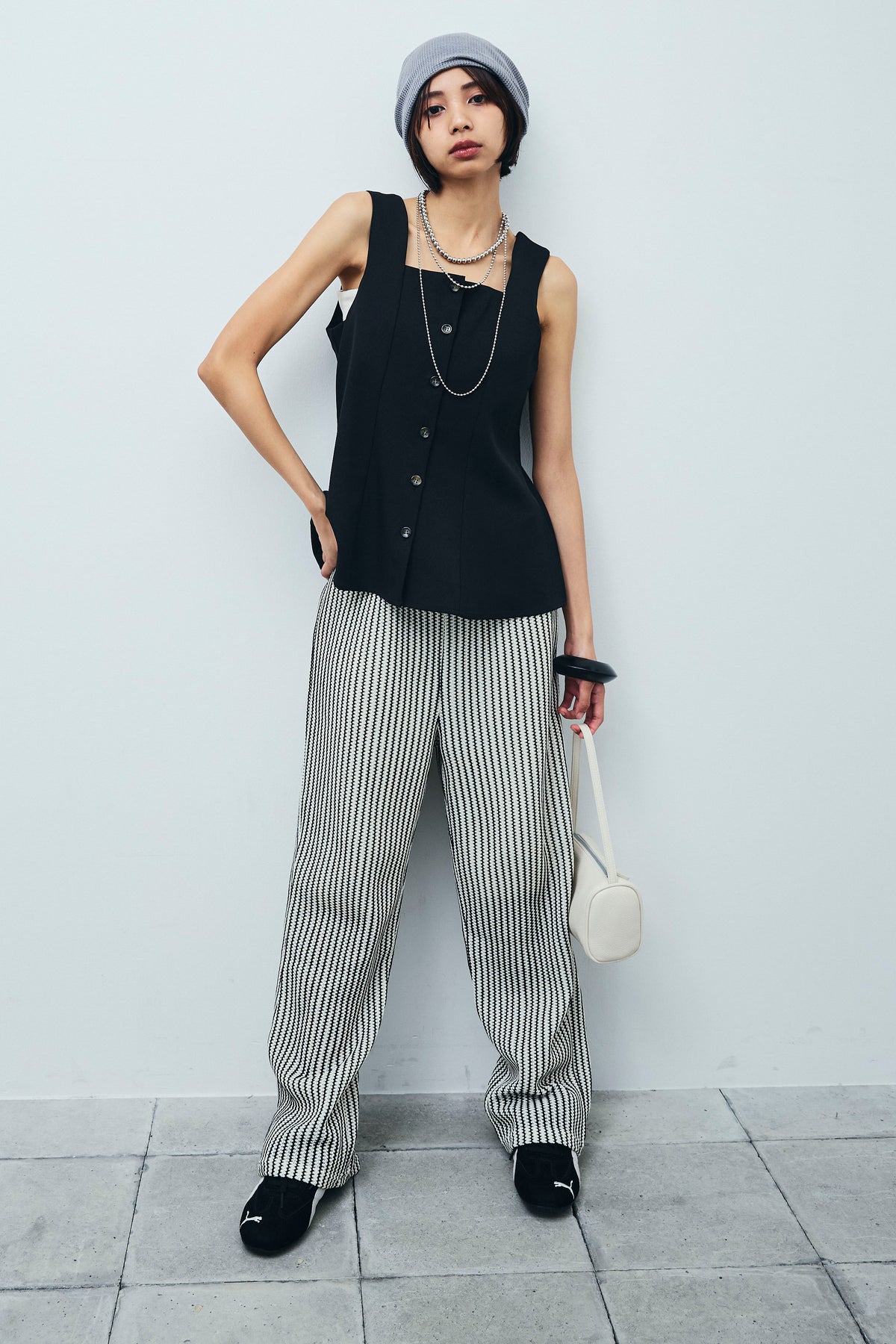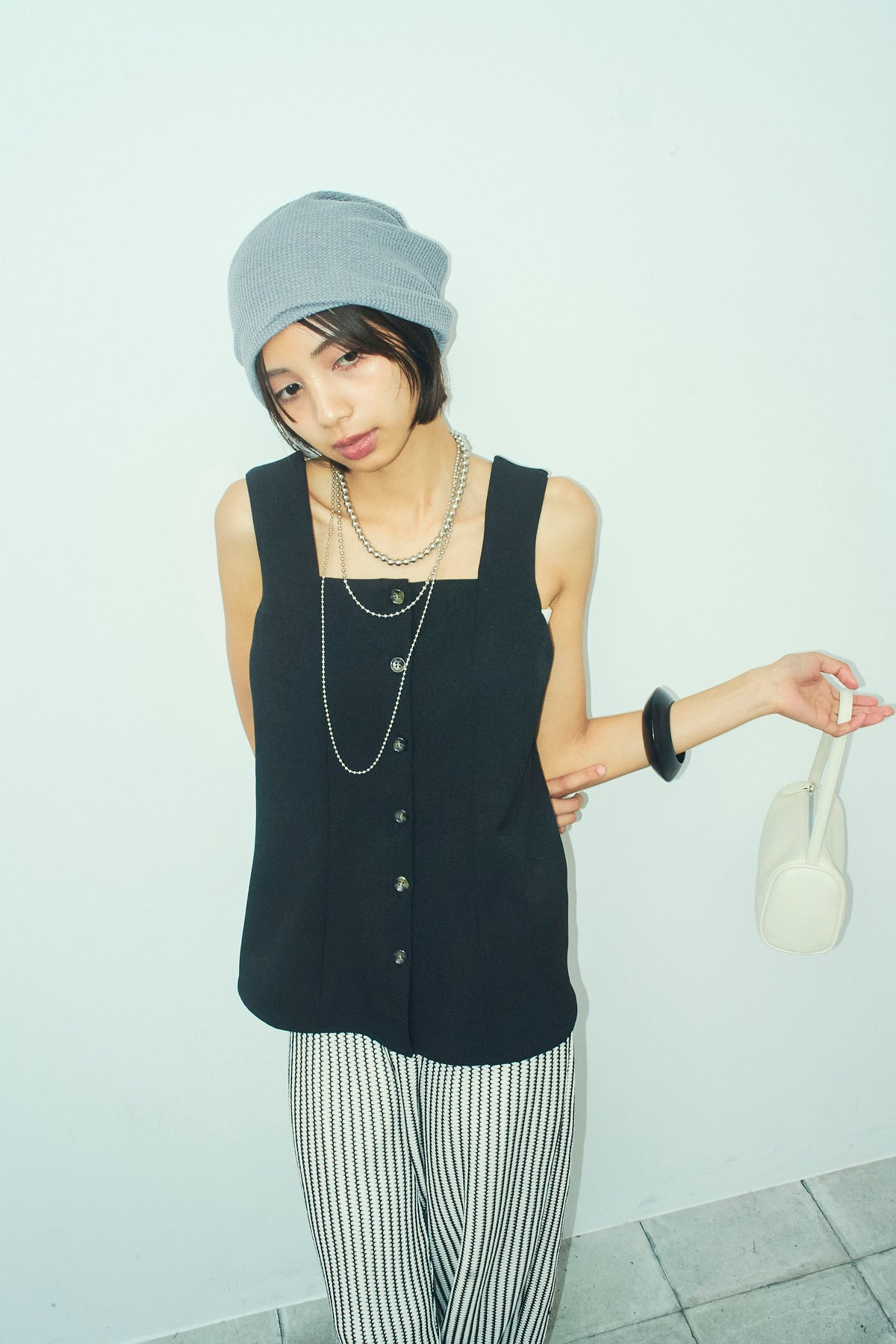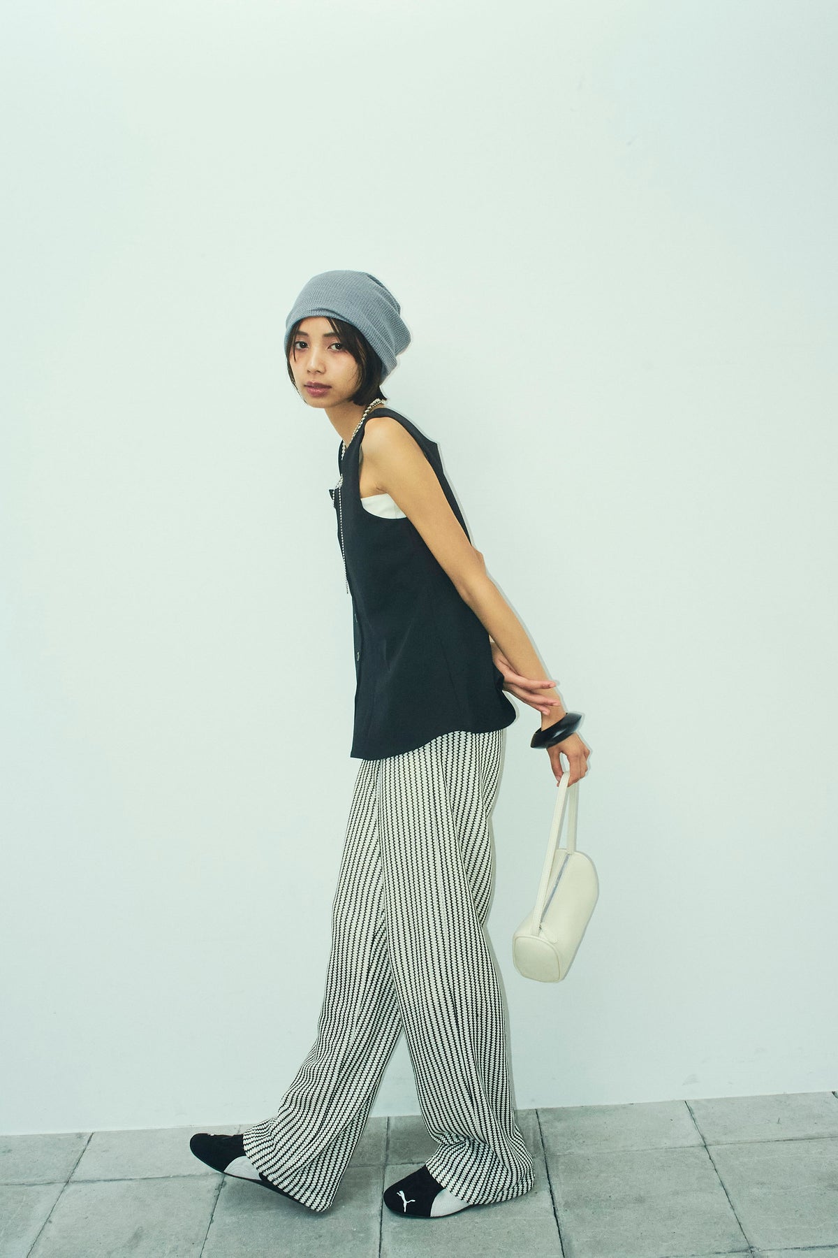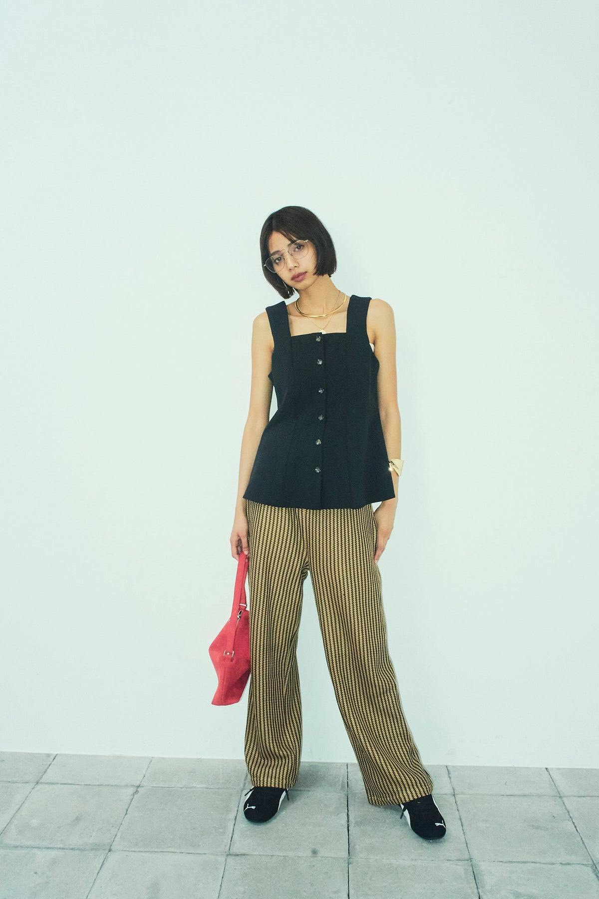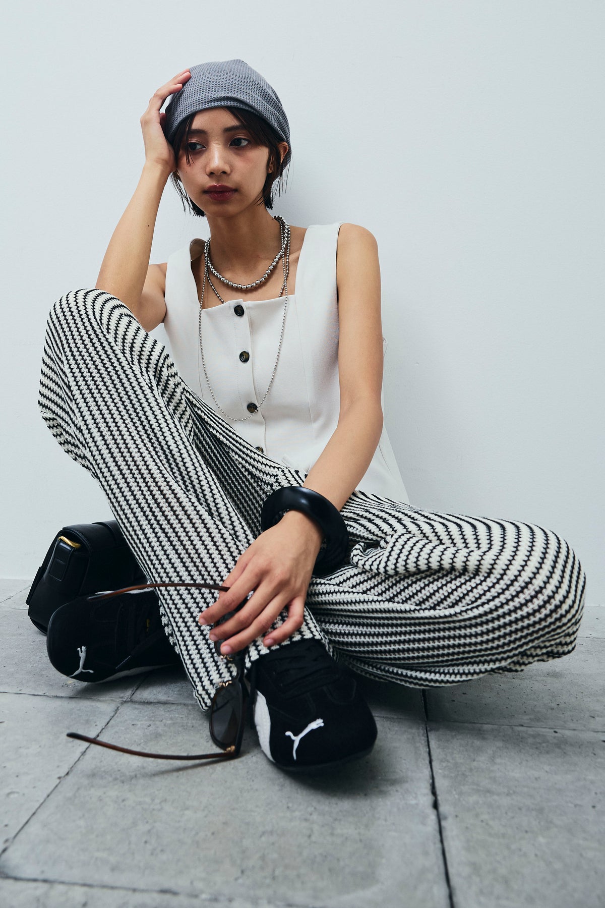[予約/SET]ノースリーブフロントボタントップス+ストライプレースイージーPT(2set)