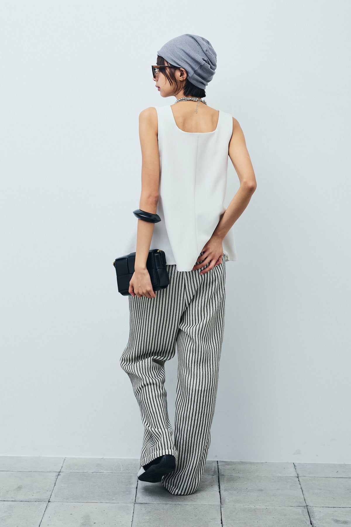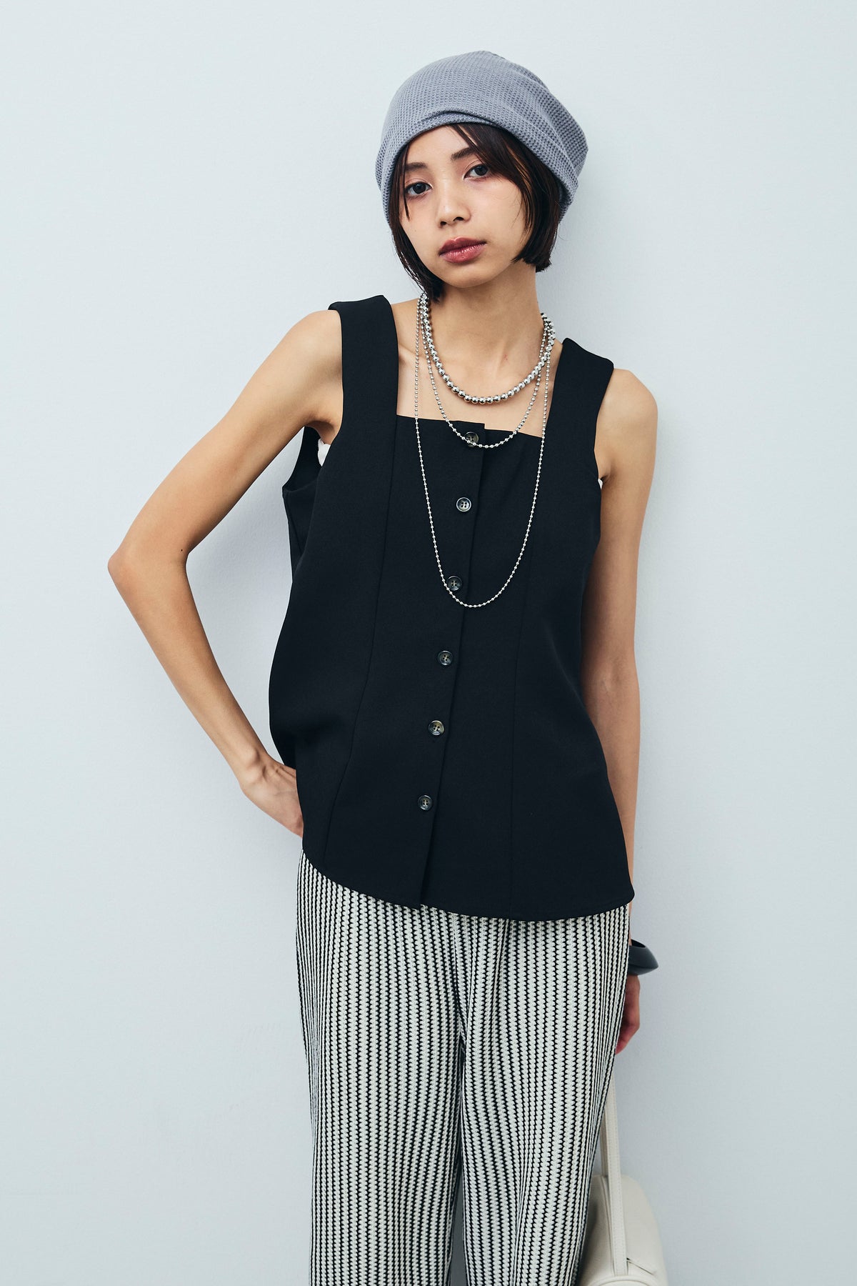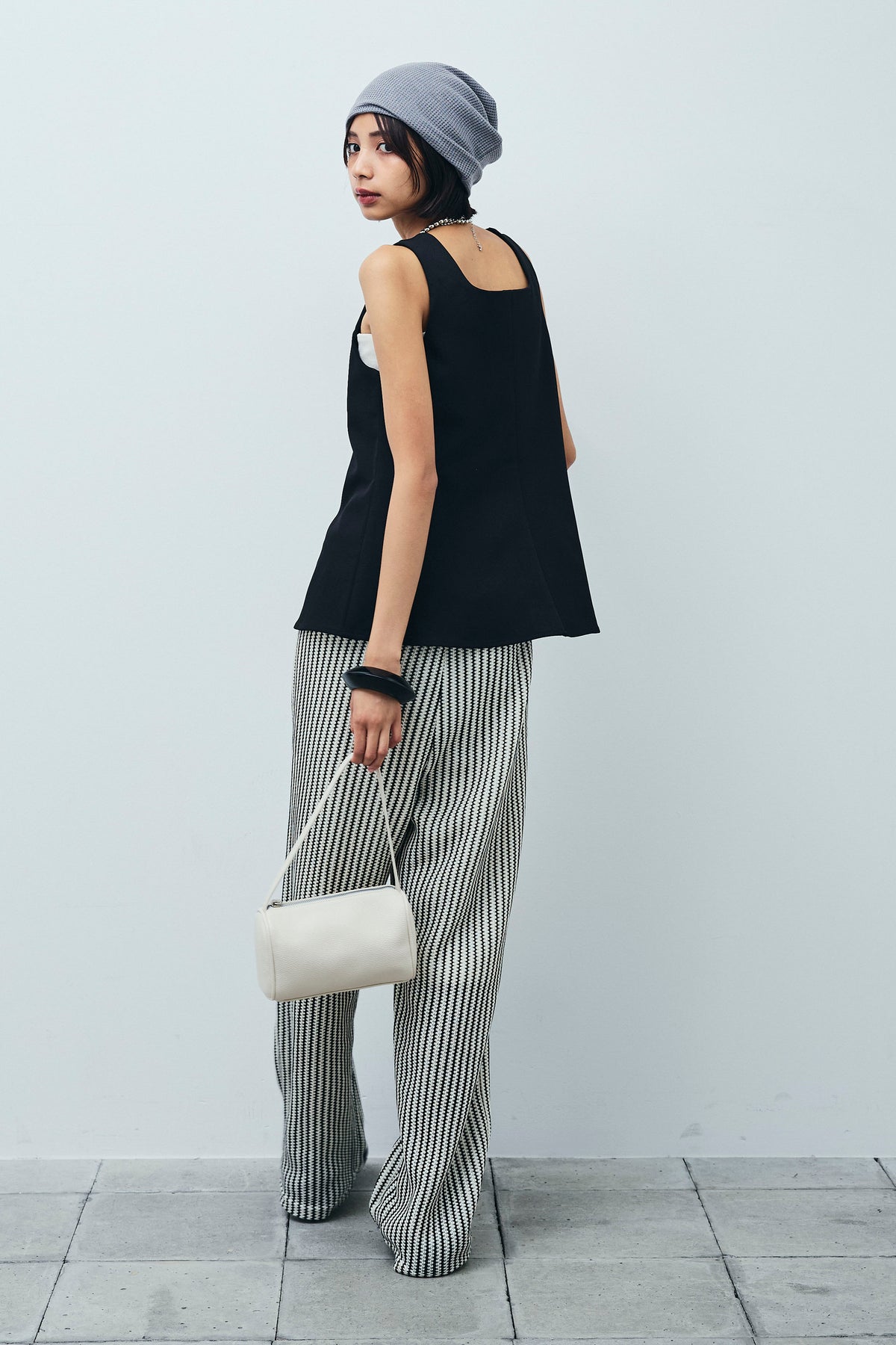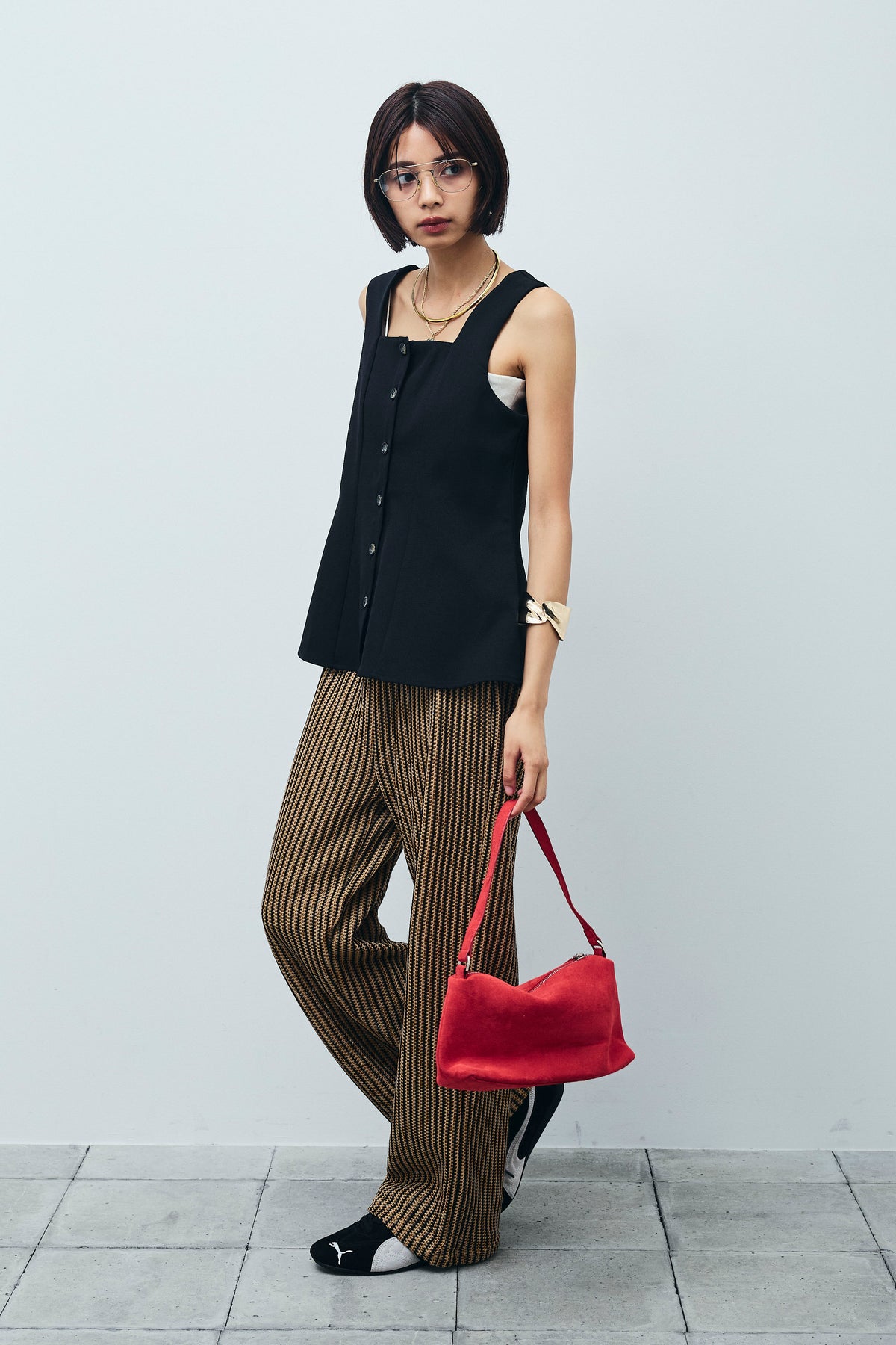 [予約/SET]ノースリーブフロントボタントップス+ストライプレースイージーPT(2set)