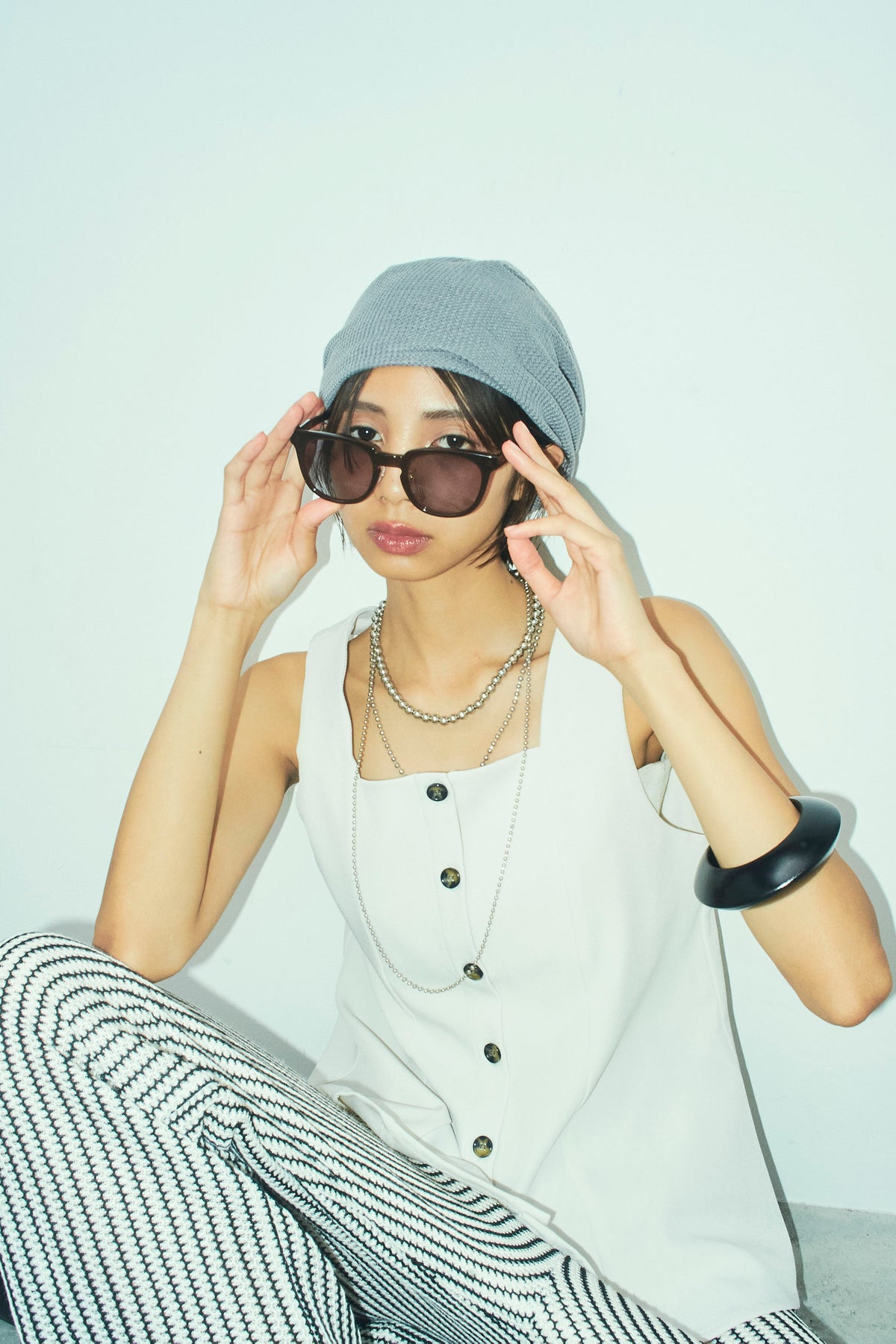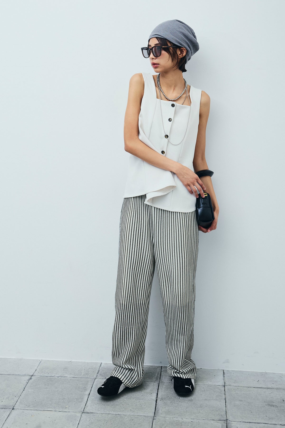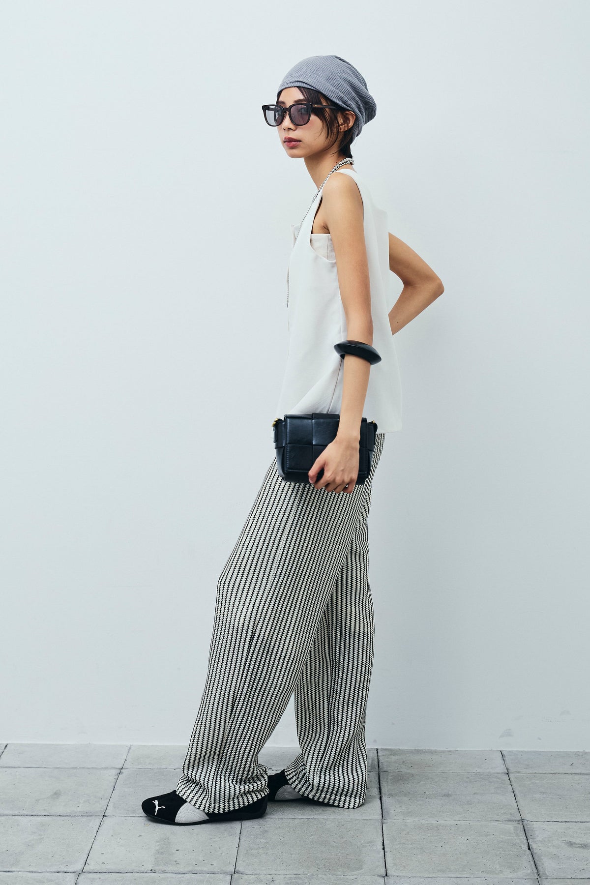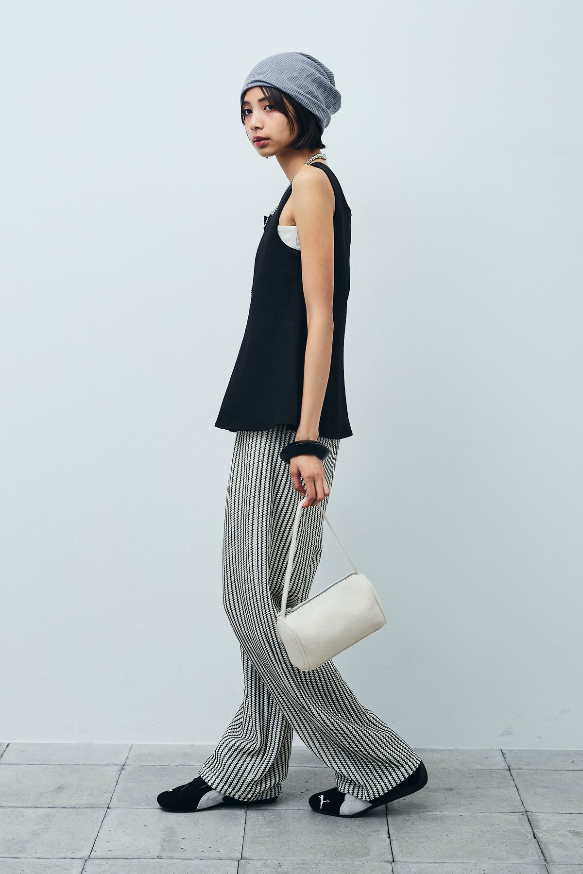 [予約/SET]ノースリーブフロントボタントップス+ストライプレースイージーPT(2set)