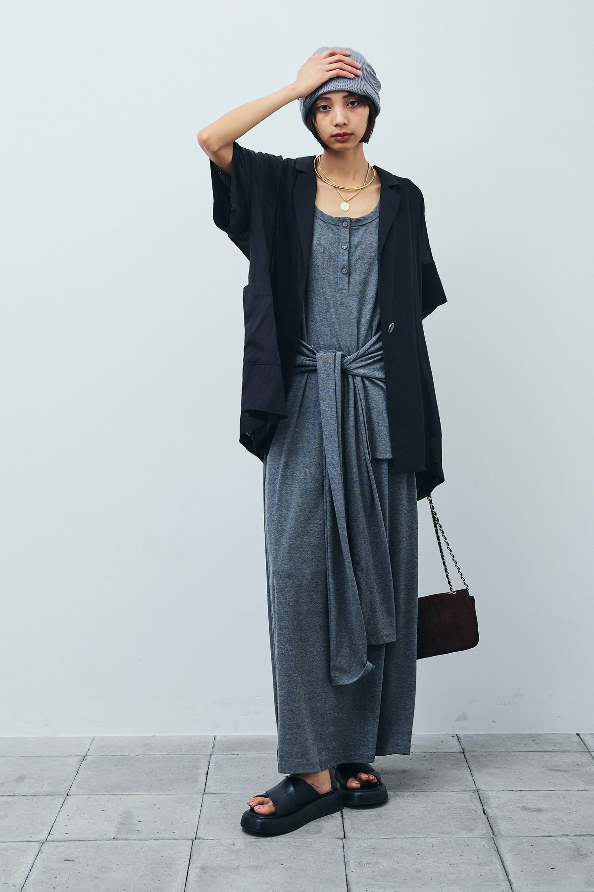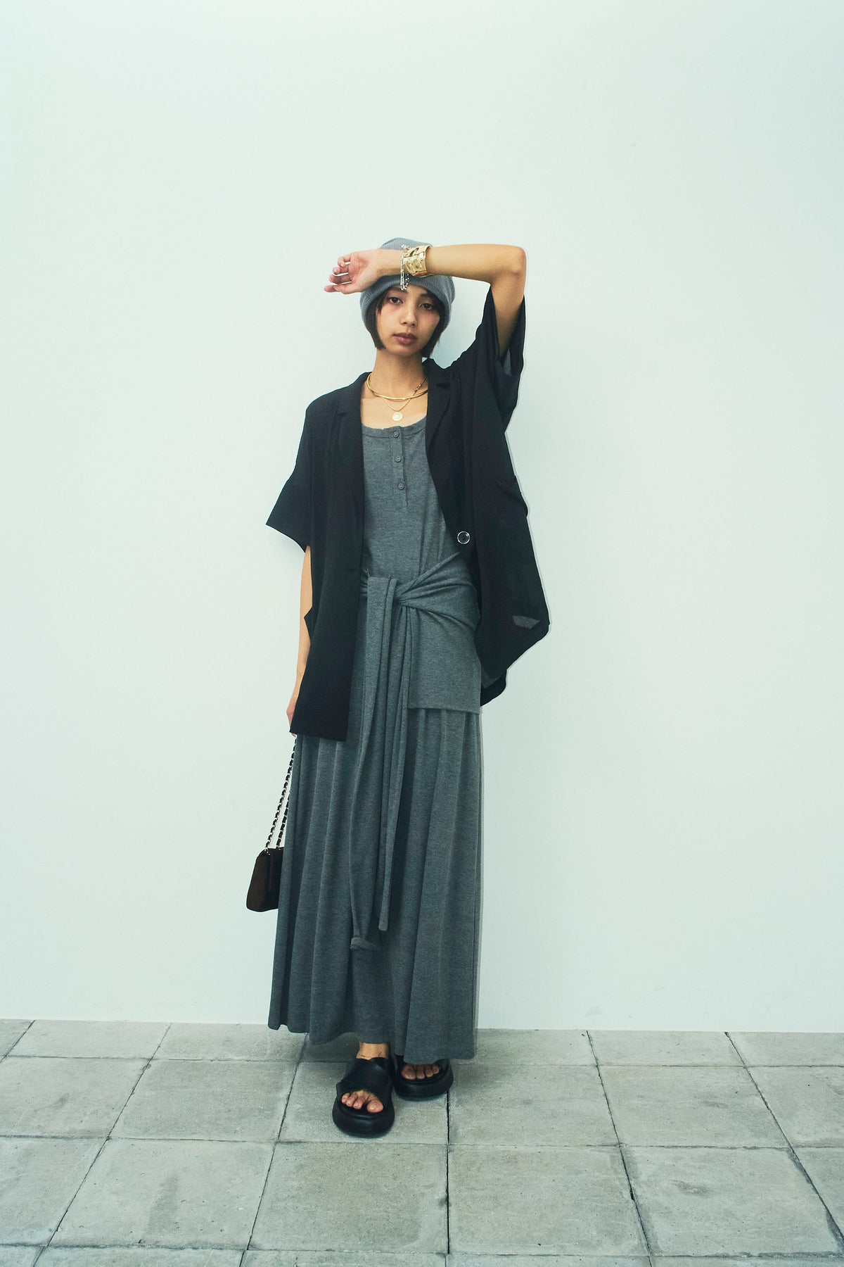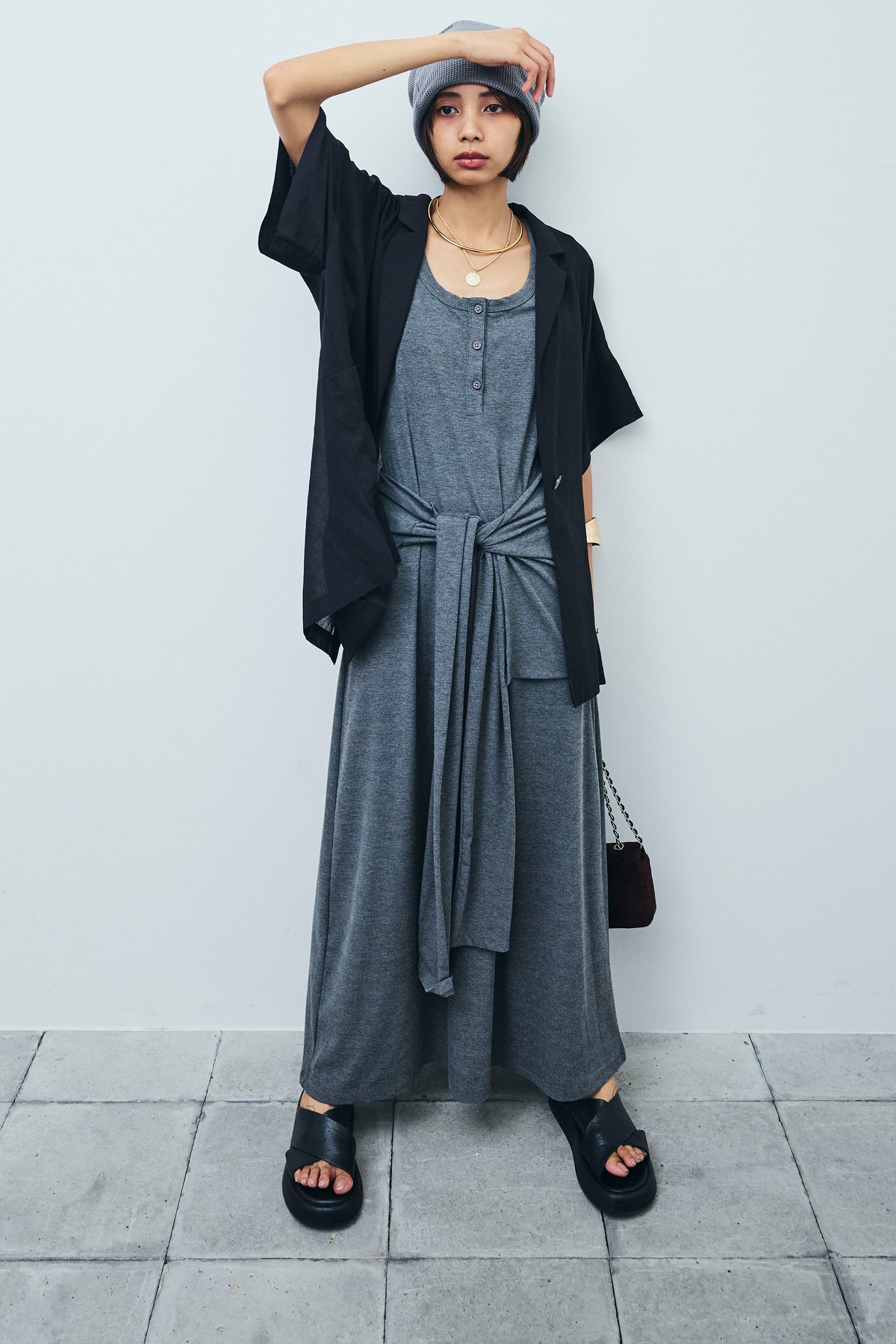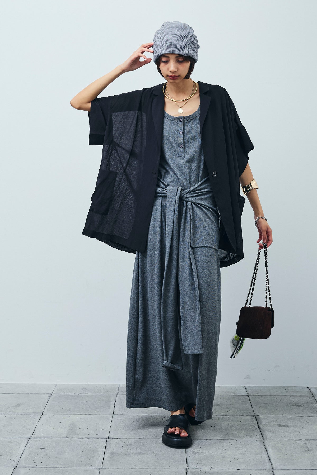 [予約/SET]ハーフスリーブシアーJK+ラップレイヤードリブロングワンピース(2set)