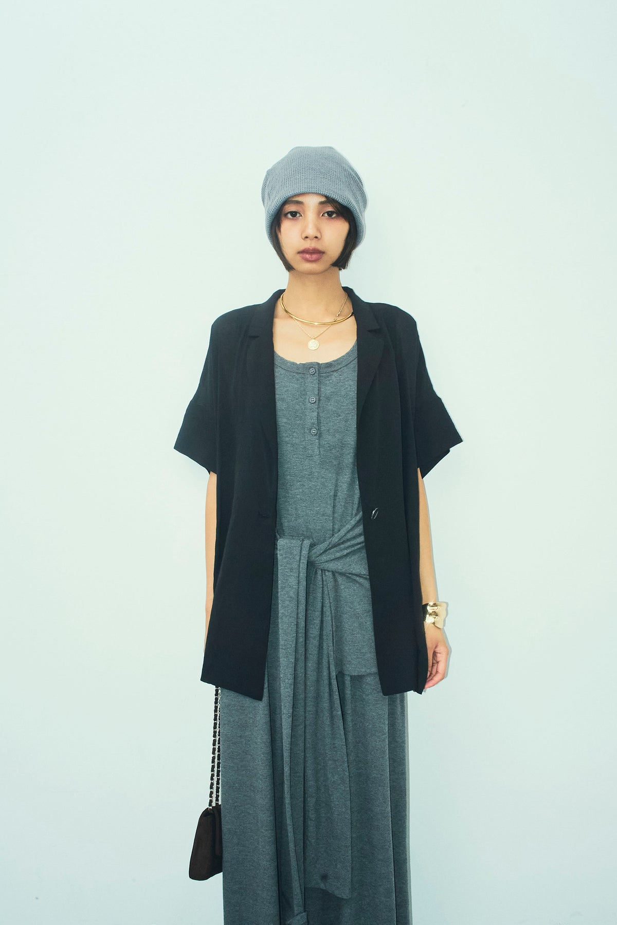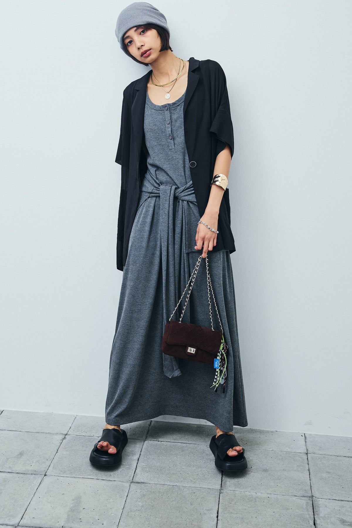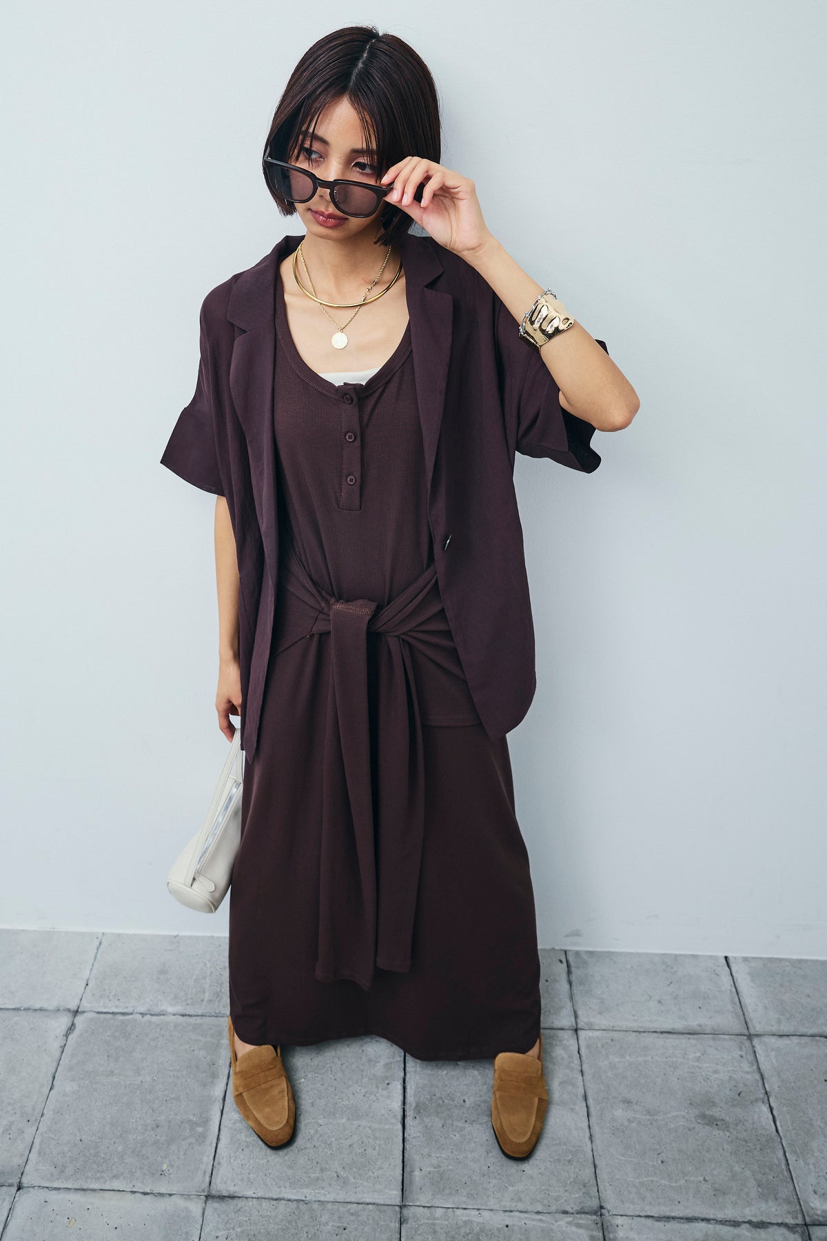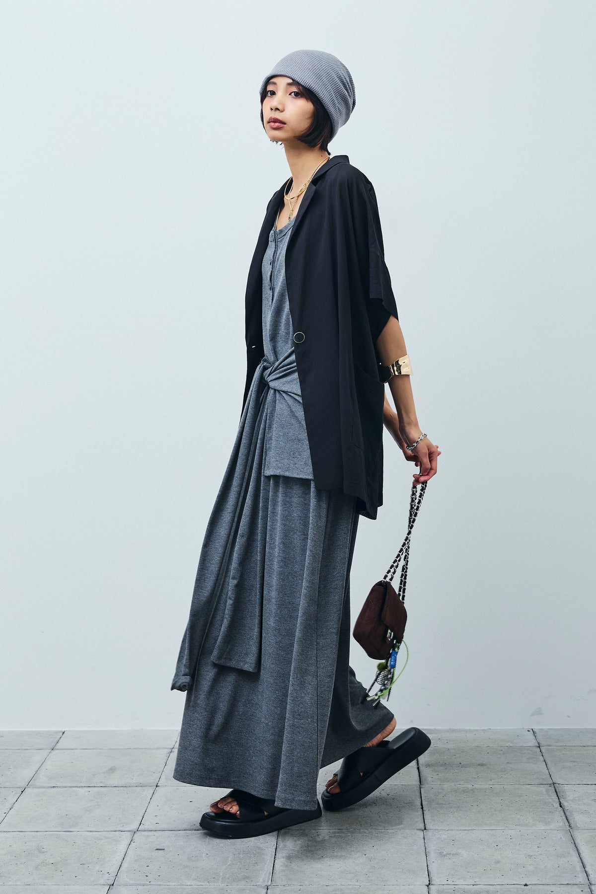 [予約/SET]ハーフスリーブシアーJK+ラップレイヤードリブロングワンピース(2set)