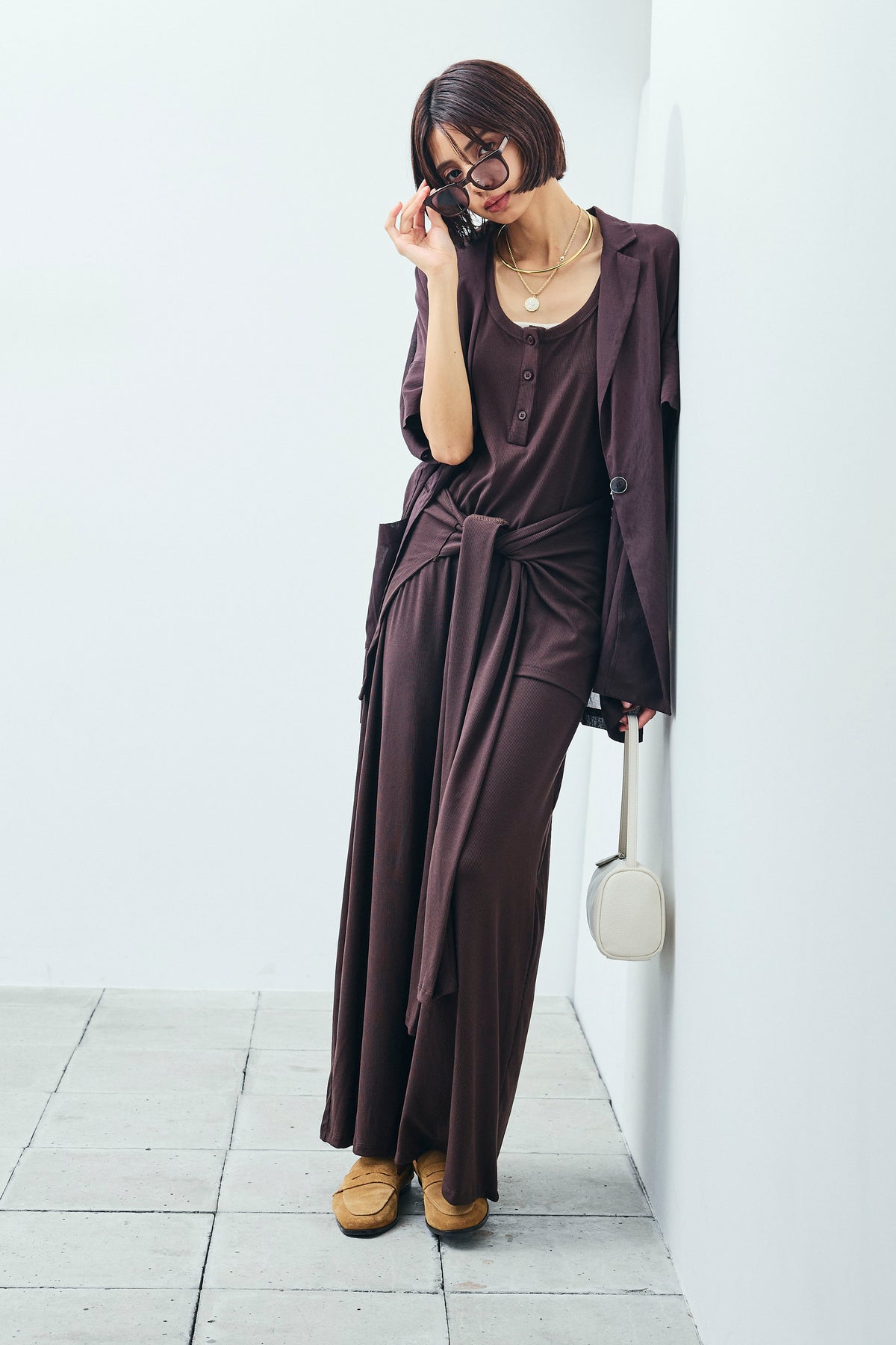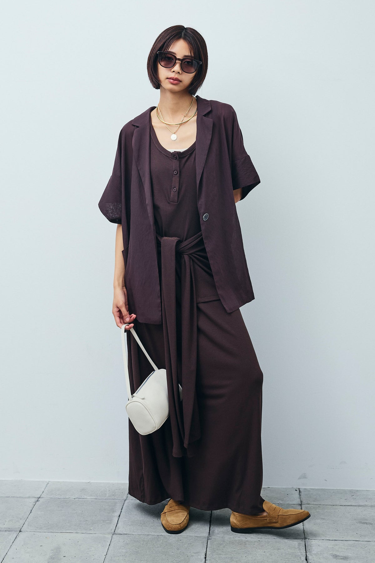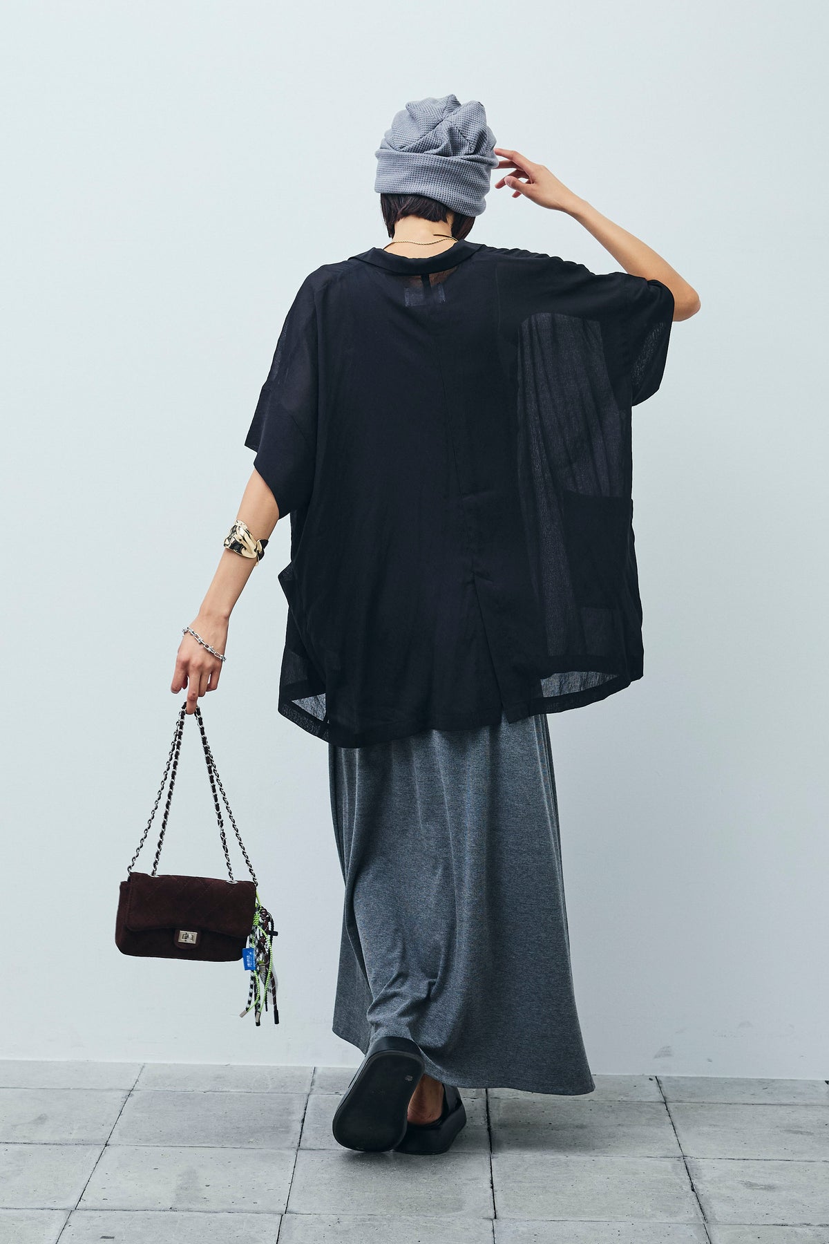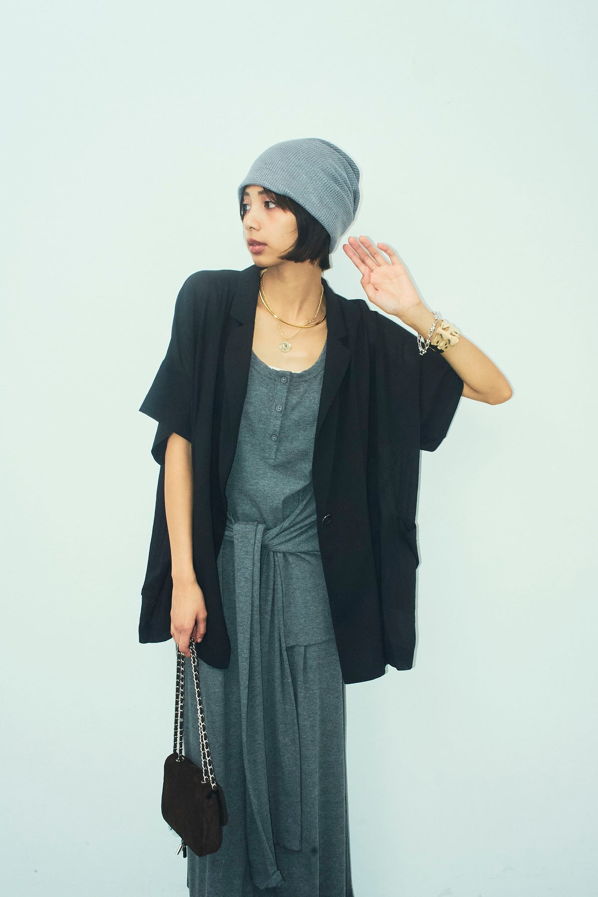 [予約/SET]ハーフスリーブシアーJK+ラップレイヤードリブロングワンピース(2set)