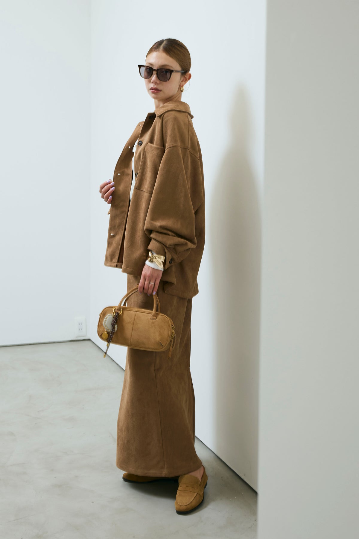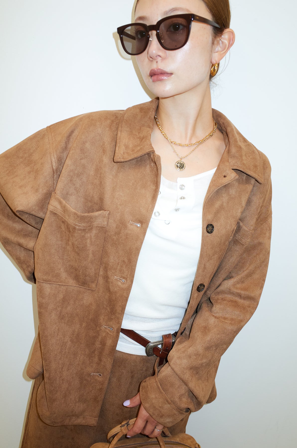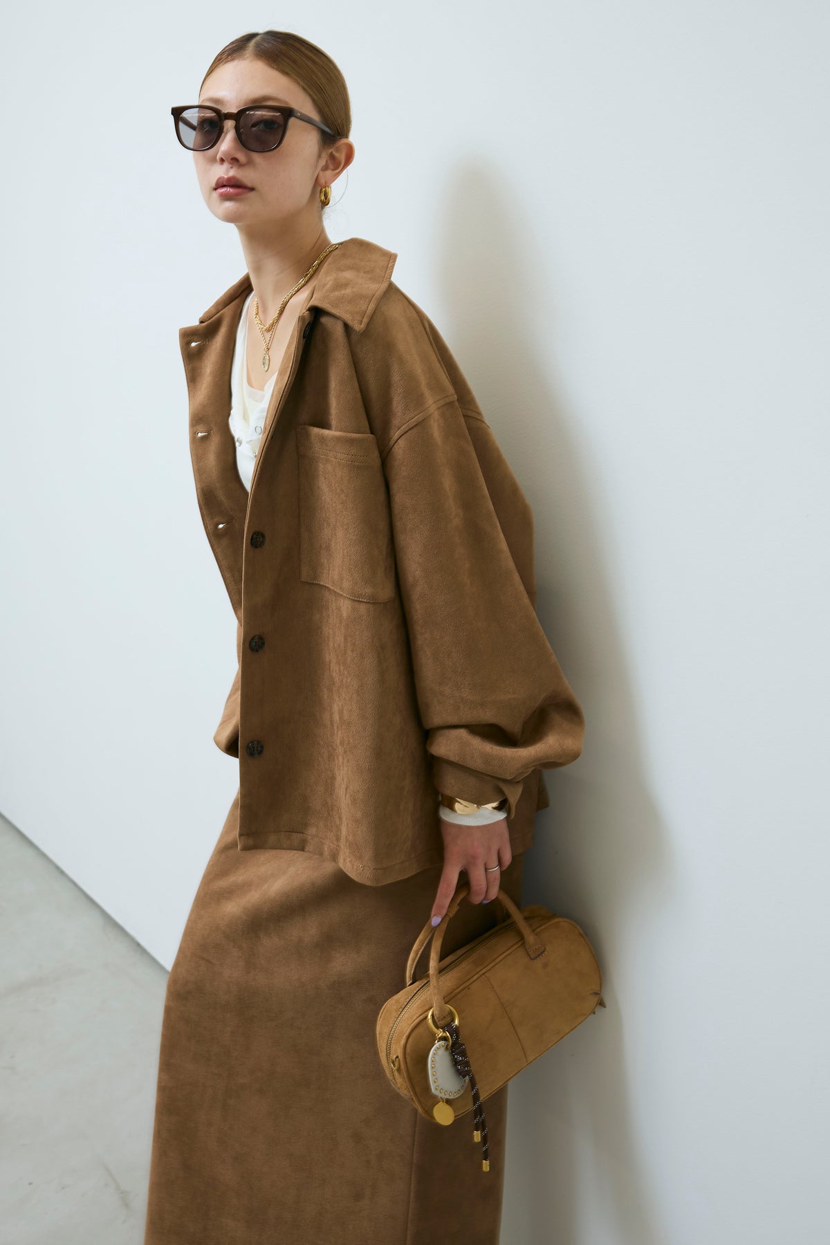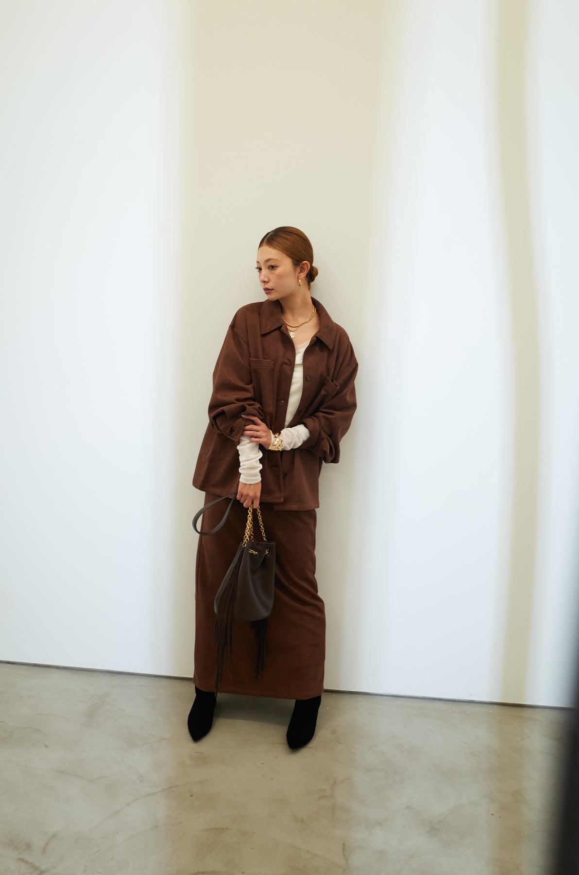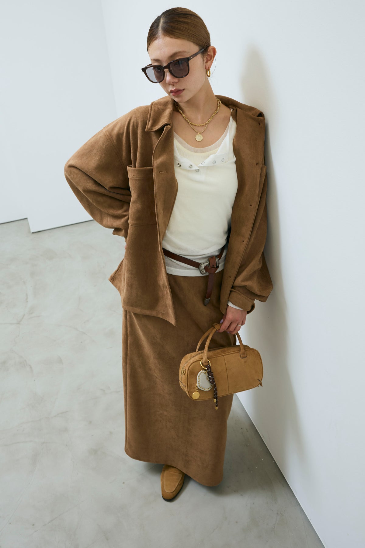 [予約/SET]フェイクスウェードシャツJK+シアーヘンリーネックロンT+フェイクスウェードペンシルSK(3set)