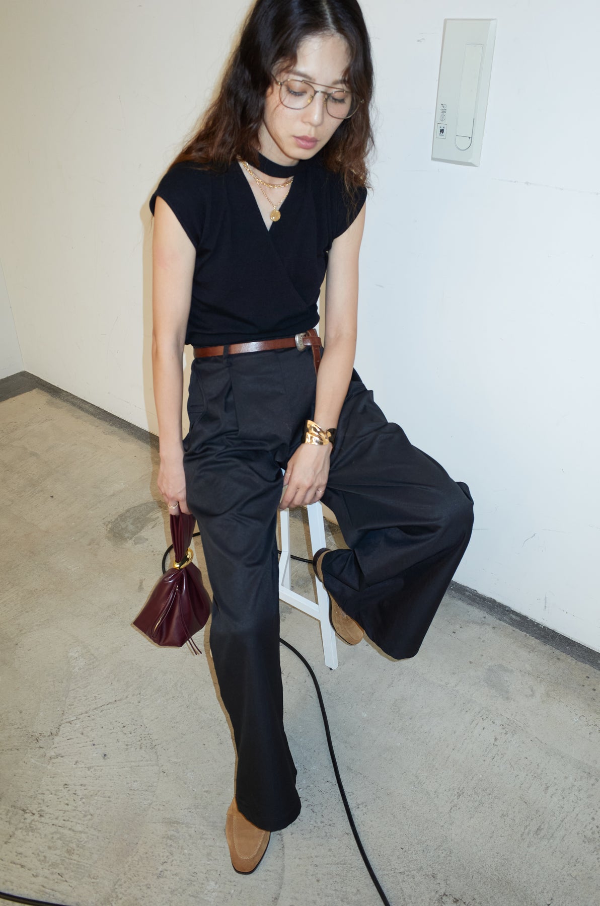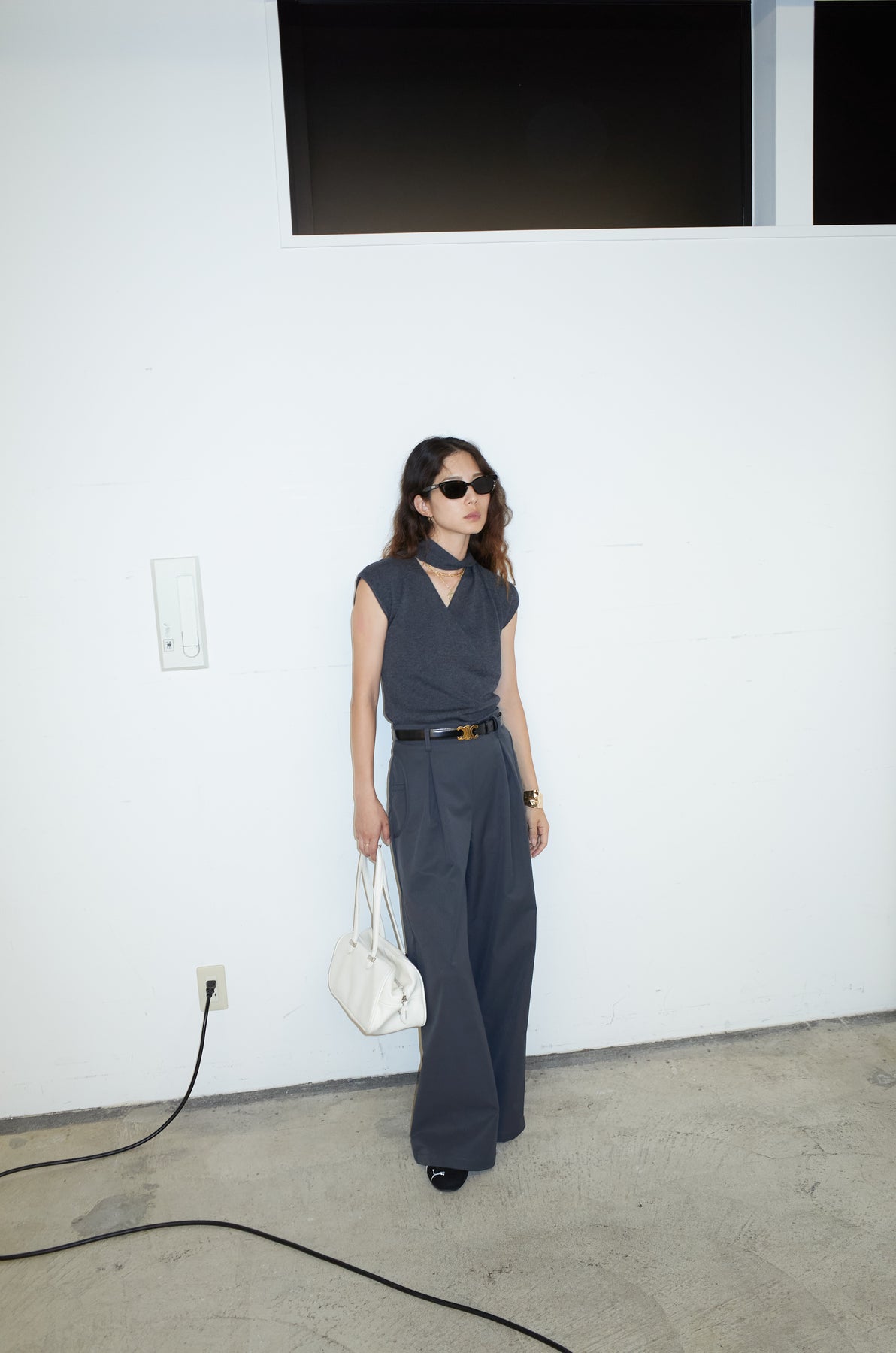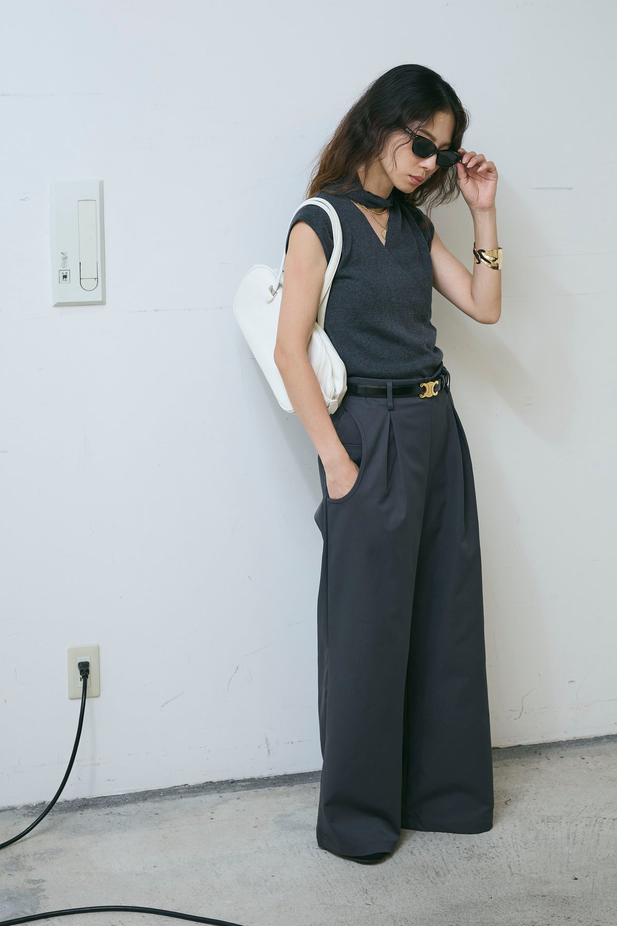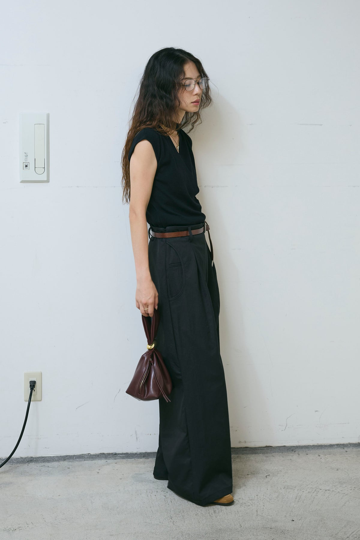 [予約/SET]タイつきVネックニットPO+サイドポケットカーブフォルムパンツ(2set)