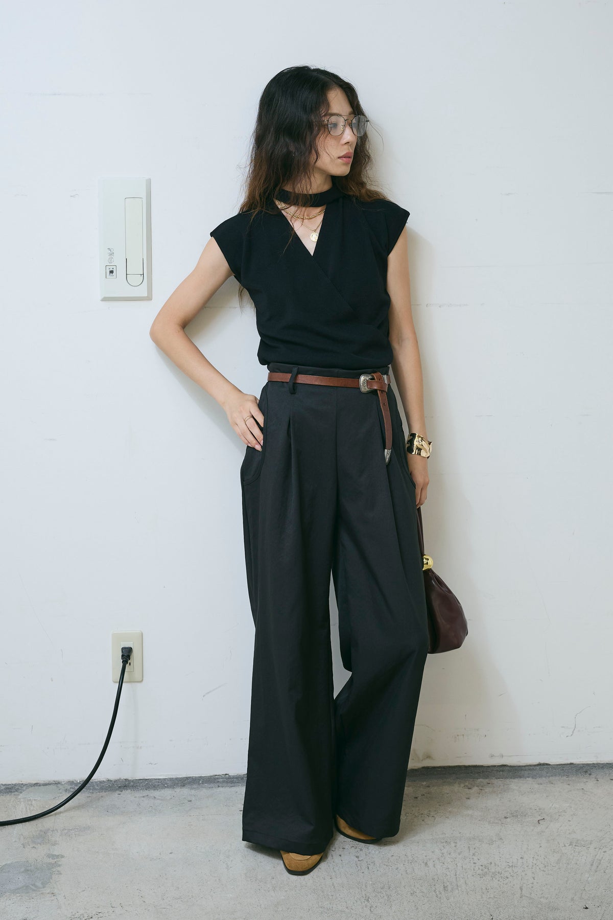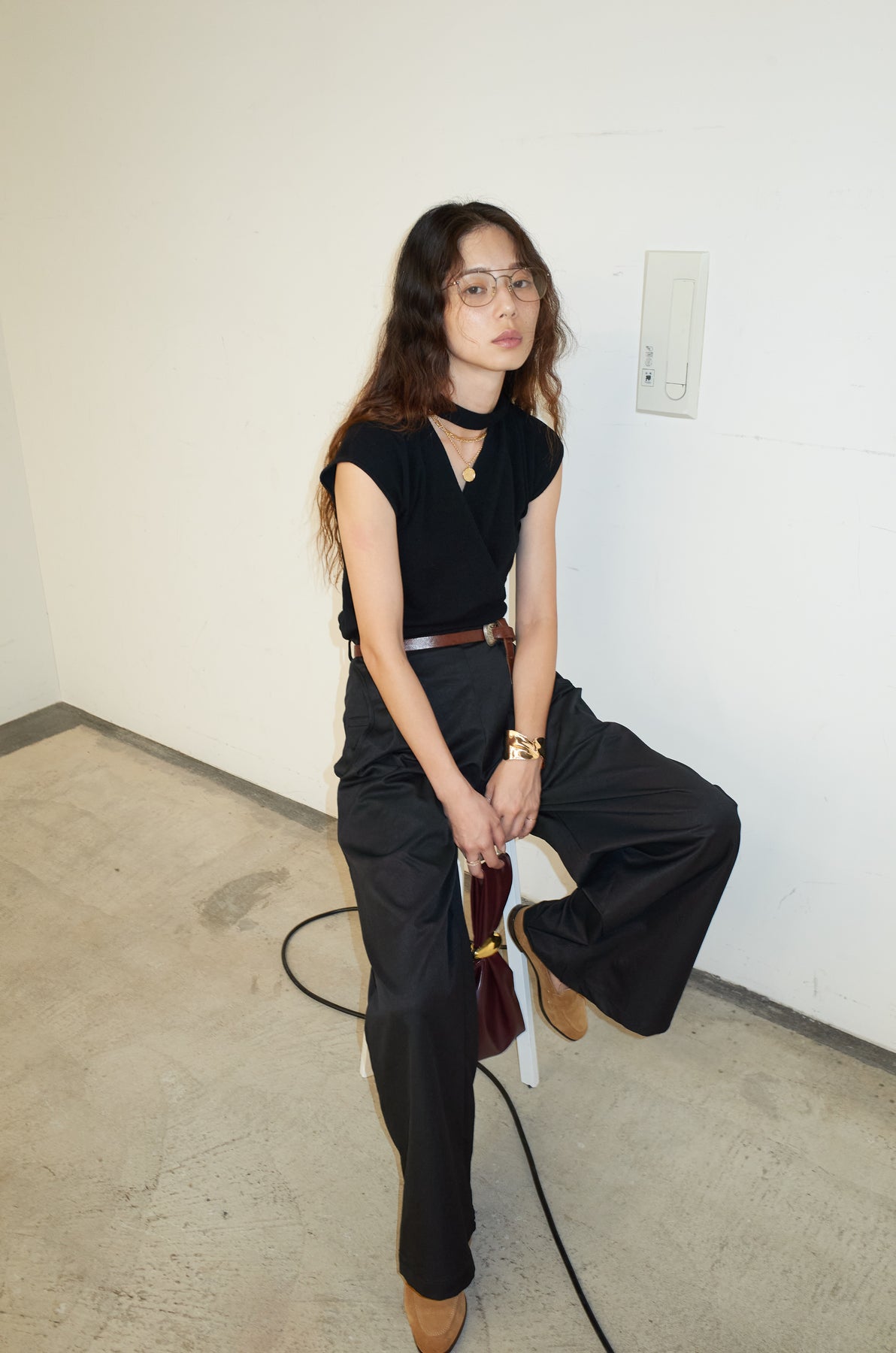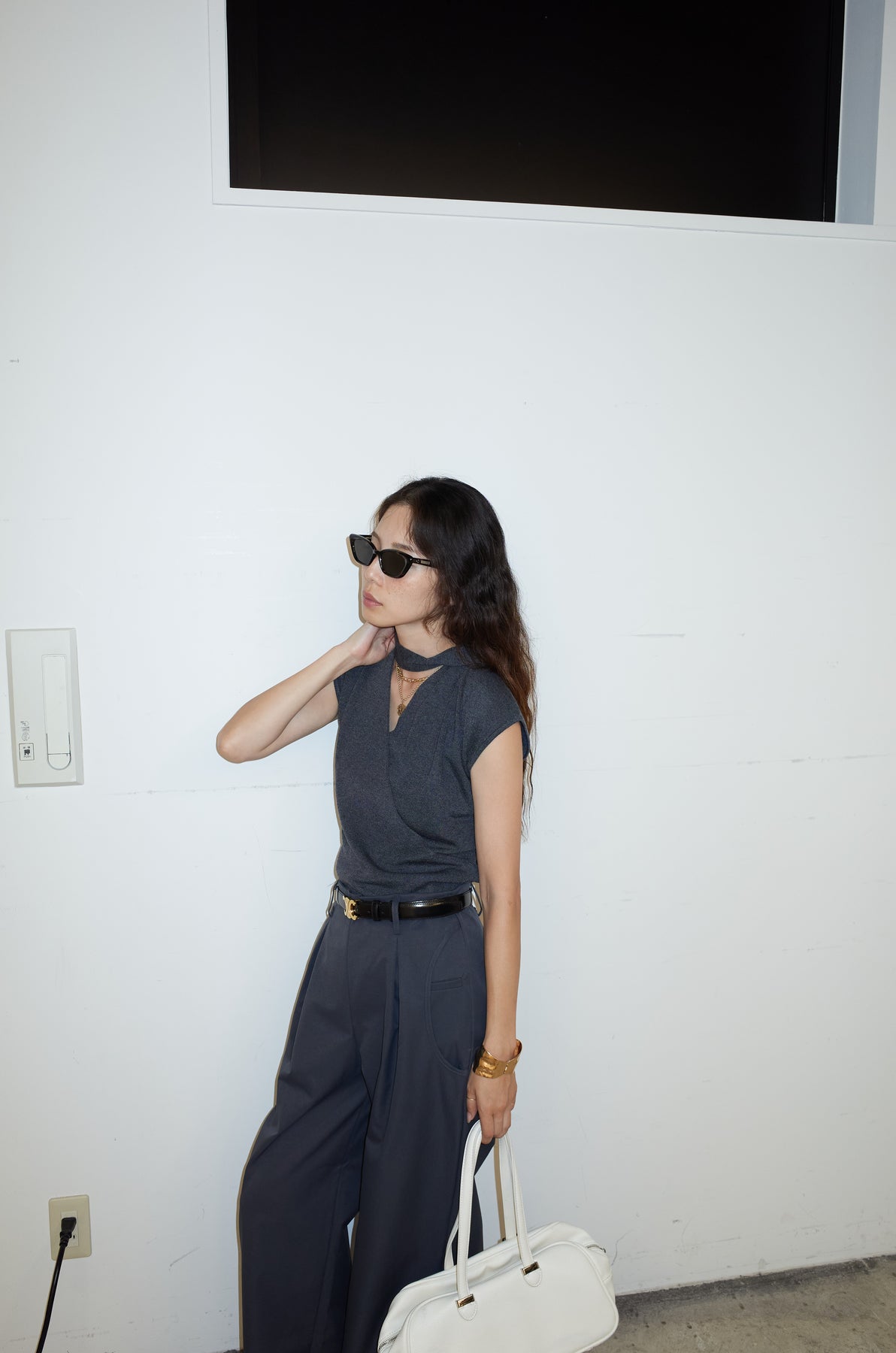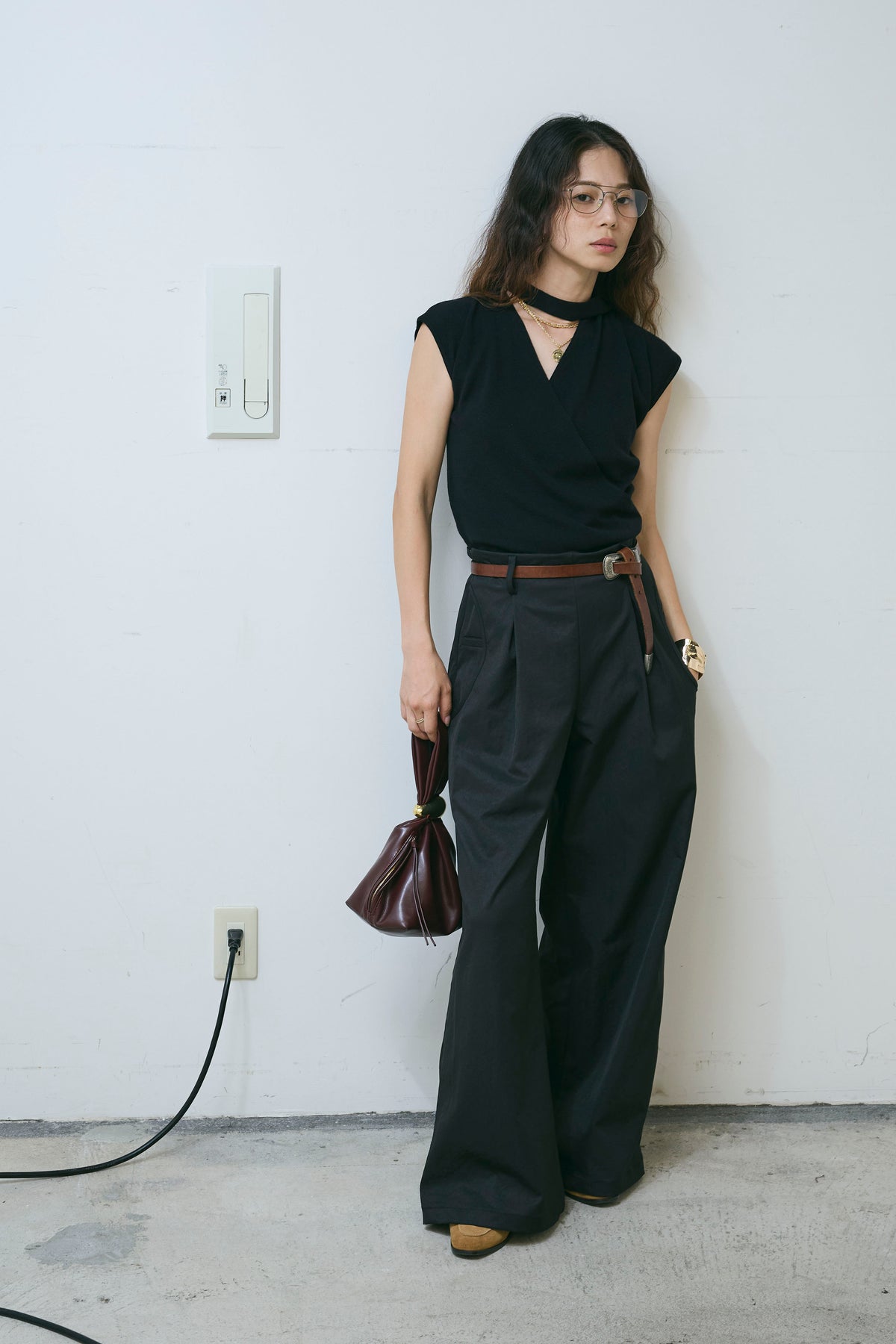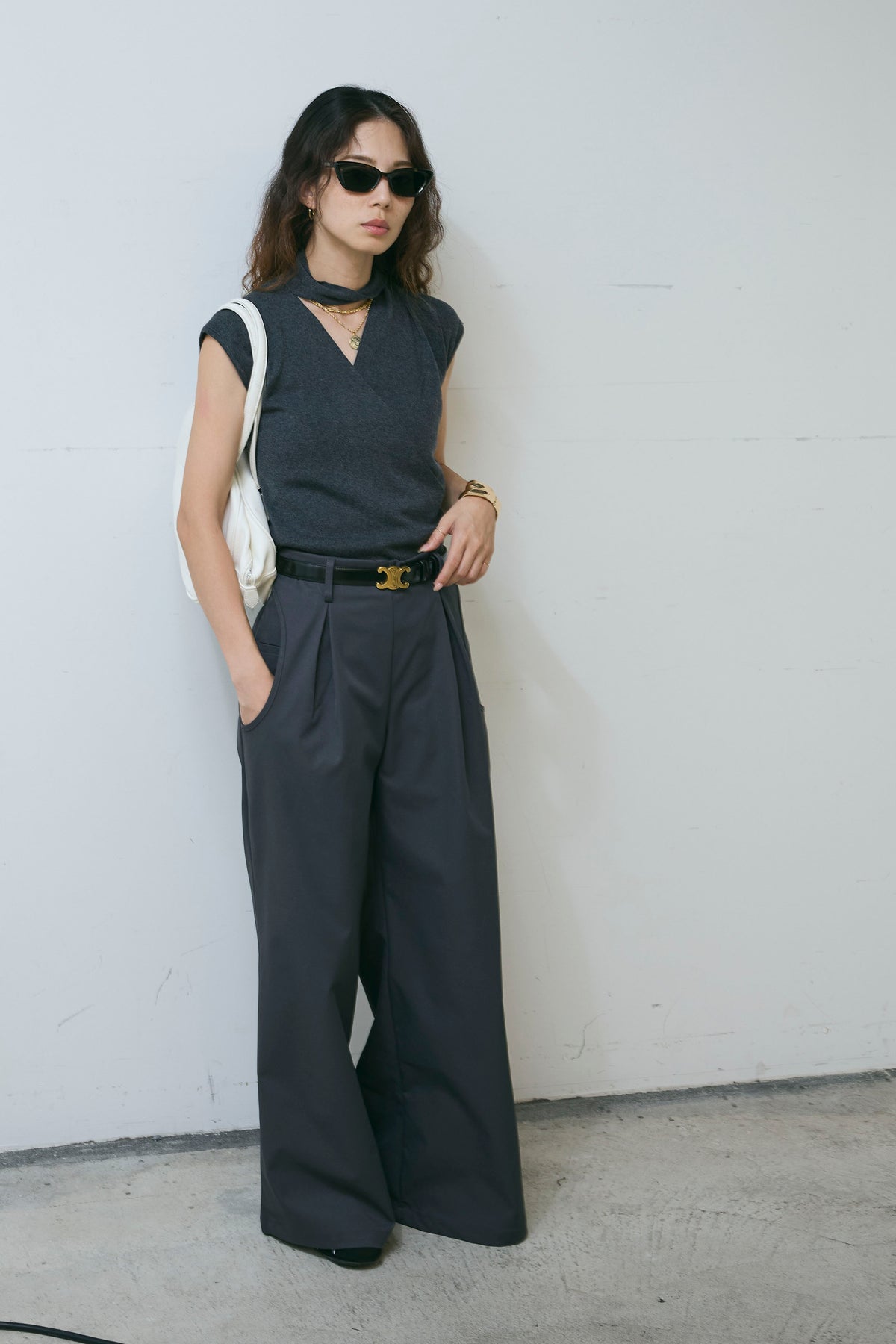 [予約/SET]タイつきVネックニットPO+サイドポケットカーブフォルムパンツ(2set)