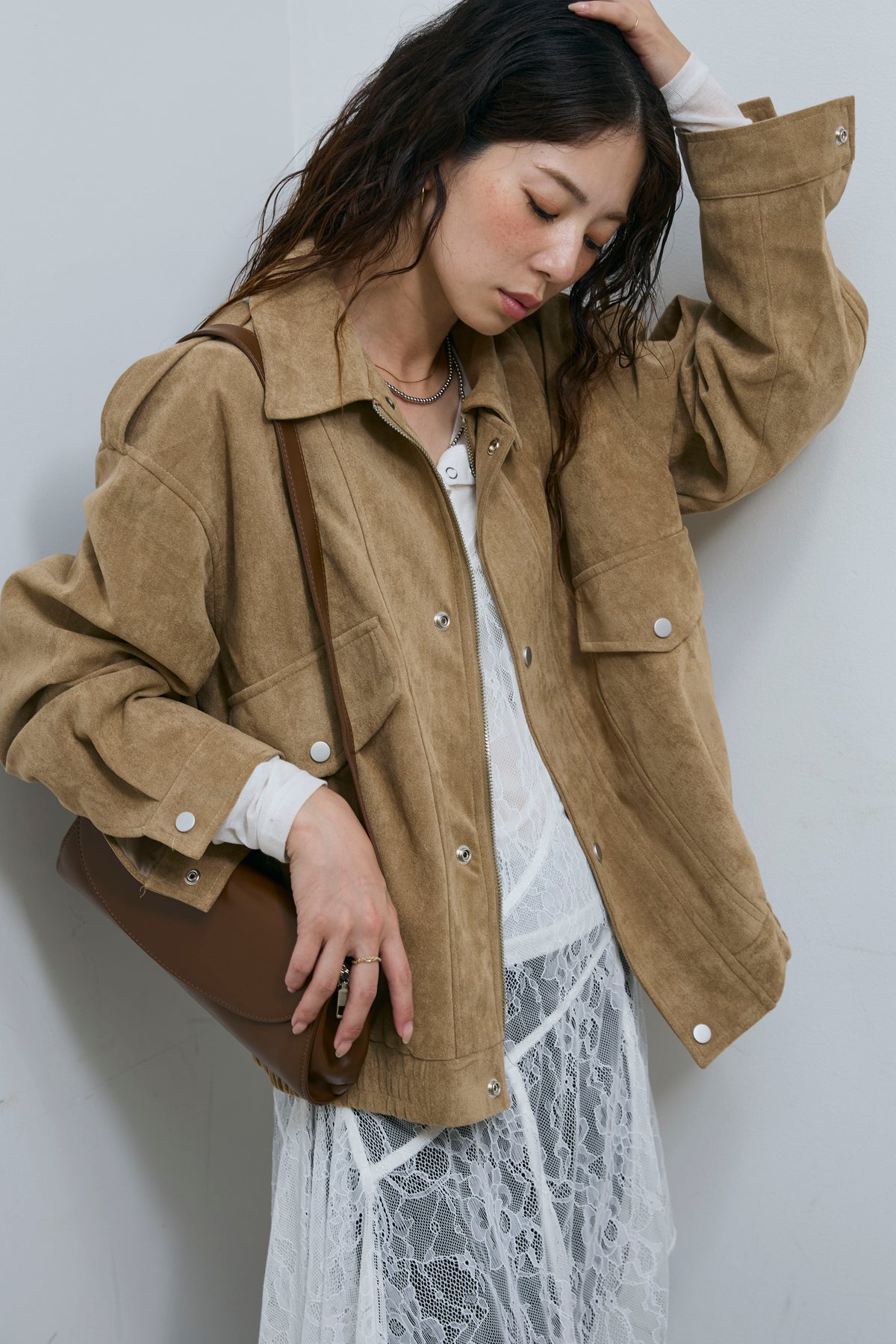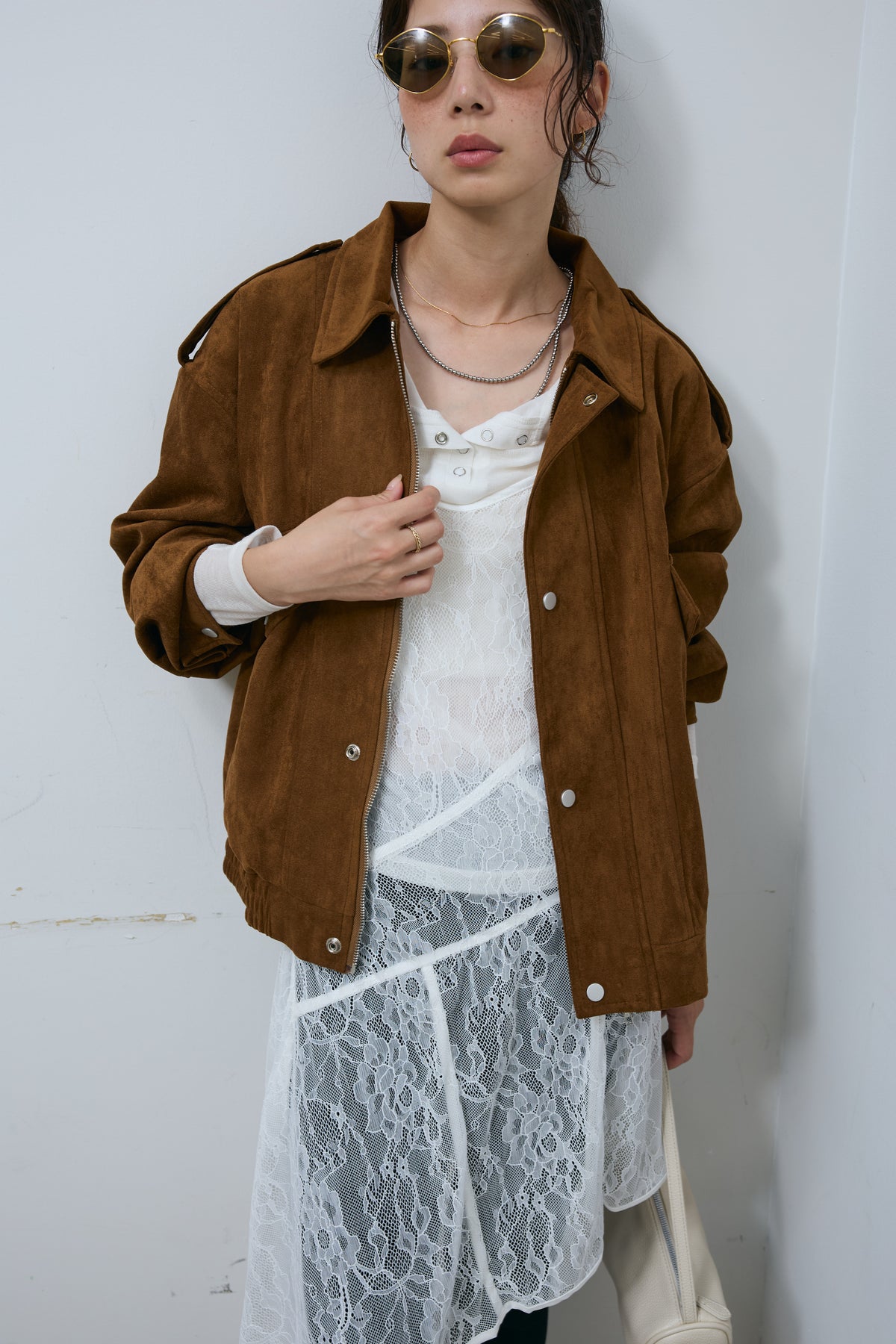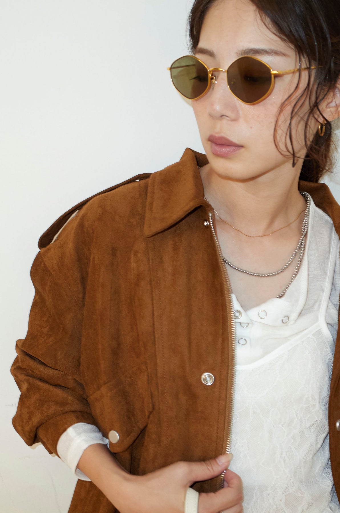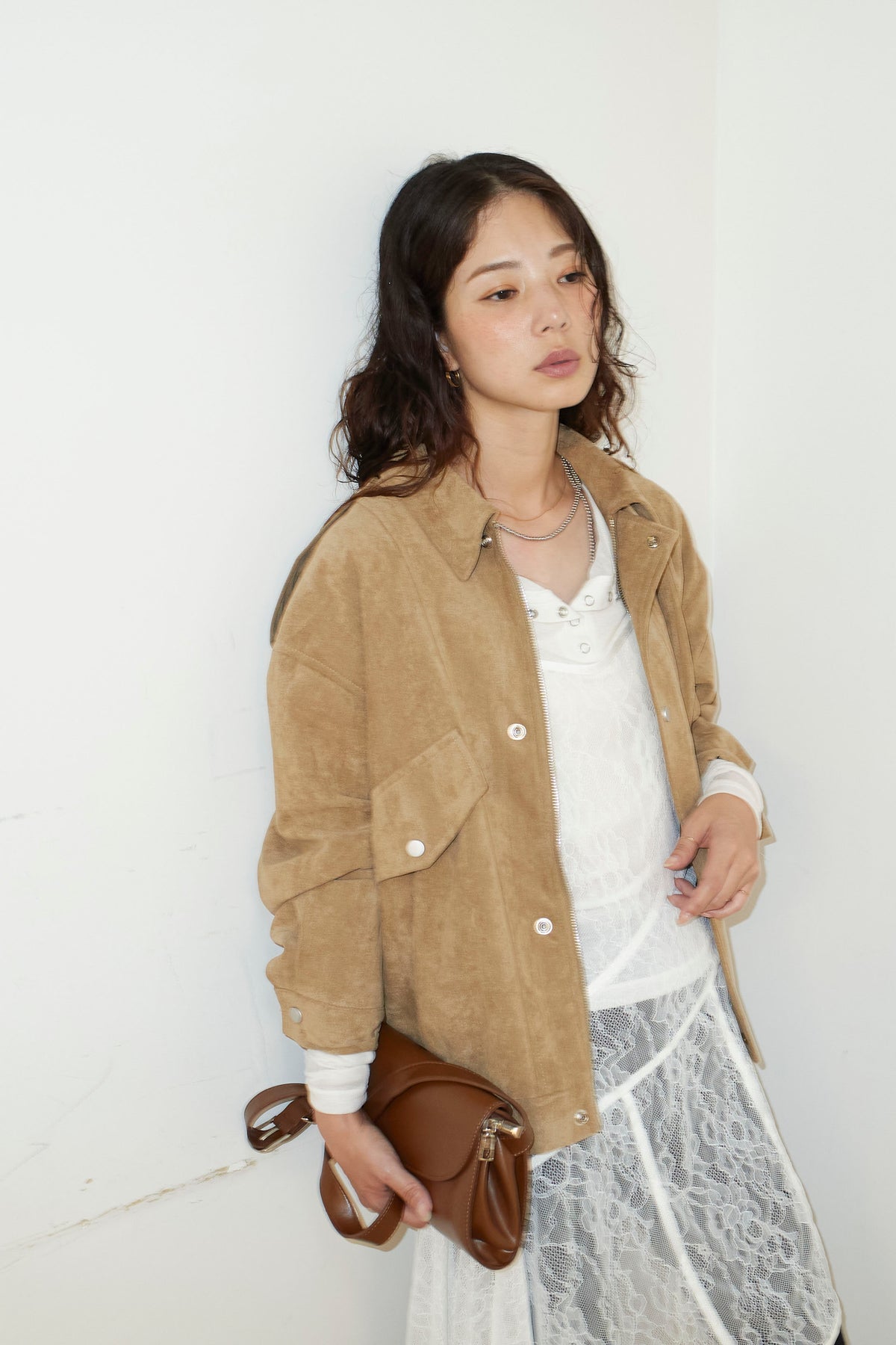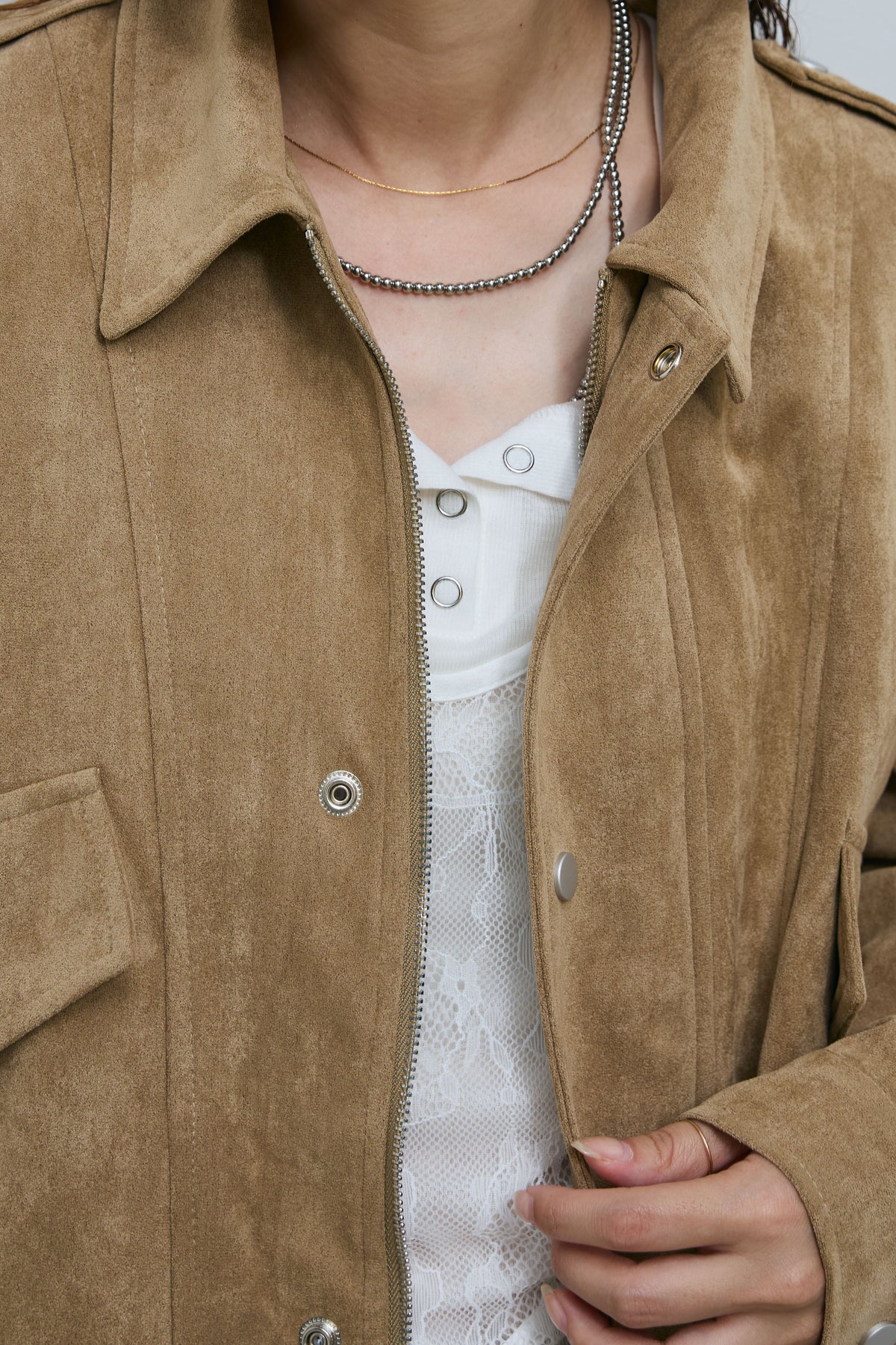 [予約/SET]エポーレット付きスウェードライクブルゾン+シアーヘンリーネックロンT+ニットトレンカ(3set)