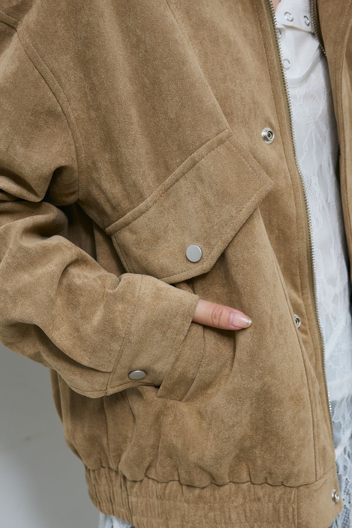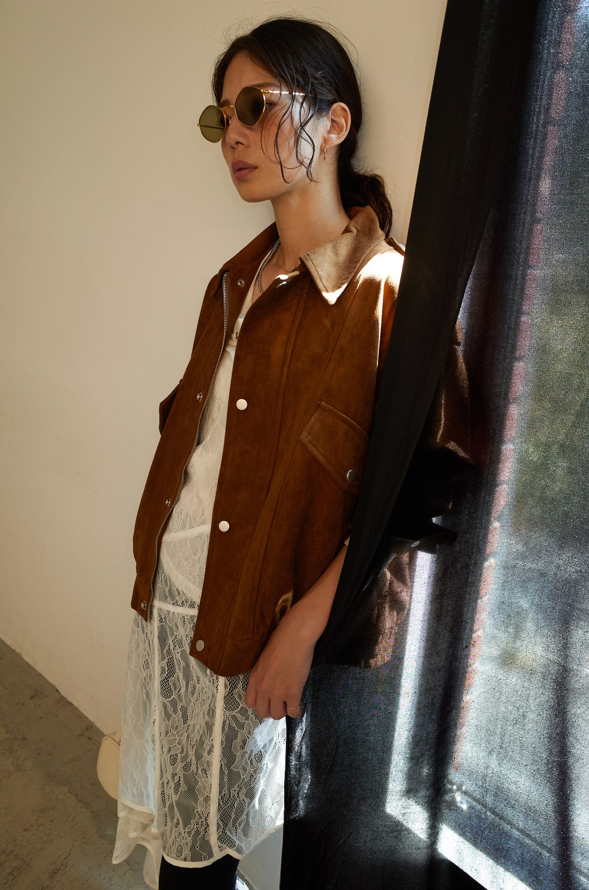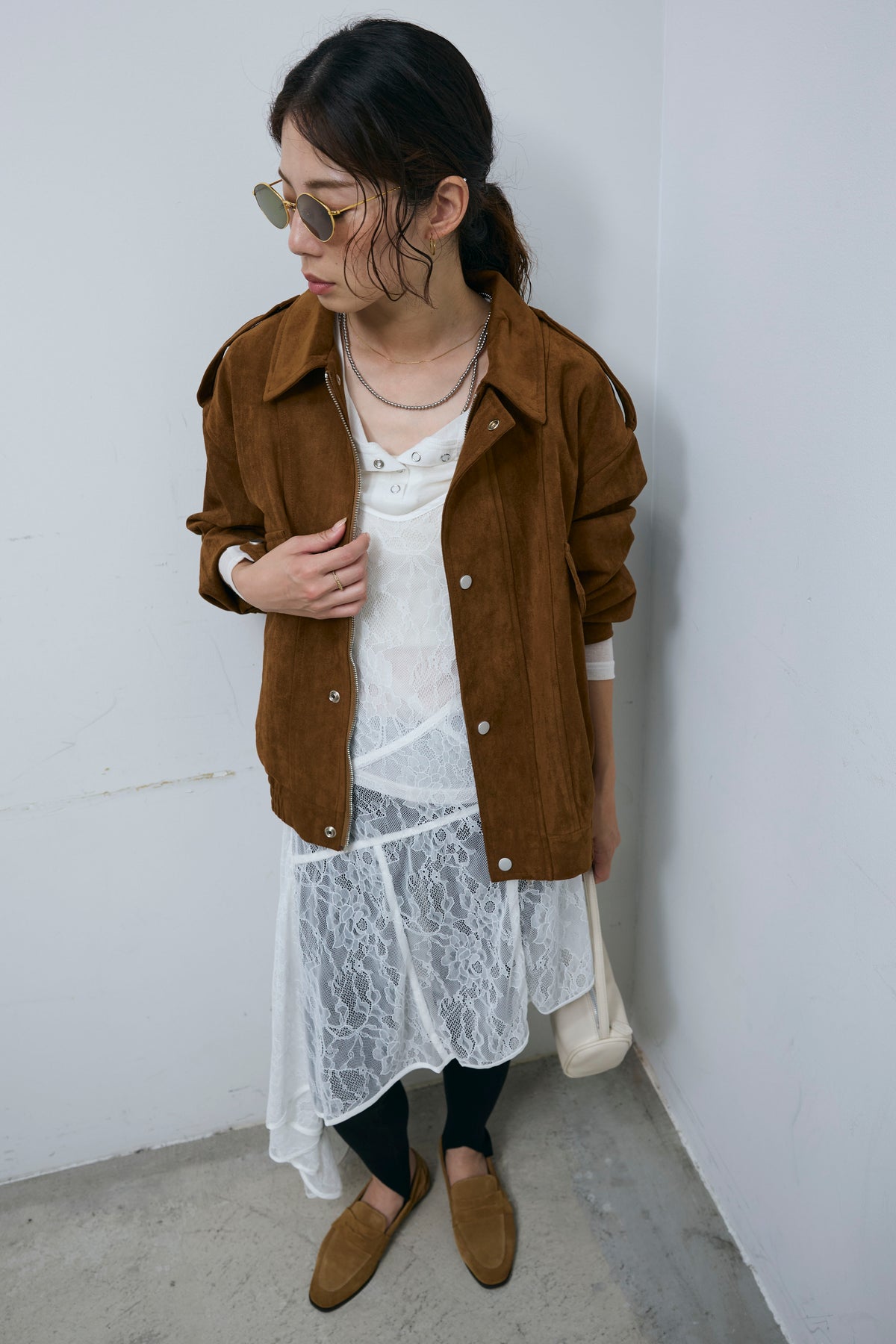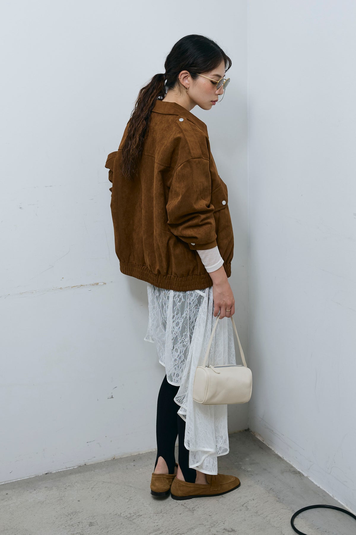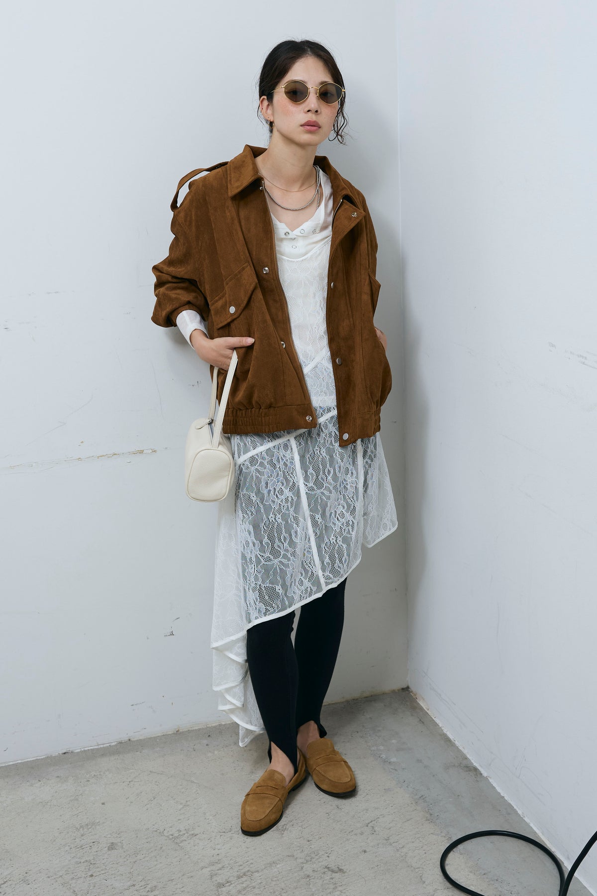 [予約/SET]エポーレット付きスウェードライクブルゾン+シアーヘンリーネックロンT+ニットトレンカ(3set)