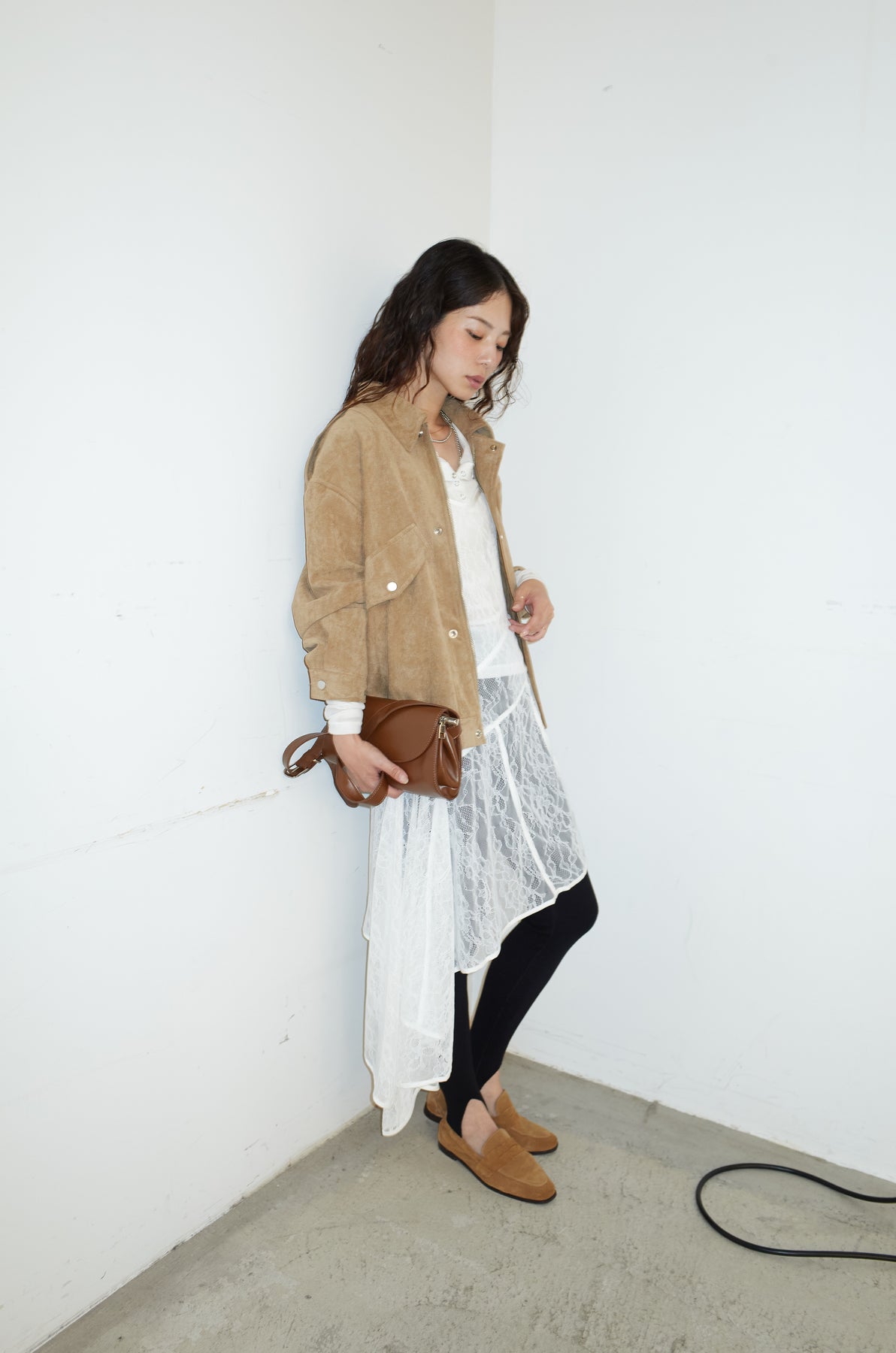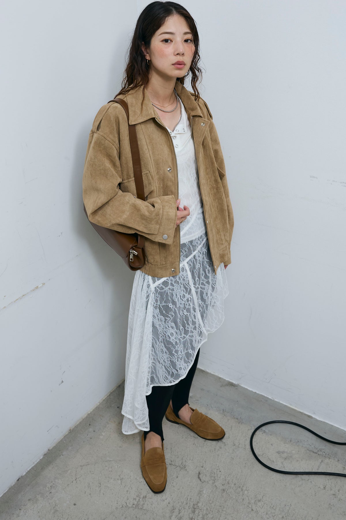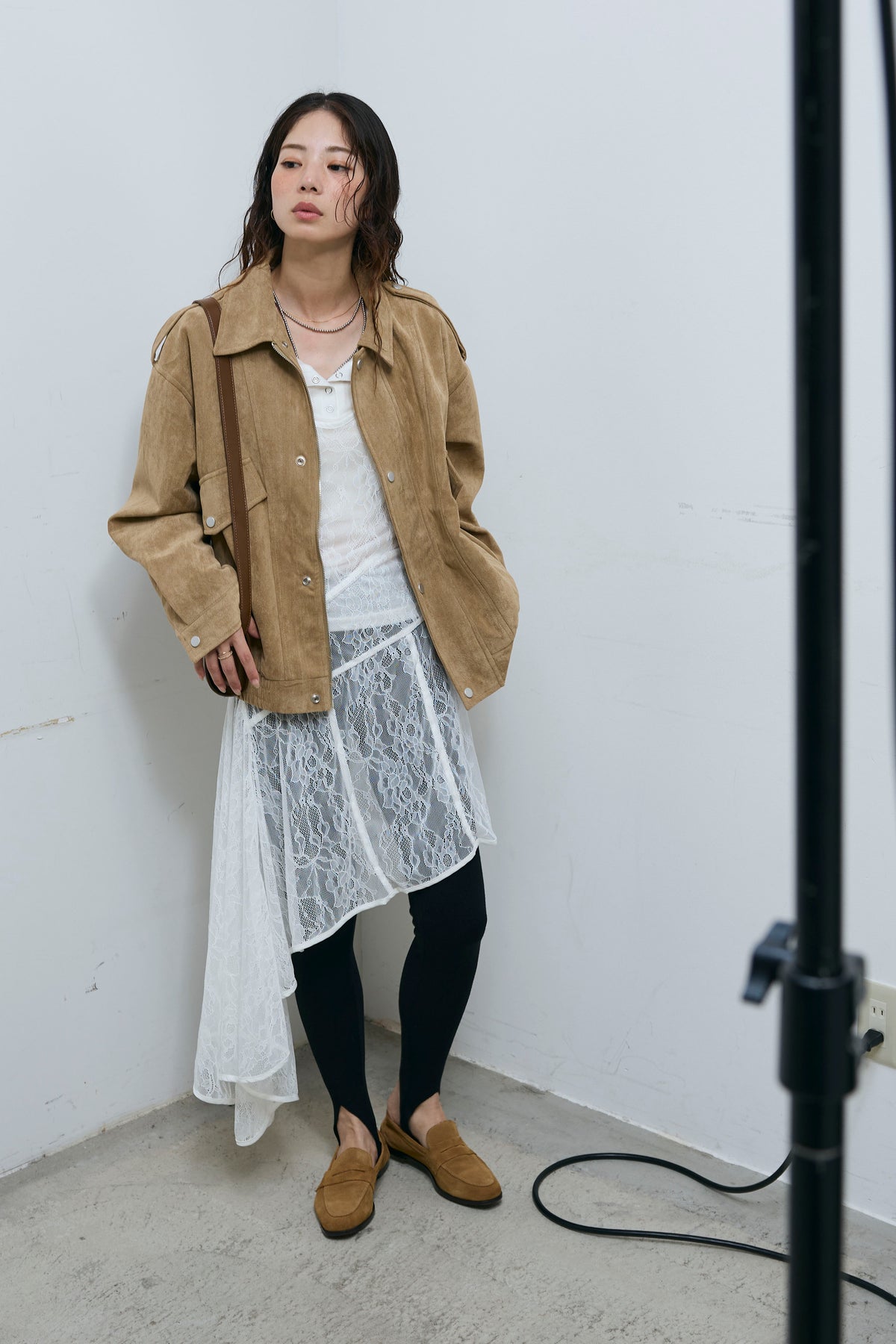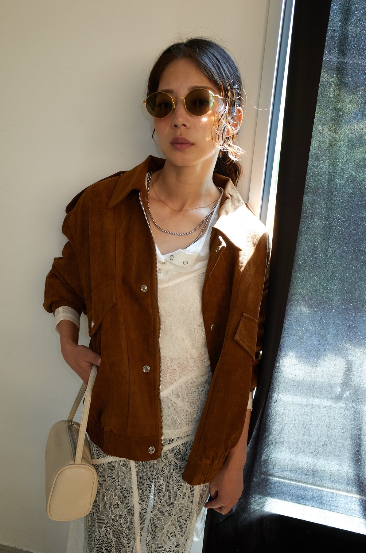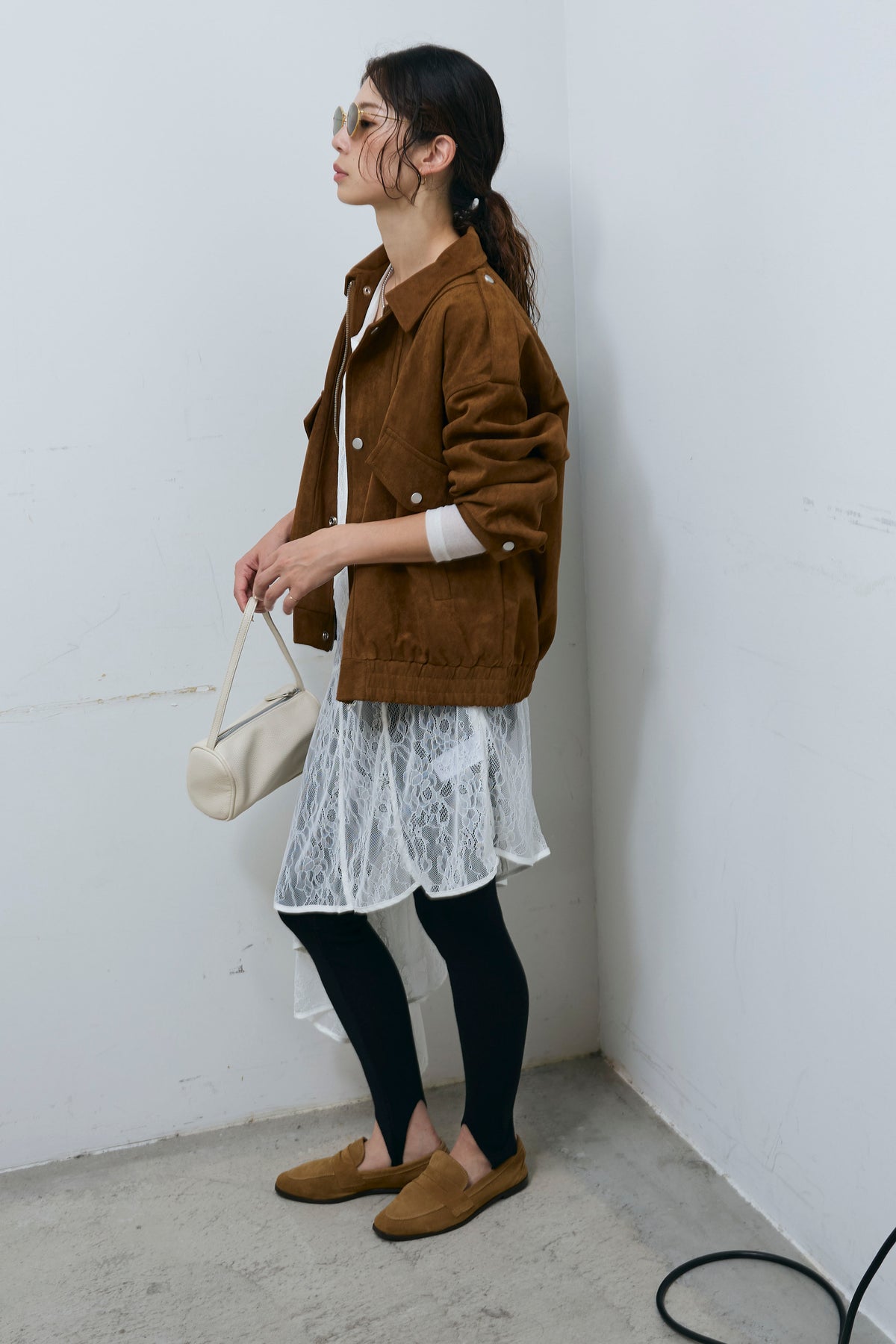 [予約/SET]エポーレット付きスウェードライクブルゾン+シアーヘンリーネックロンT+ニットトレンカ(3set)