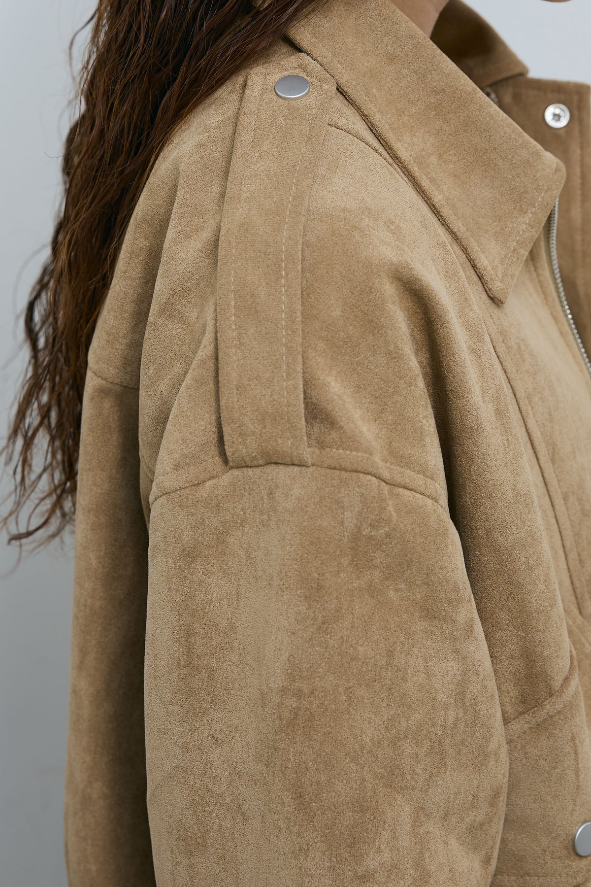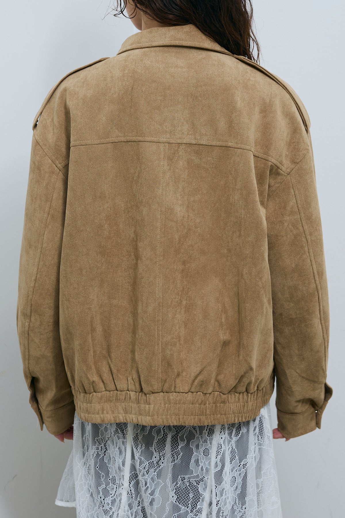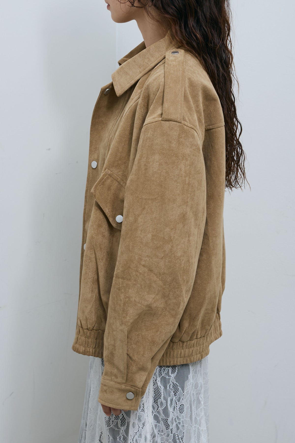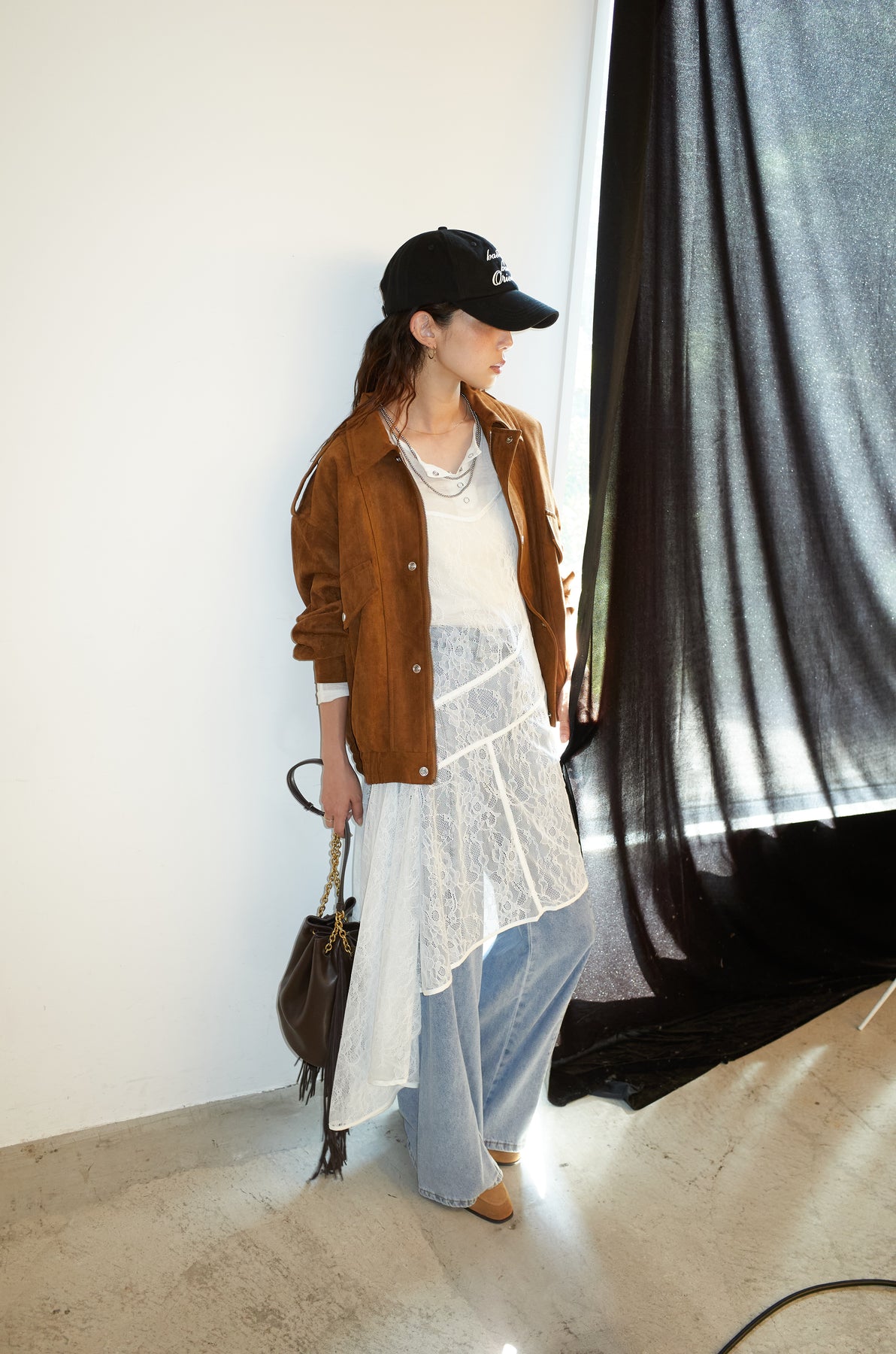 [予約/SET]エポーレット付きスウェードライクブルゾン+シアーヘンリーネックロンT+サイド切り替えデニム(3set)