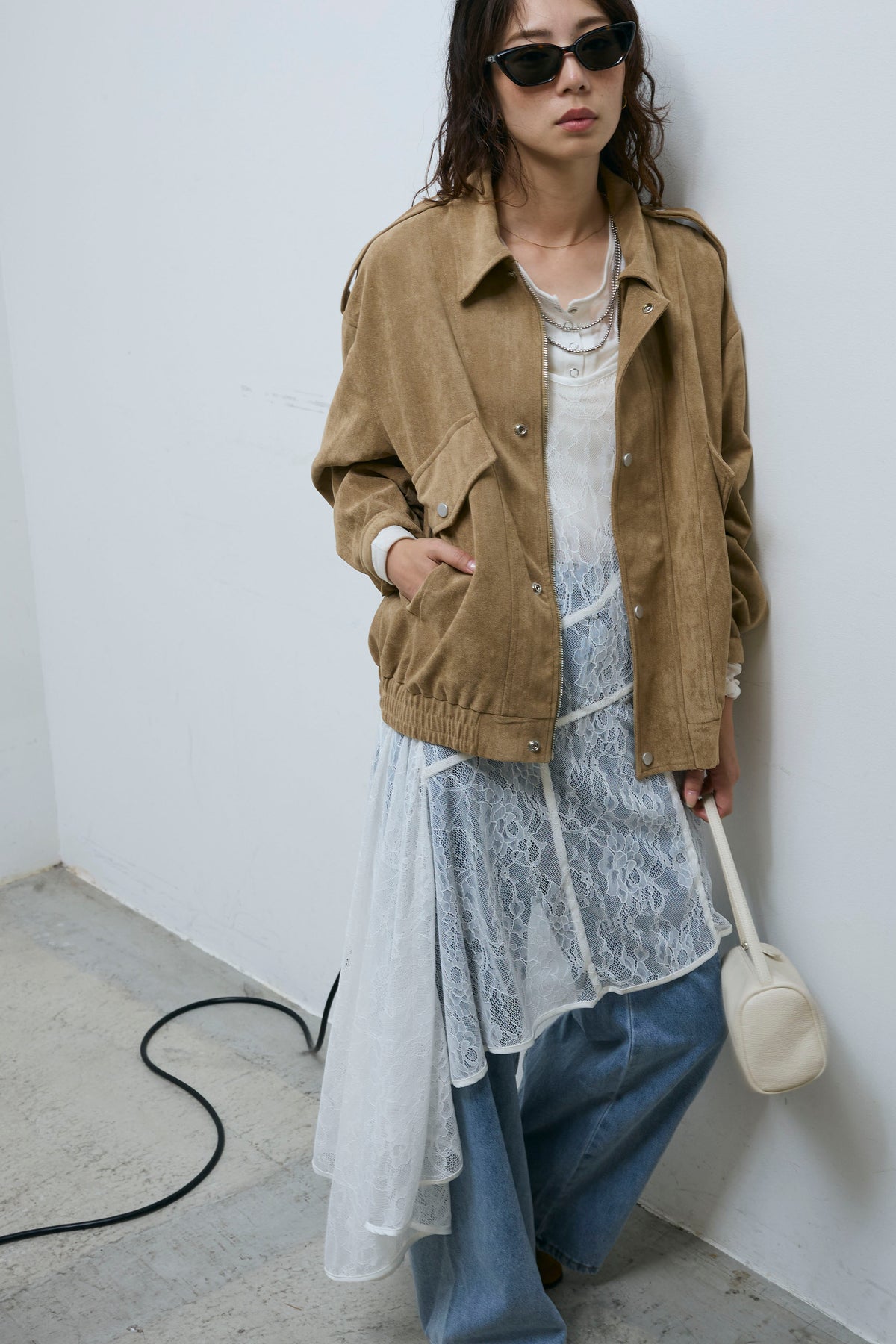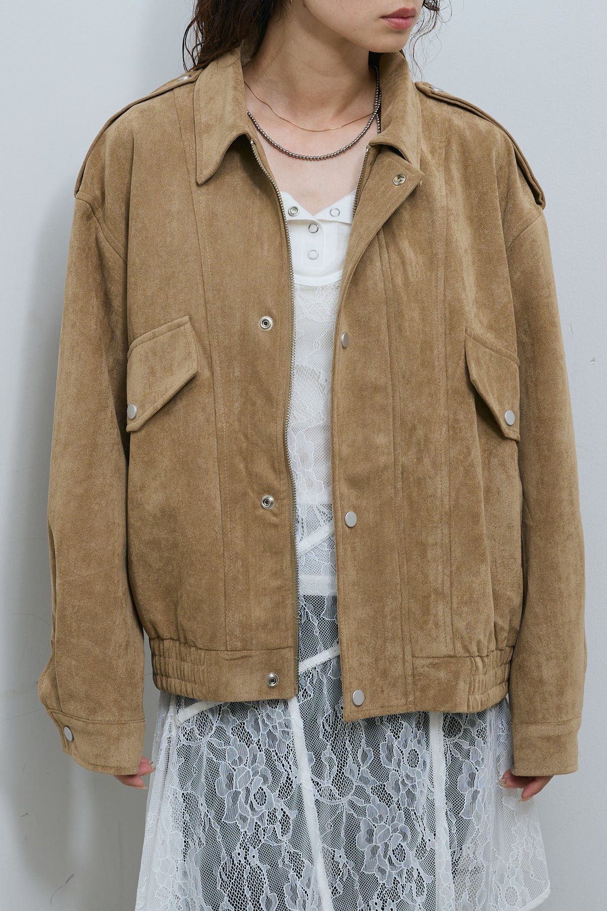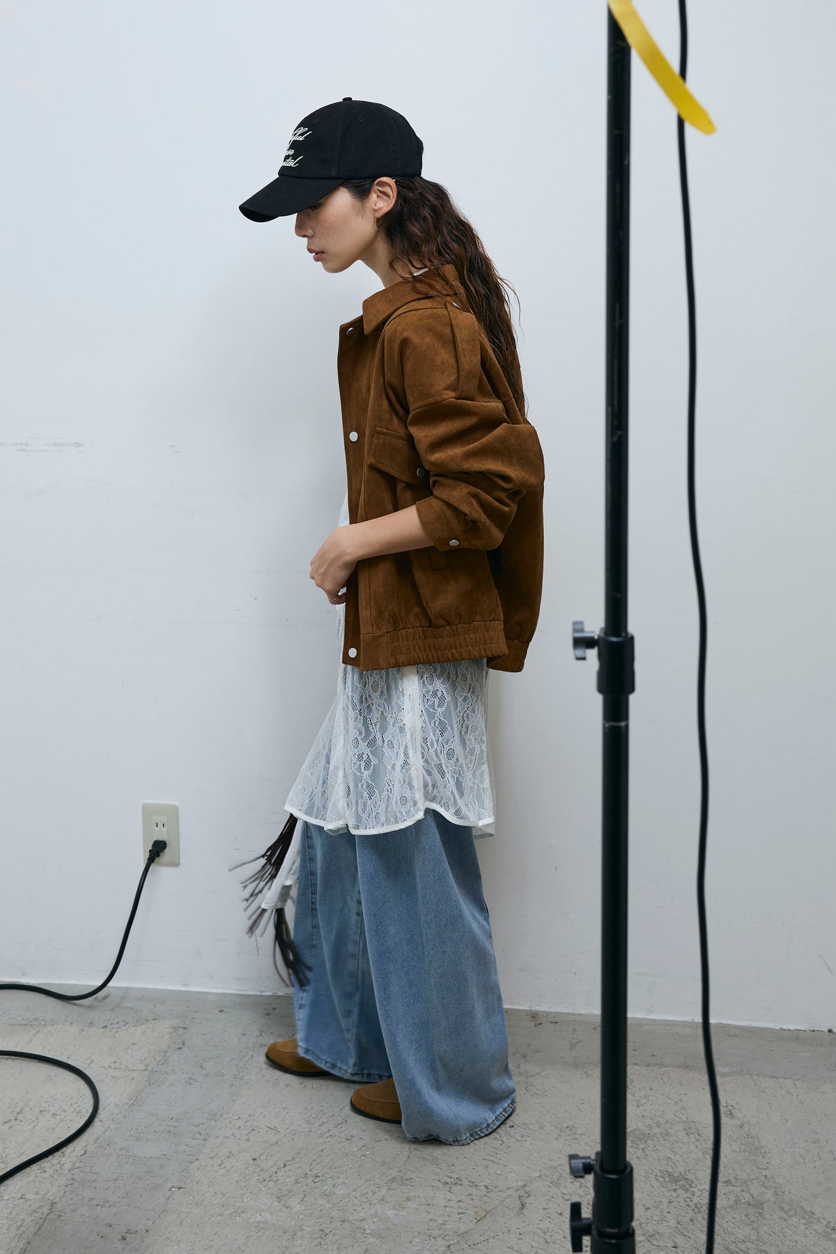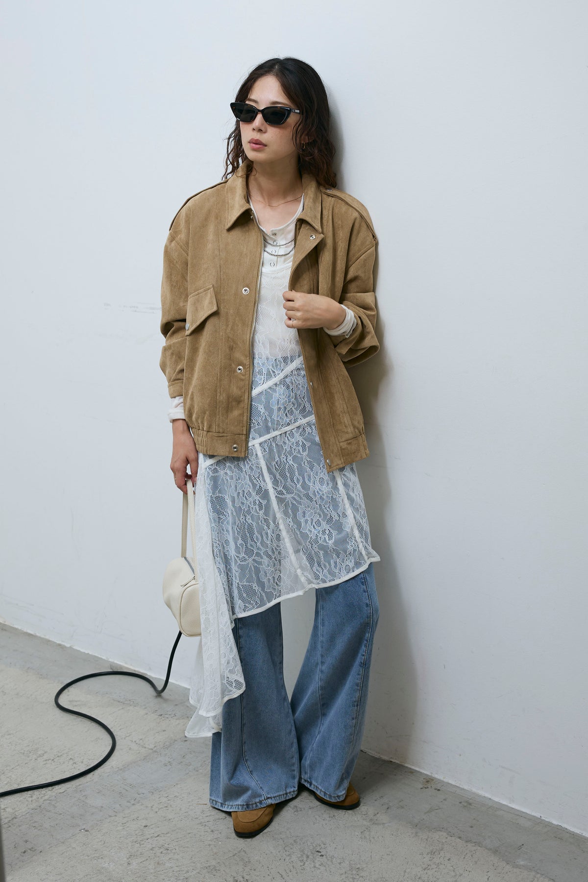 [予約/SET]エポーレット付きスウェードライクブルゾン+サイド切り替えデニム(2set)