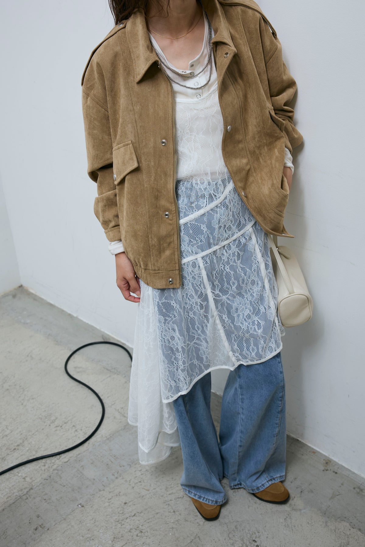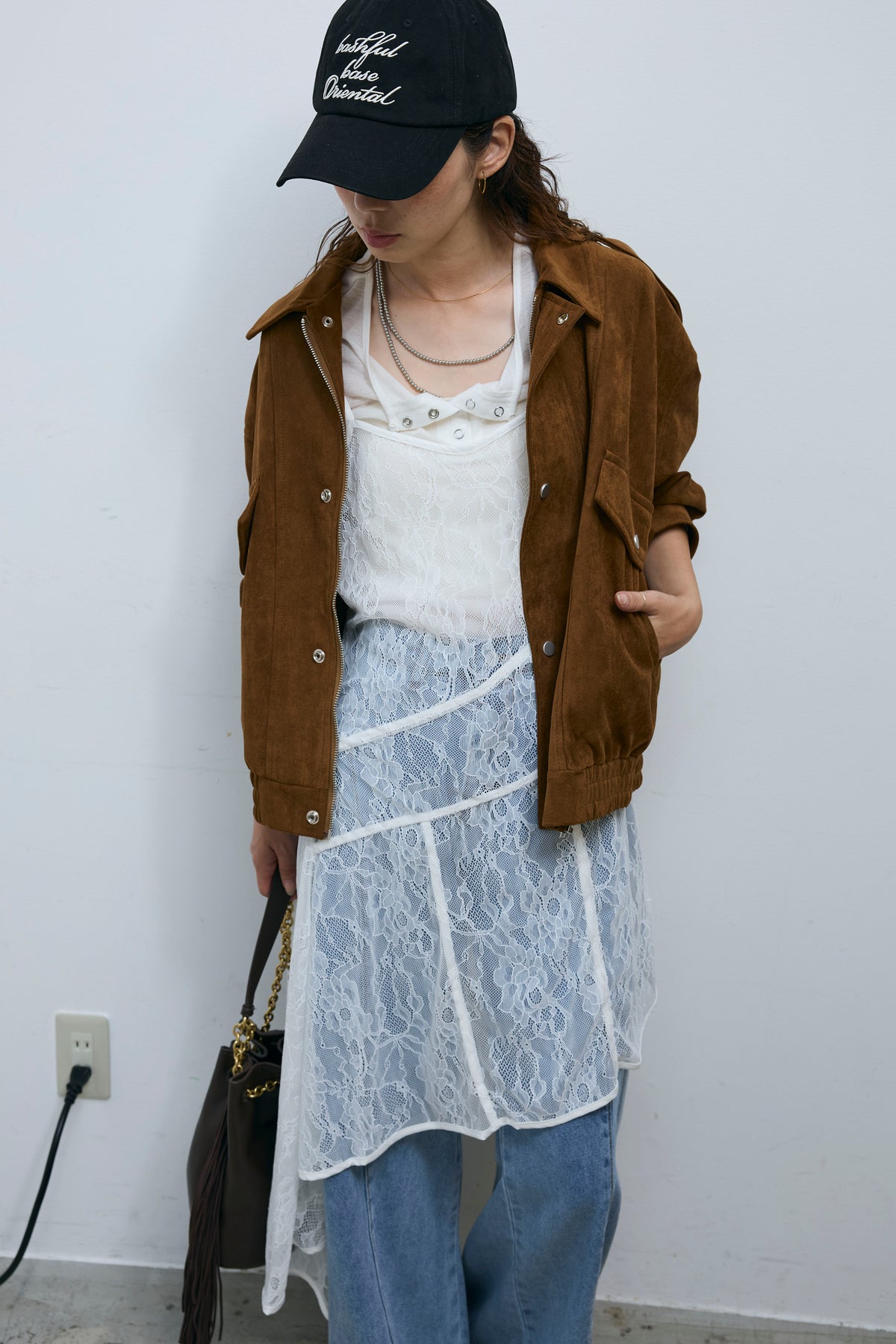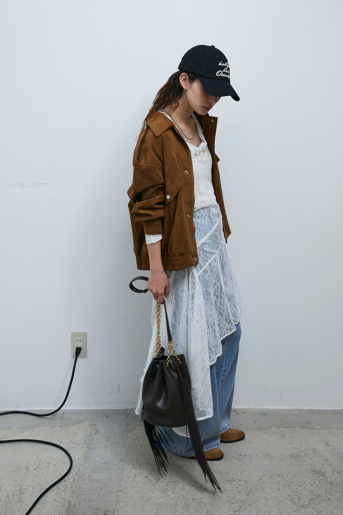 [予約/SET]エポーレット付きスウェードライクブルゾン+サイド切り替えデニム(2set)