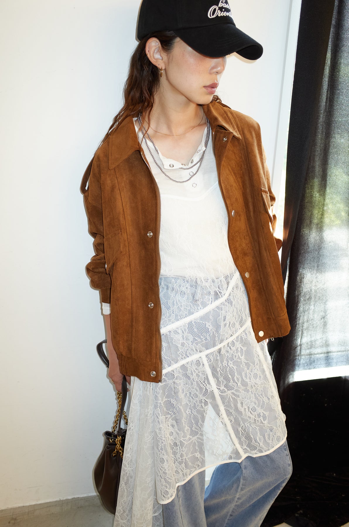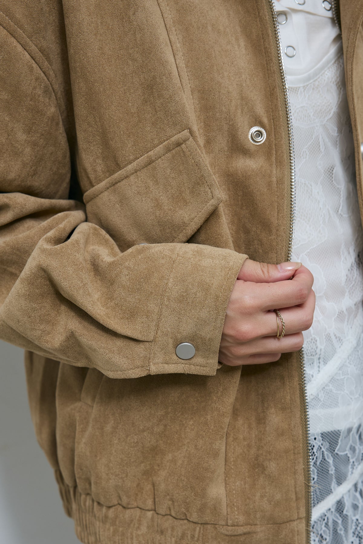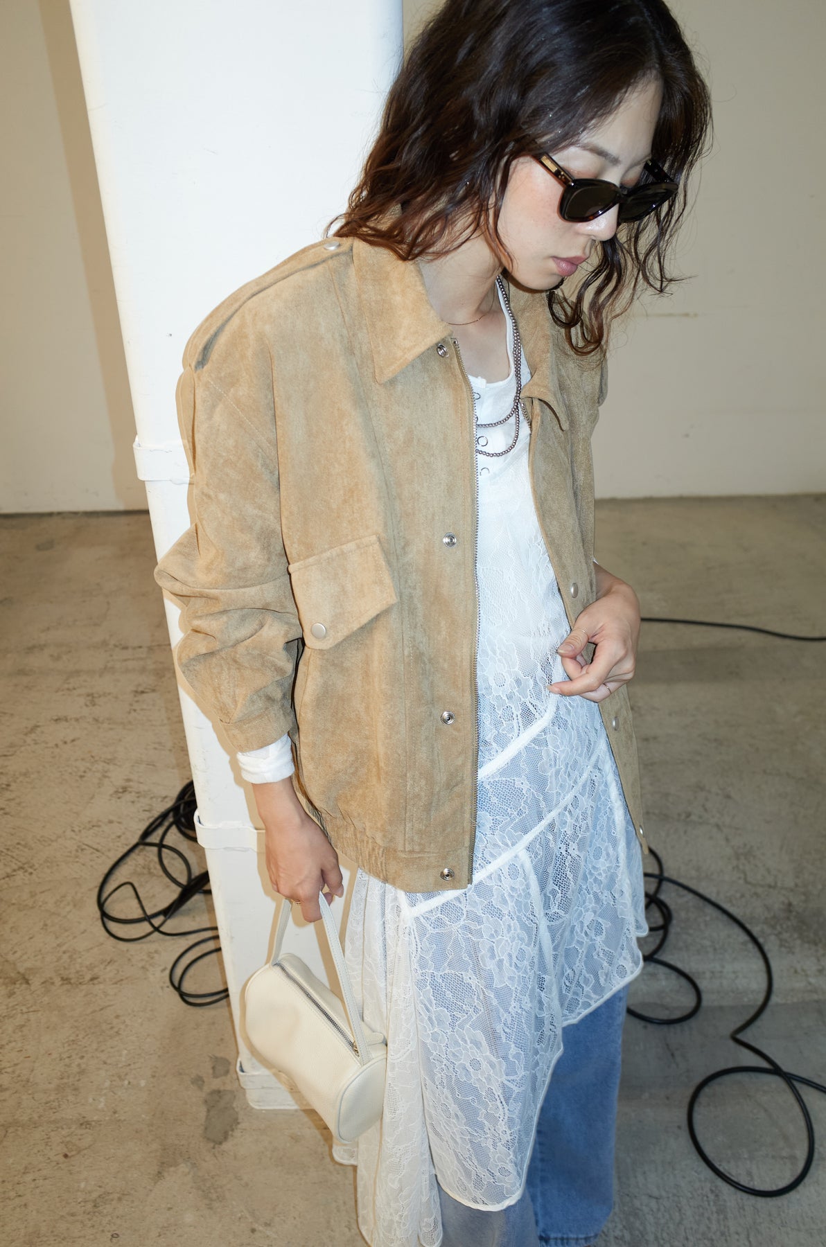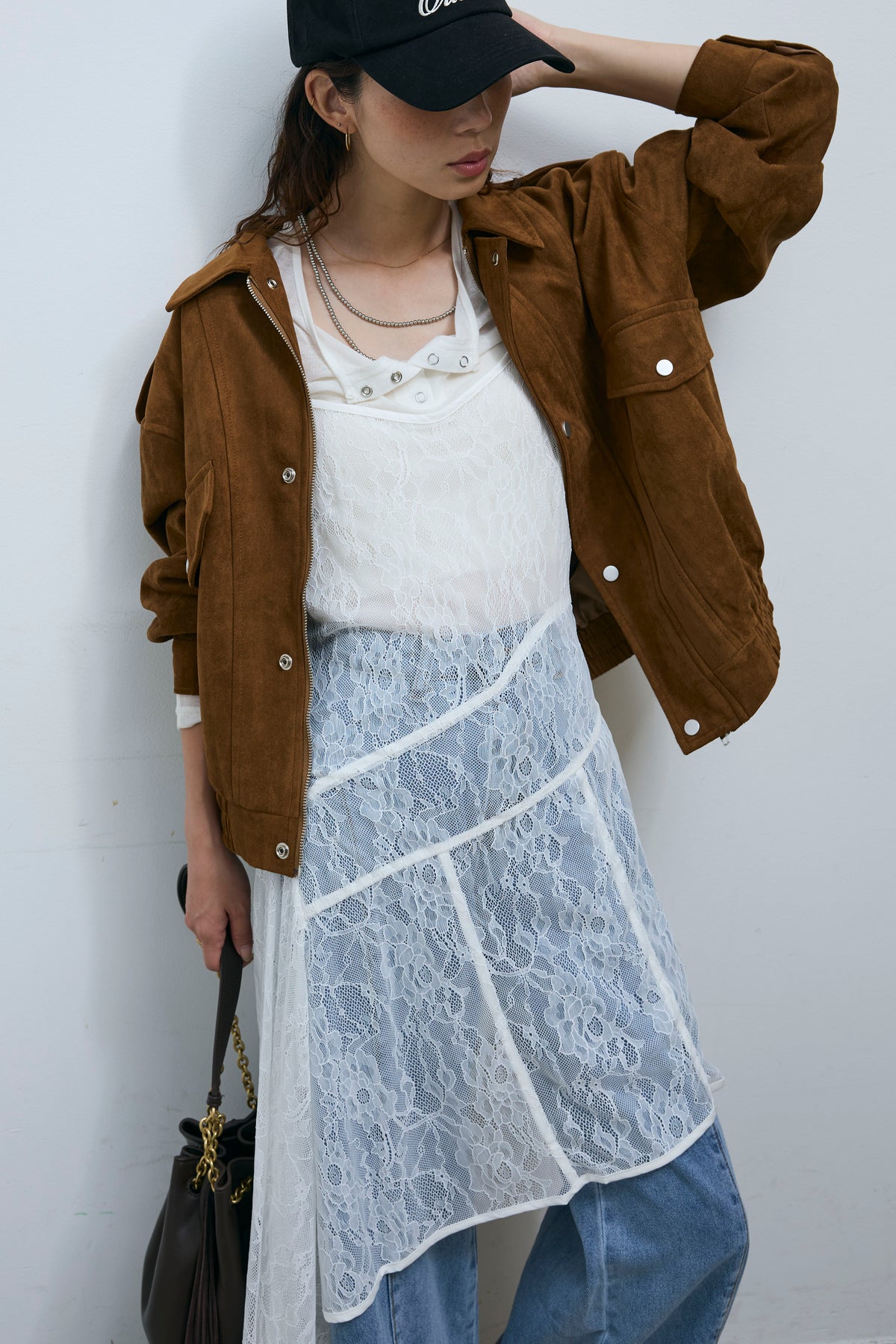 [予約/SET]エポーレット付きスウェードライクブルゾン+サイド切り替えデニム(2set)