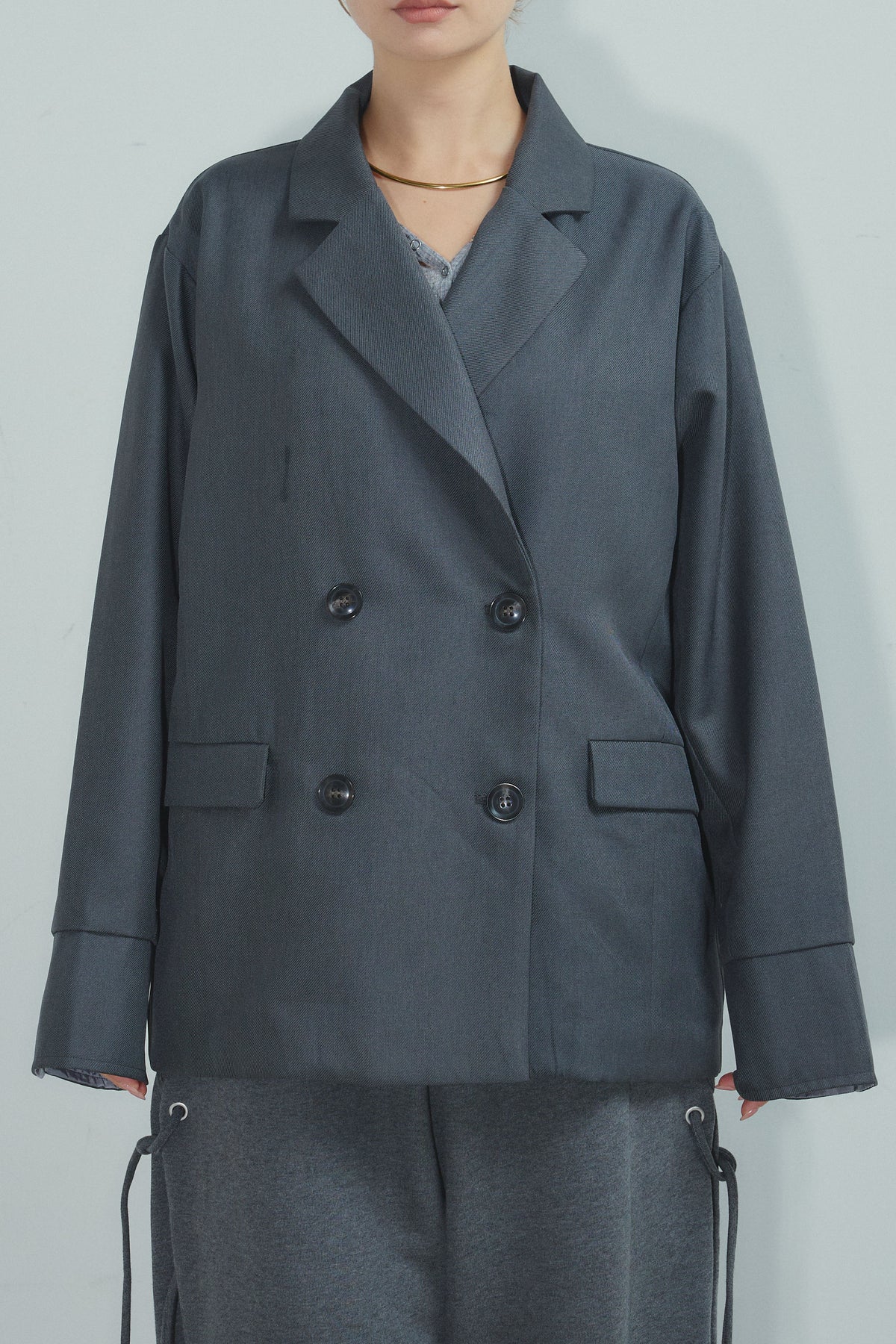 [予約/SET]ヘザーツイルダブルジャケット+サイドレースアップスウェットパンツ(2set)