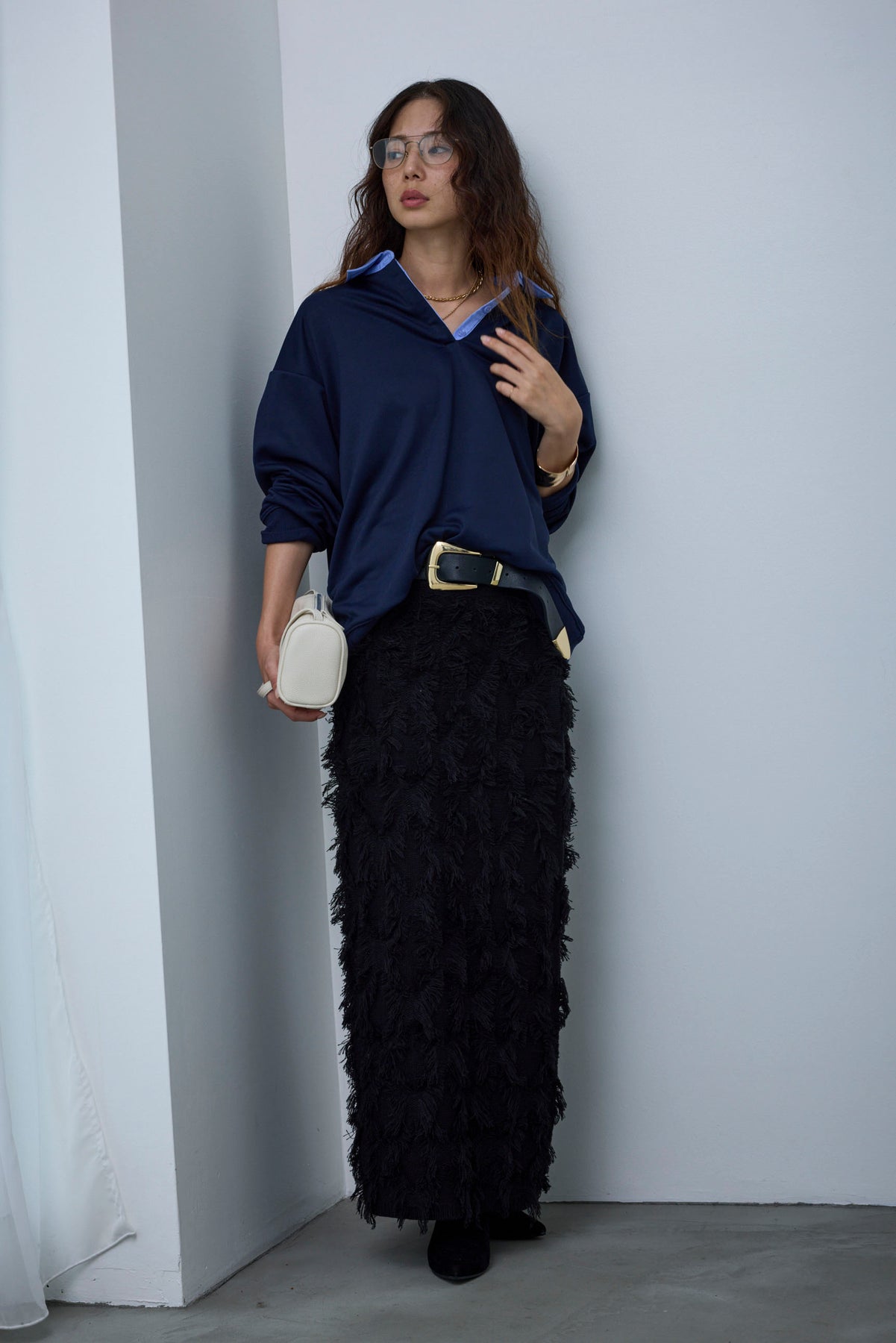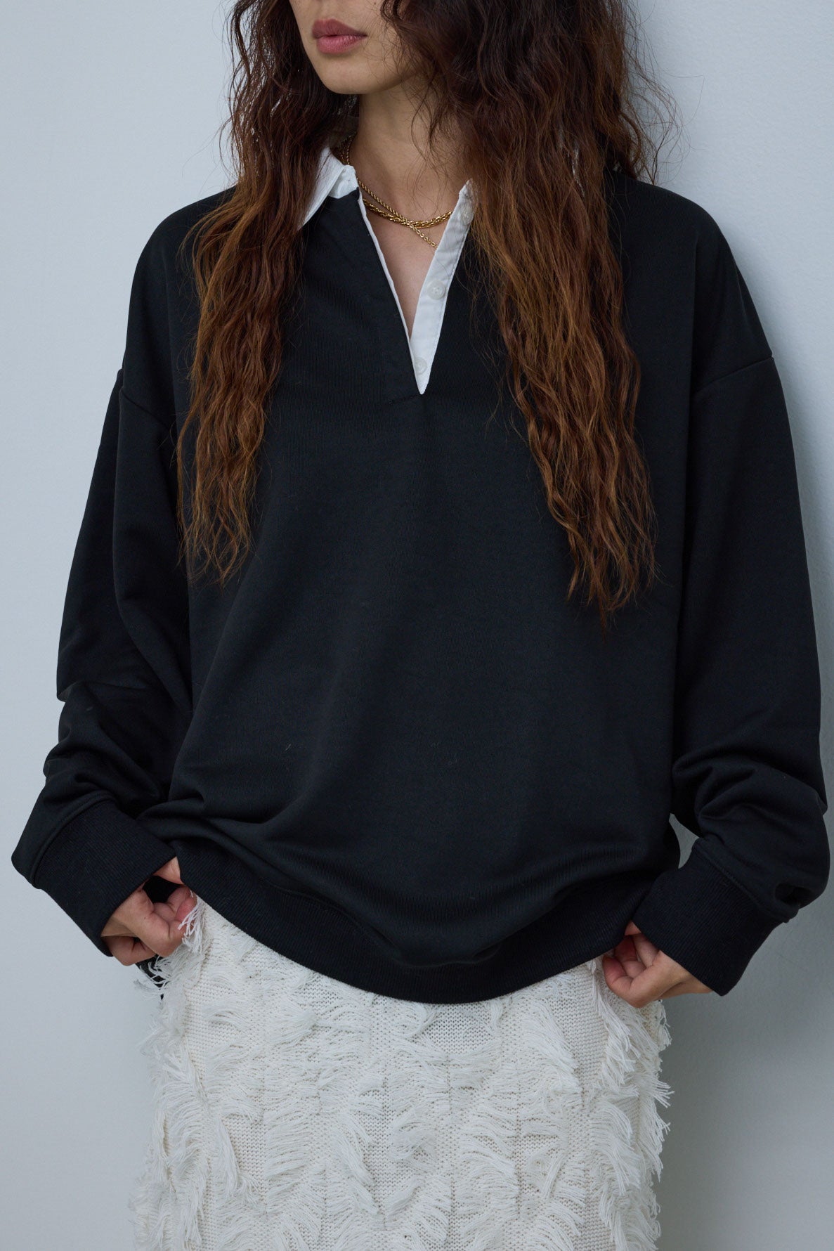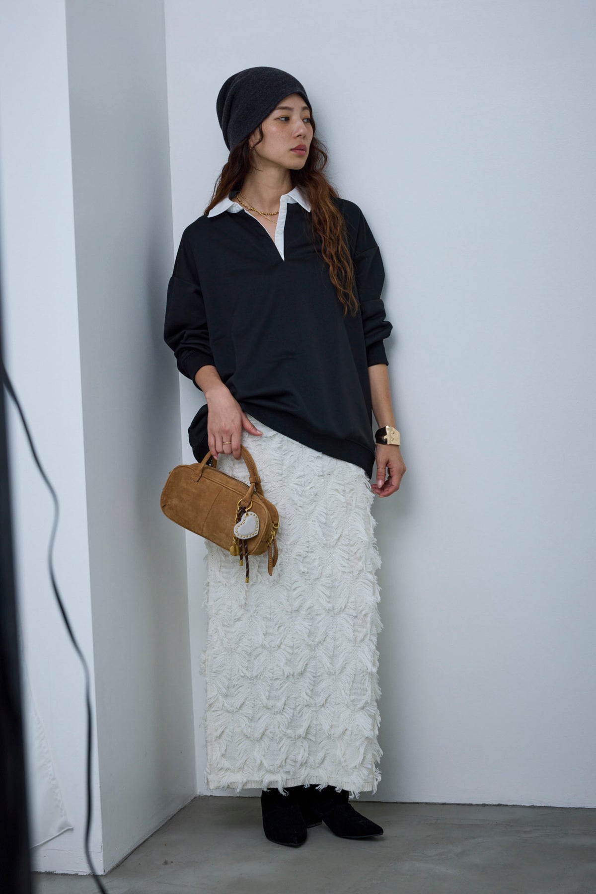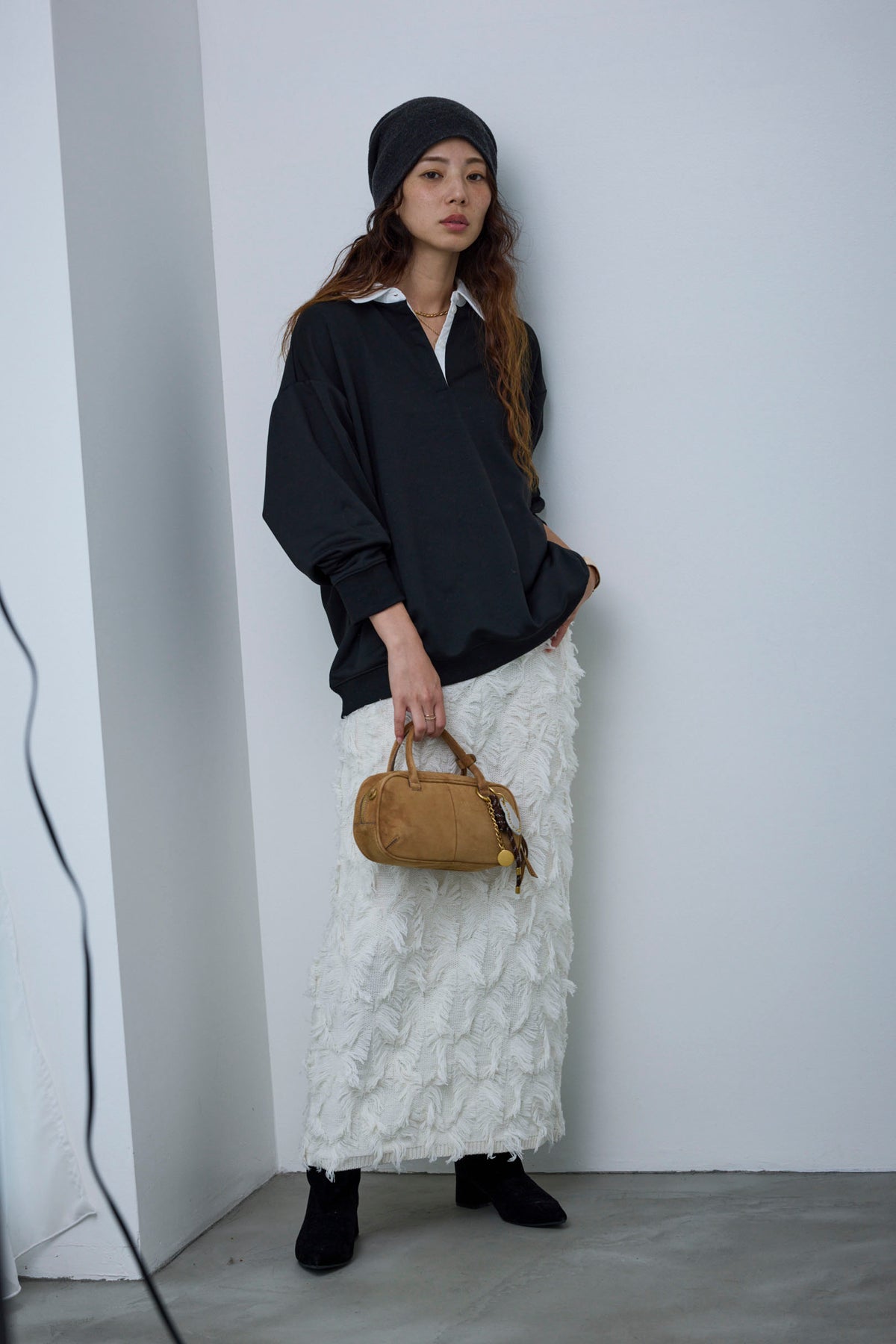[予約/SET]プレッピースウェットPO+カットフリンジニットタイトスカート(2set)