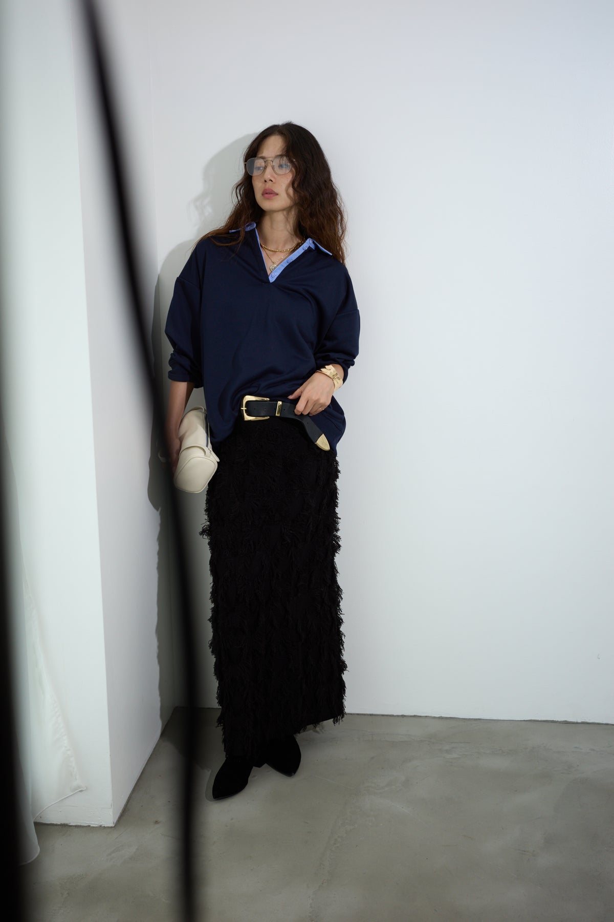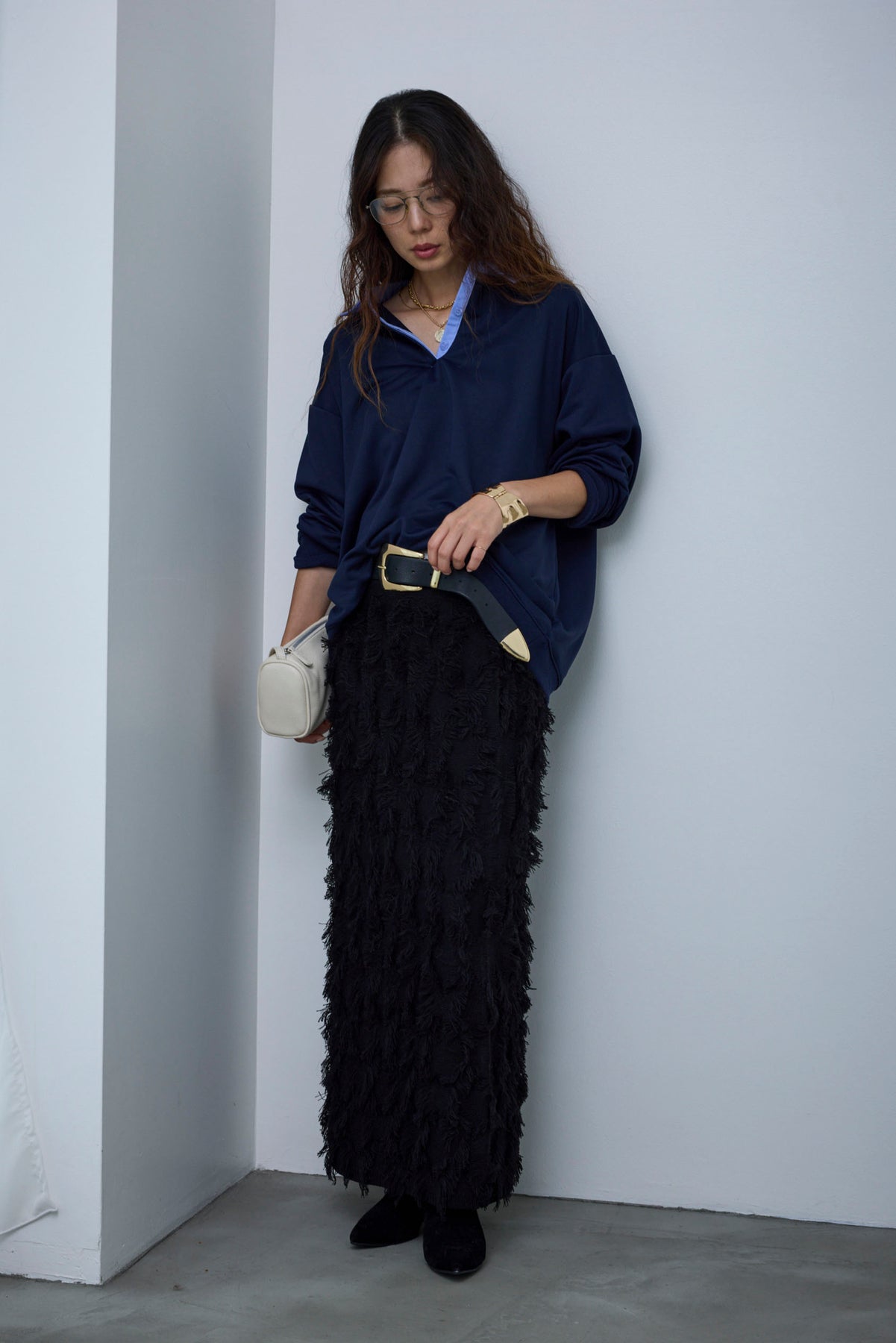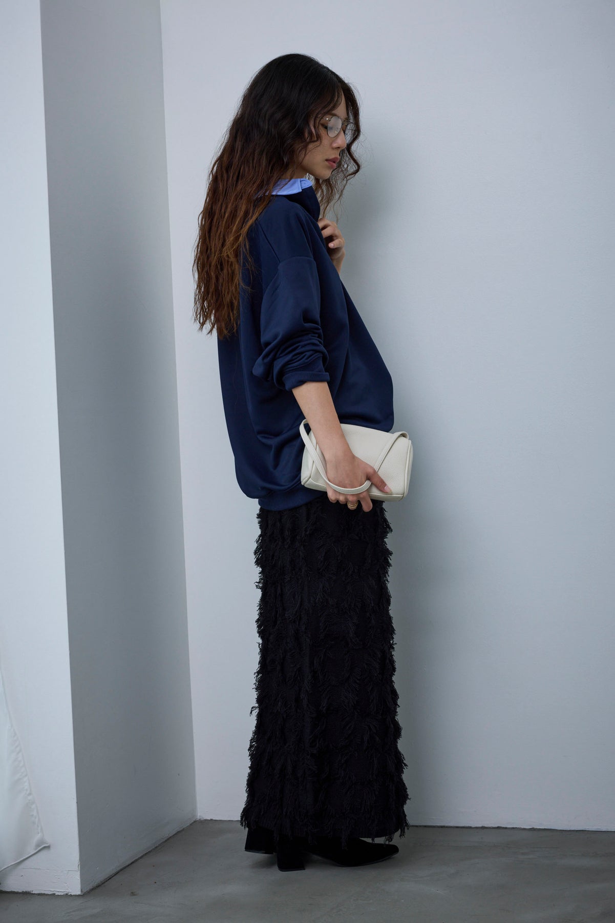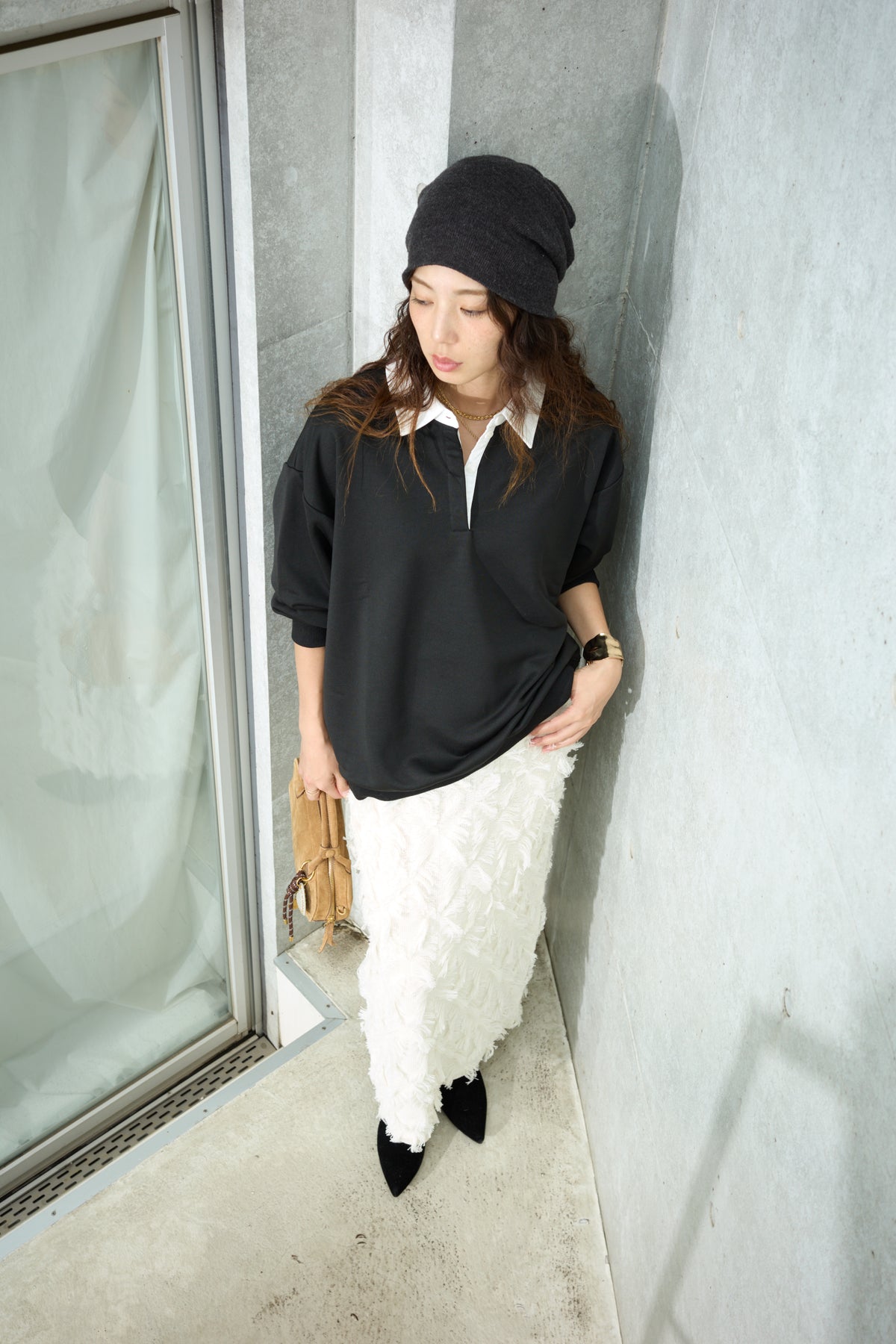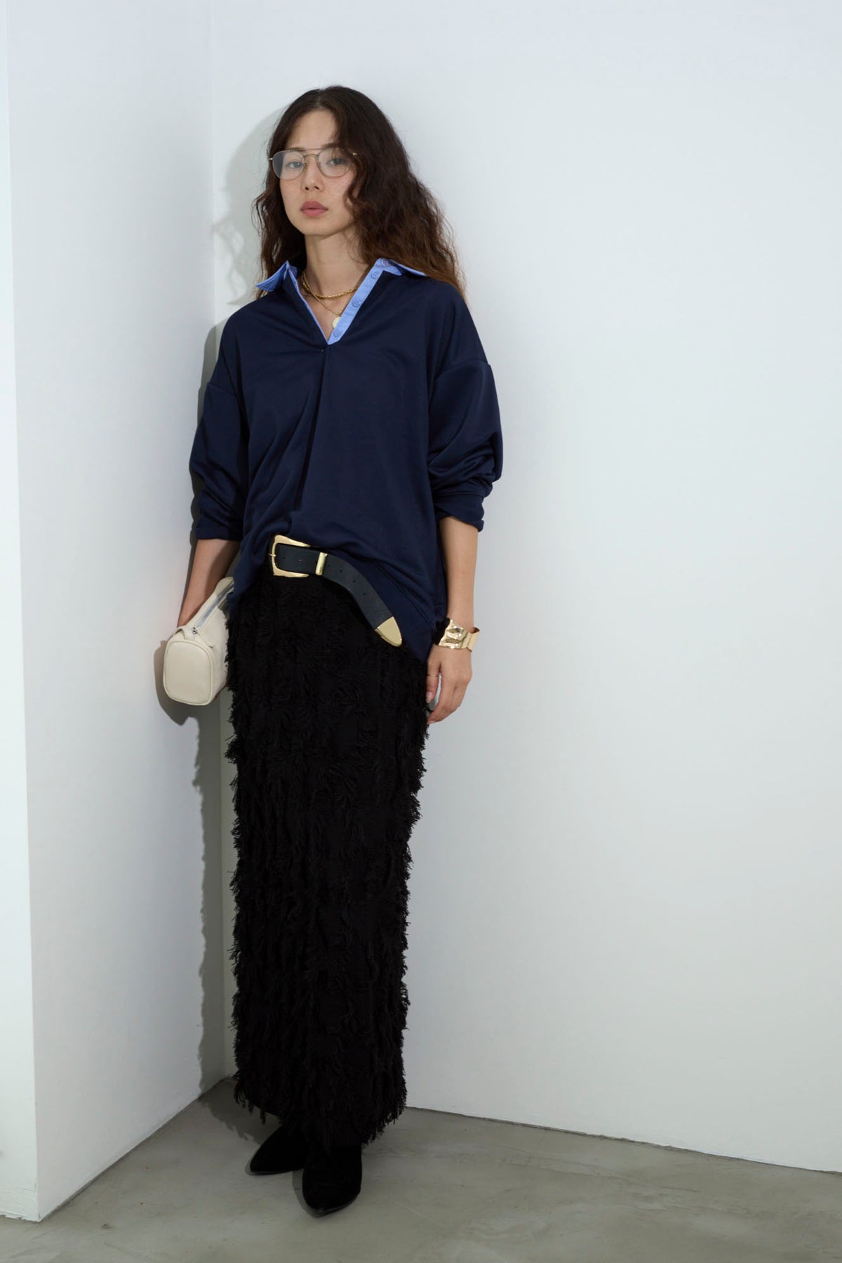 [予約/SET]プレッピースウェットPO+カットフリンジニットタイトスカート(2set)