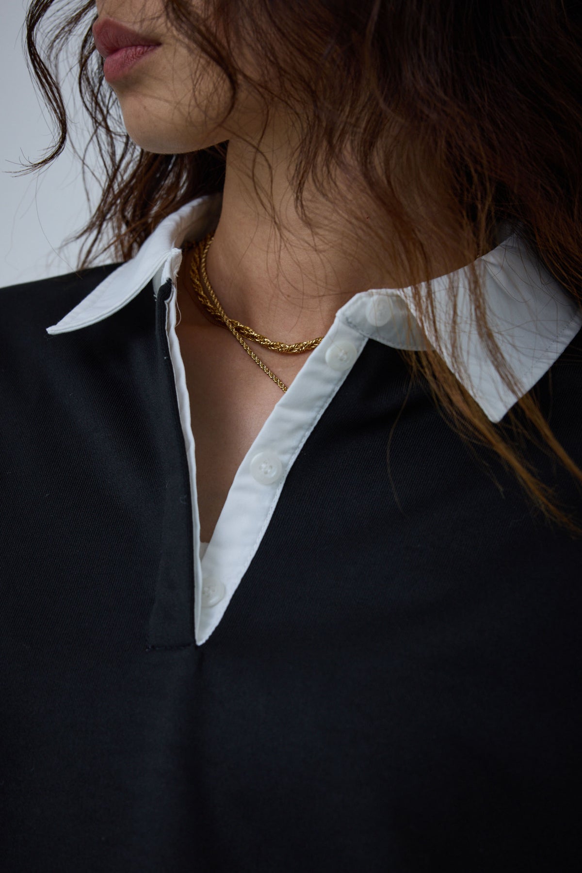 ・素材:本体 ポリエステル100% 襟部分 ポリエステル89% 綿11% リブ部分 ポリエステル72% 綿23% レーヨン3% ポリウレタン2%