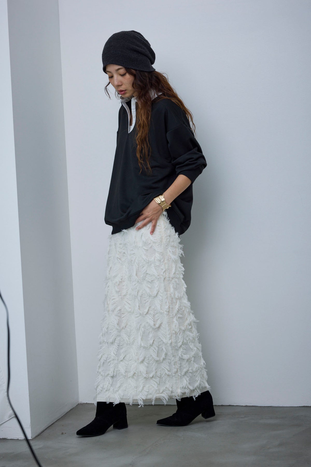 ◆ カットフリンジニットタイトスカート