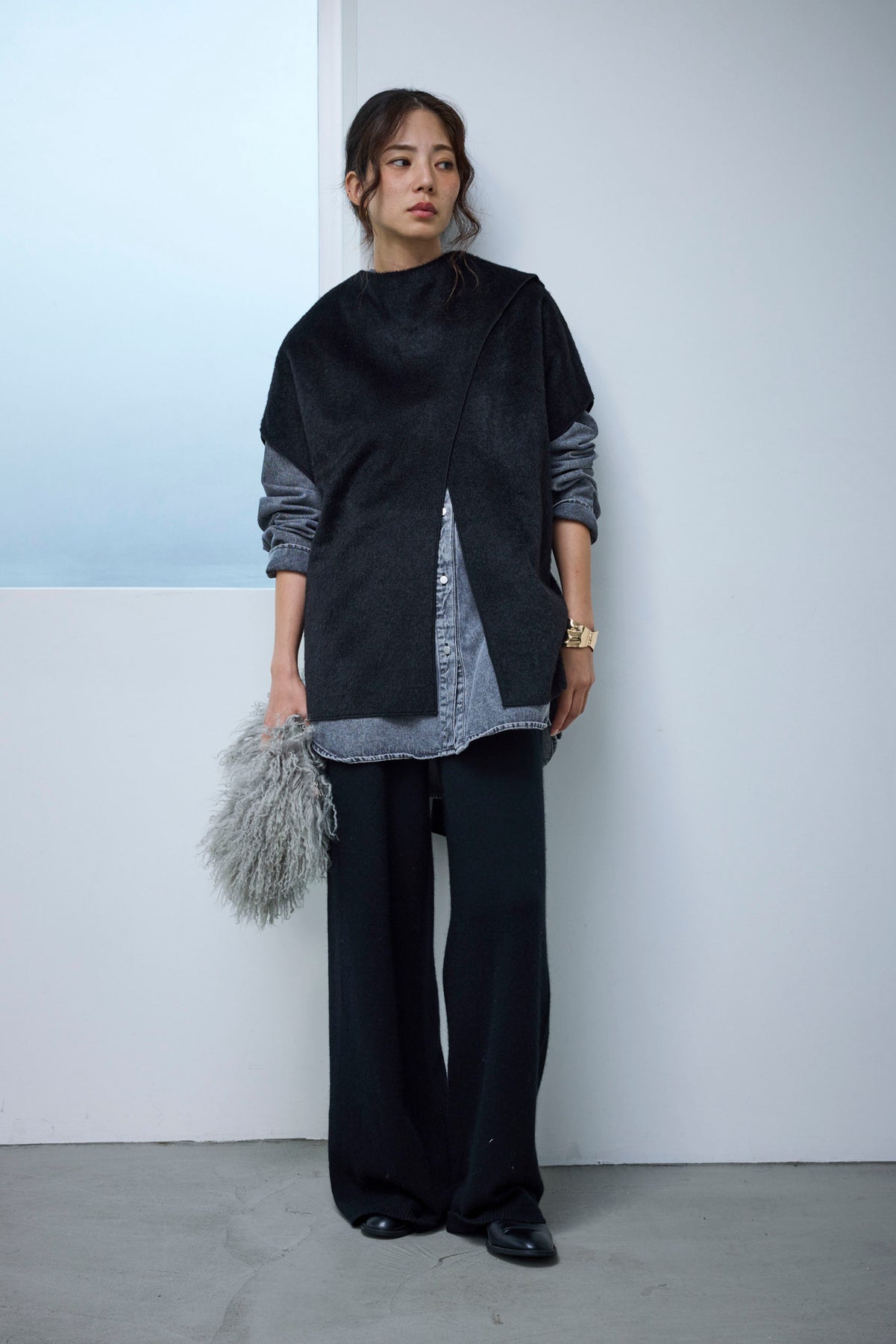 [予約/SET]ラップシャギーポンチョ+リラックスニットパンツ(2set)