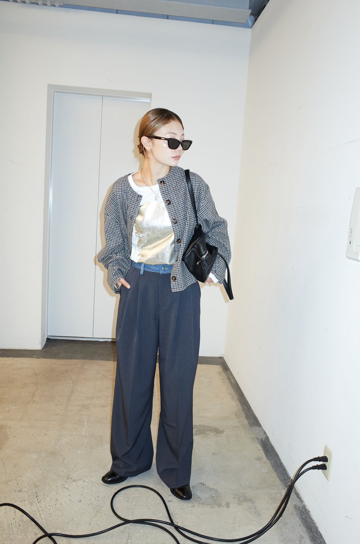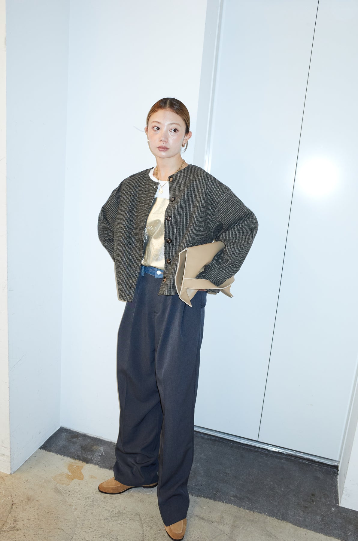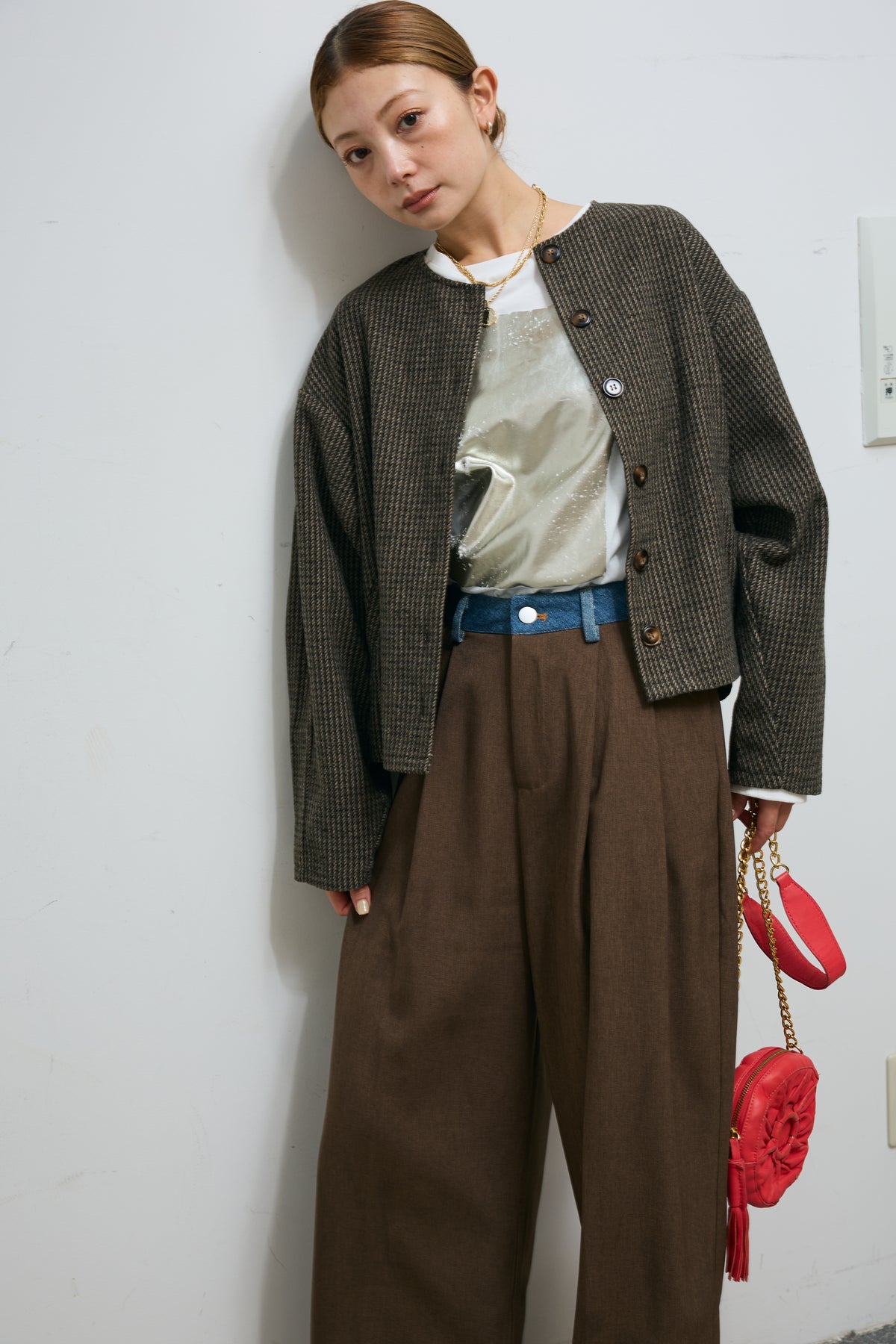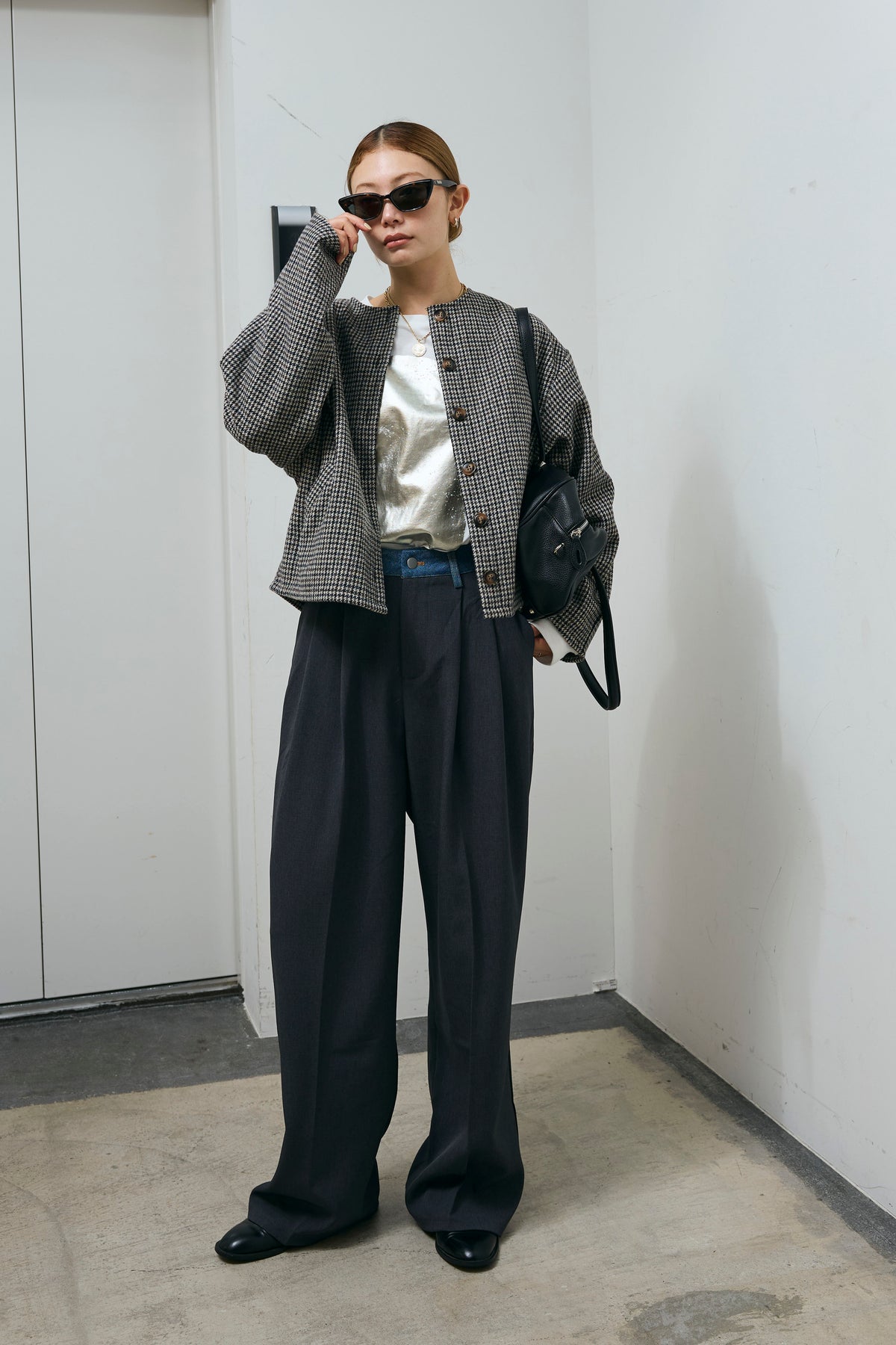 [予約/SET]ガンクラブチェックノーカラーJK+ウエスト配色タックワイドパンツ(2set)