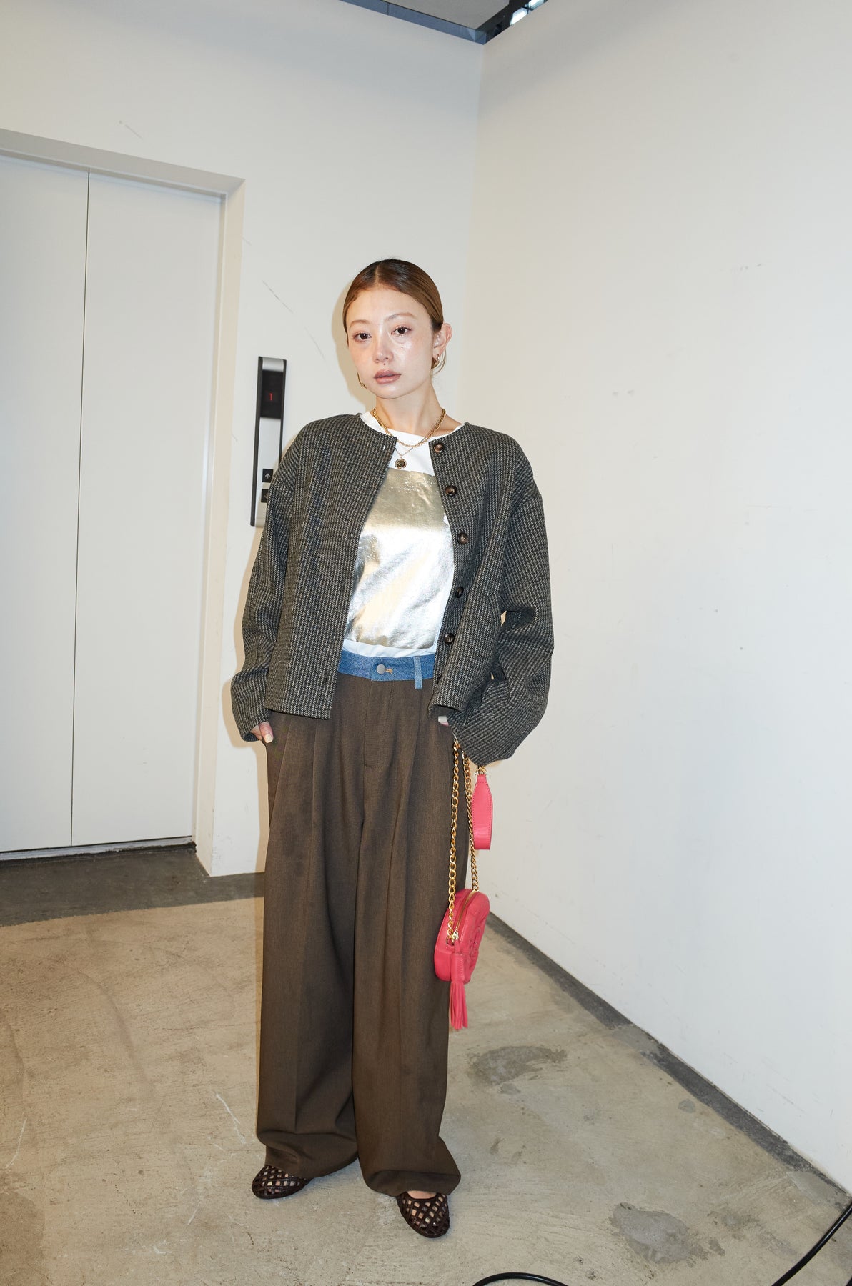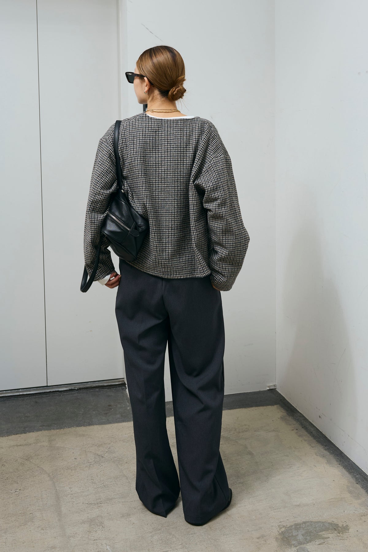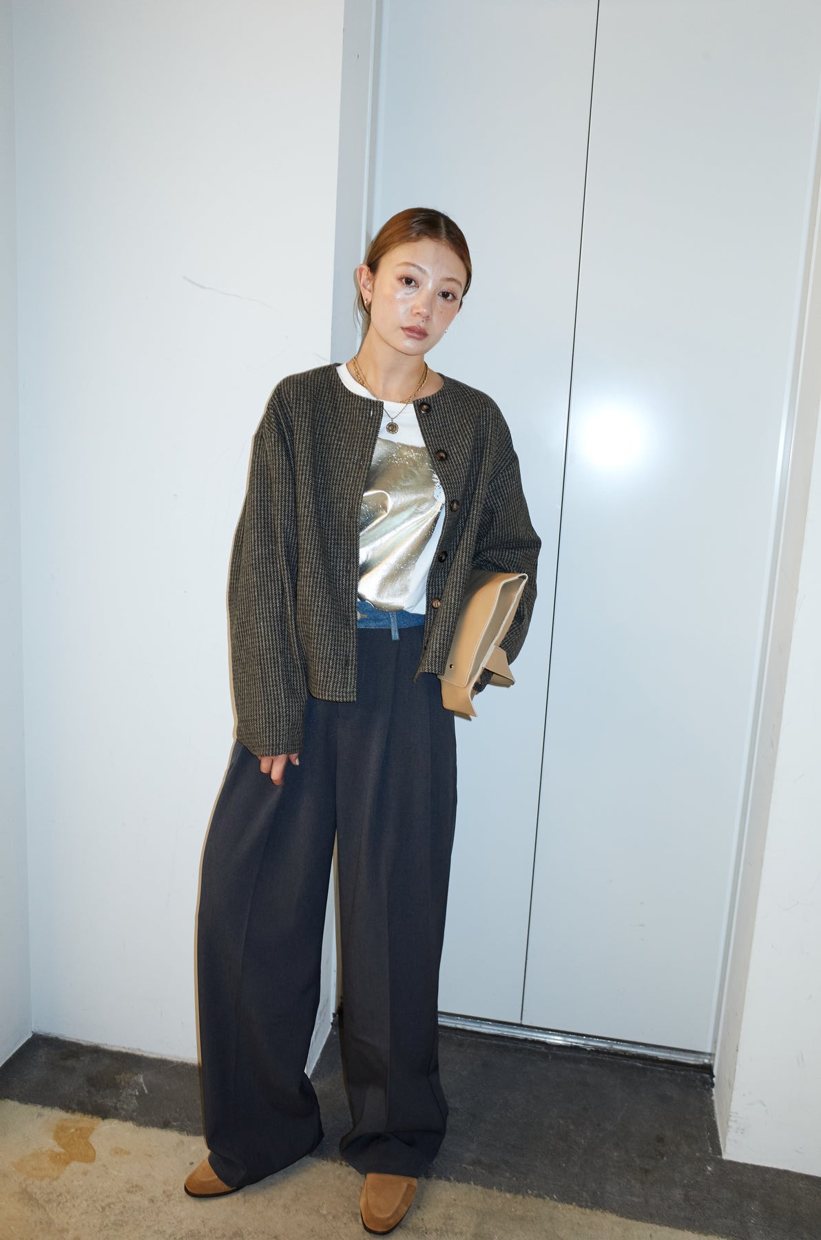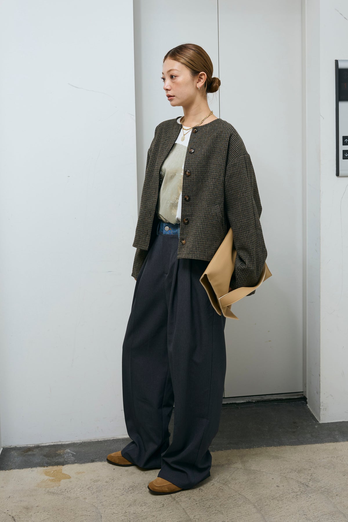 [予約/SET]ガンクラブチェックノーカラーJK+ウエスト配色タックワイドパンツ(2set)