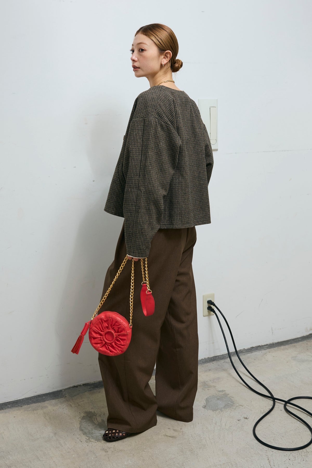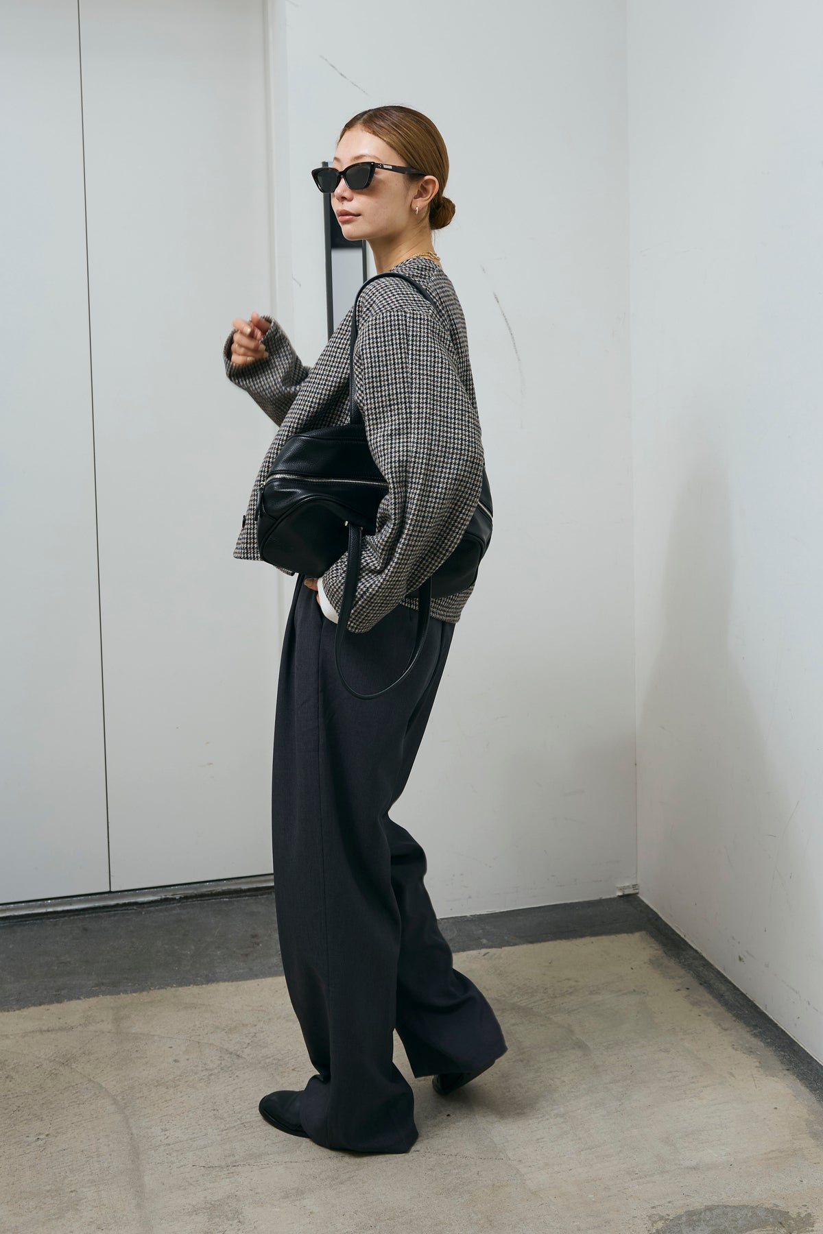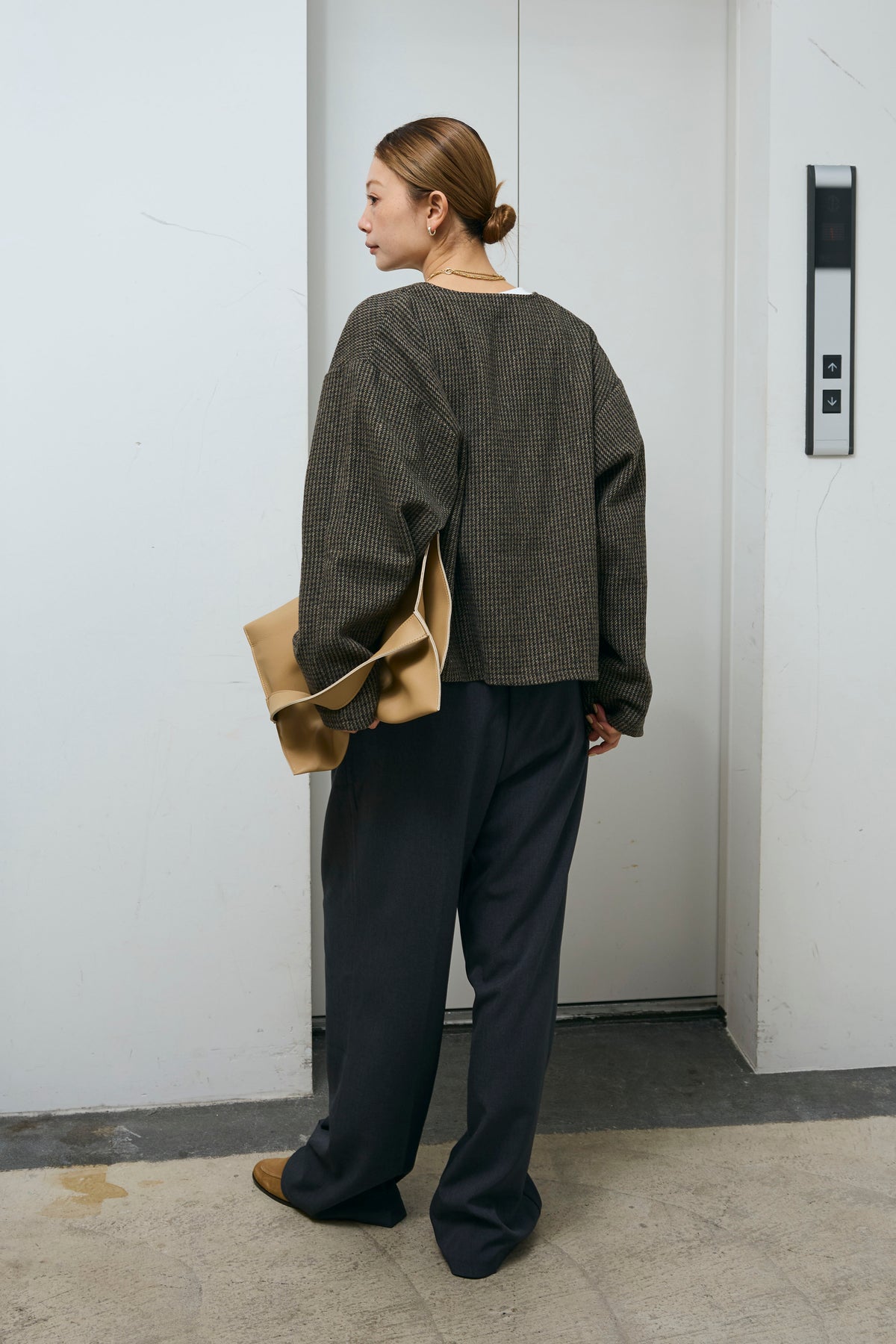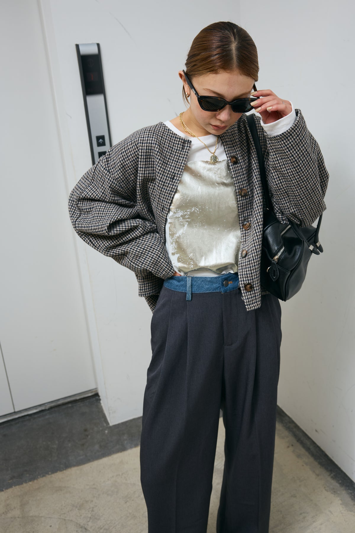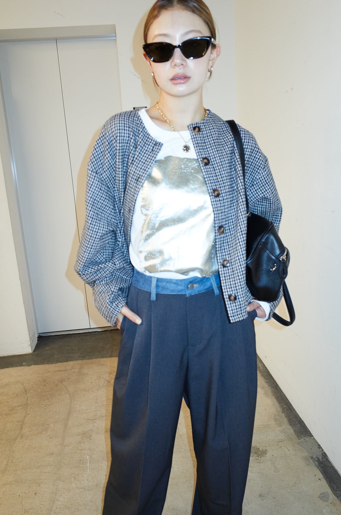 [予約/SET]ガンクラブチェックノーカラーJK+ウエスト配色タックワイドパンツ(2set)