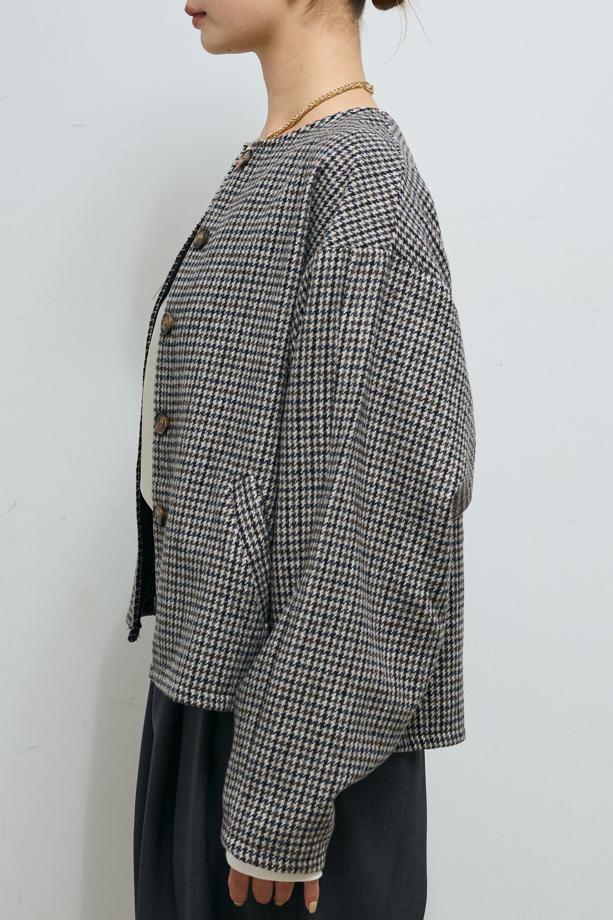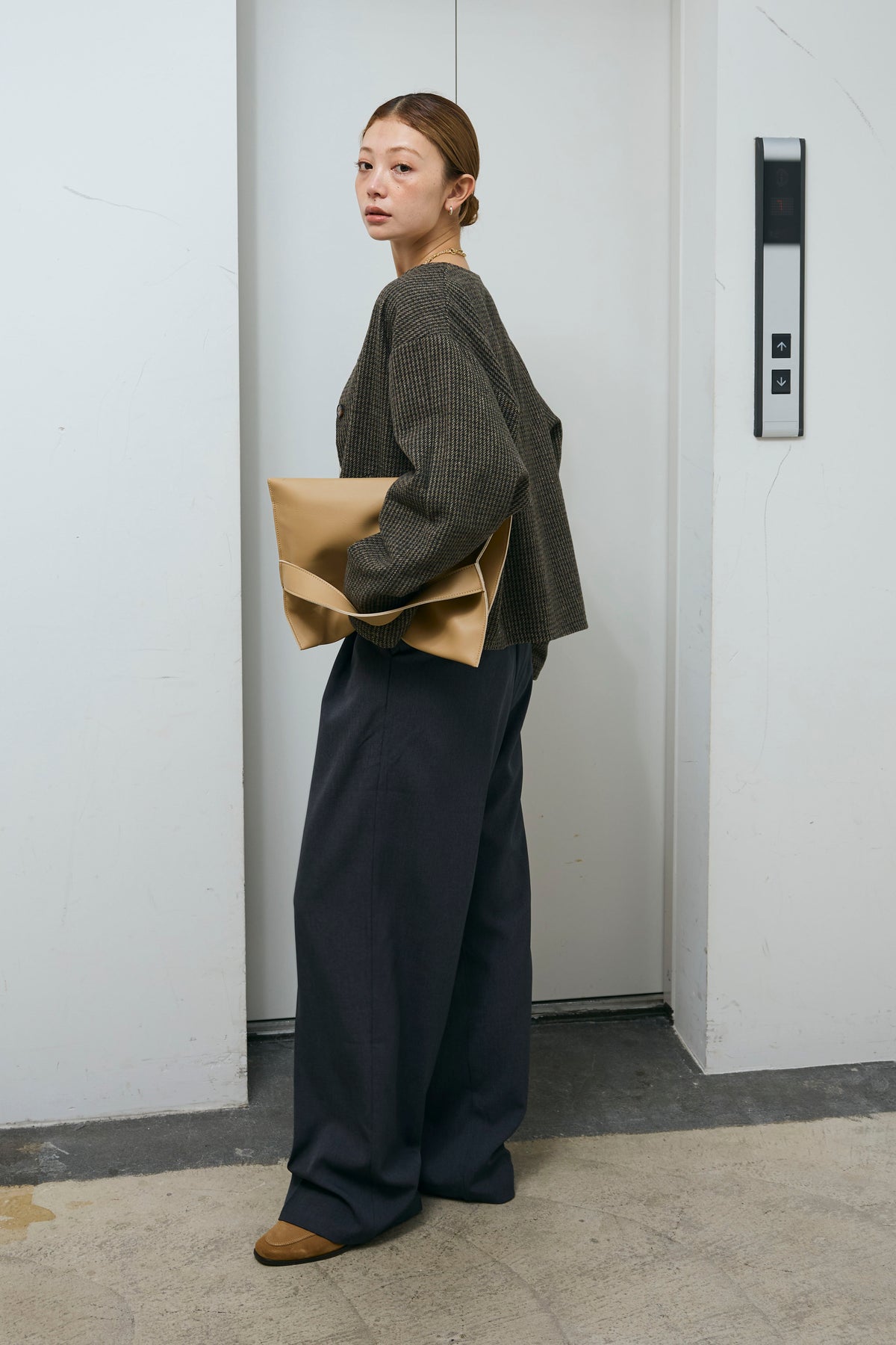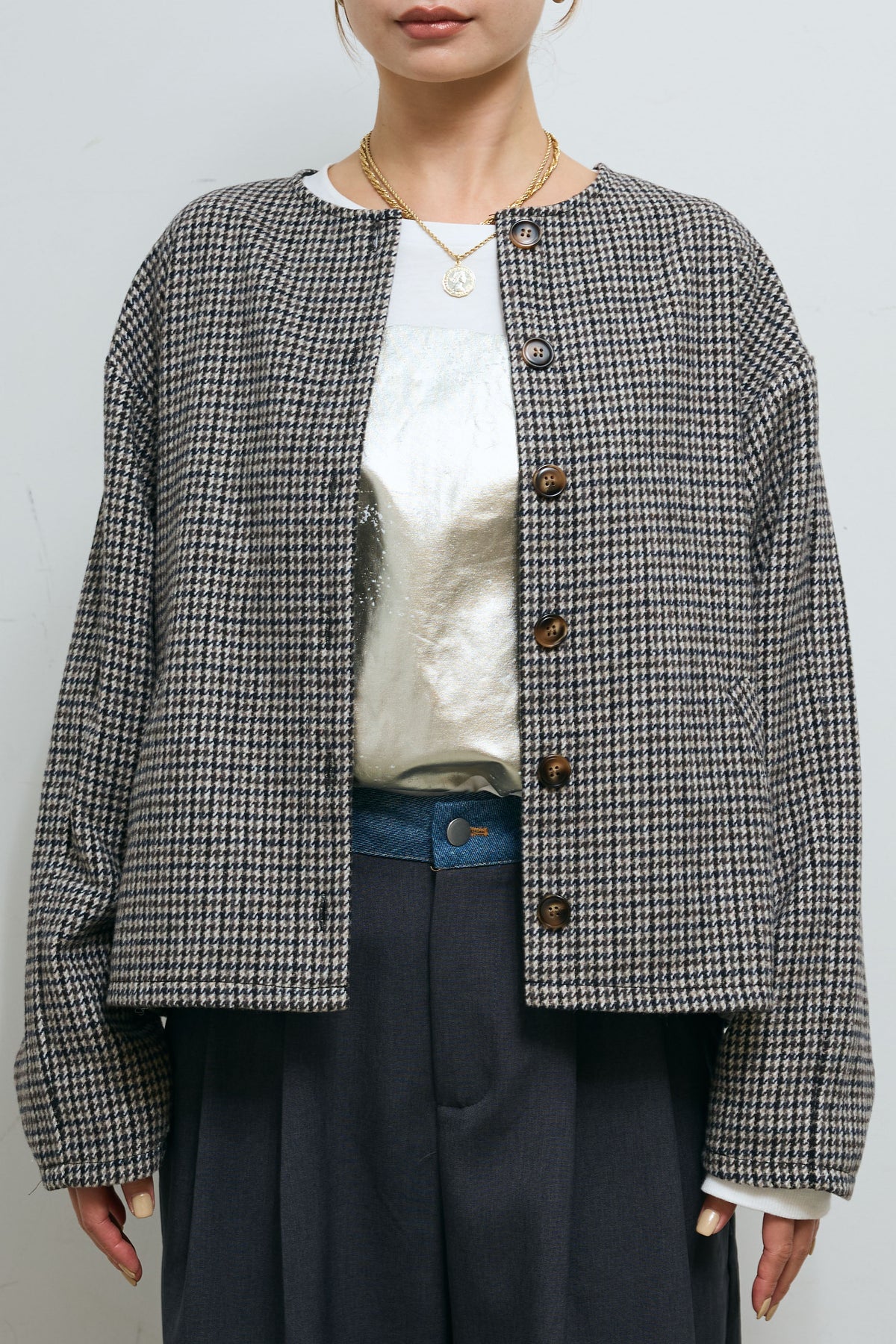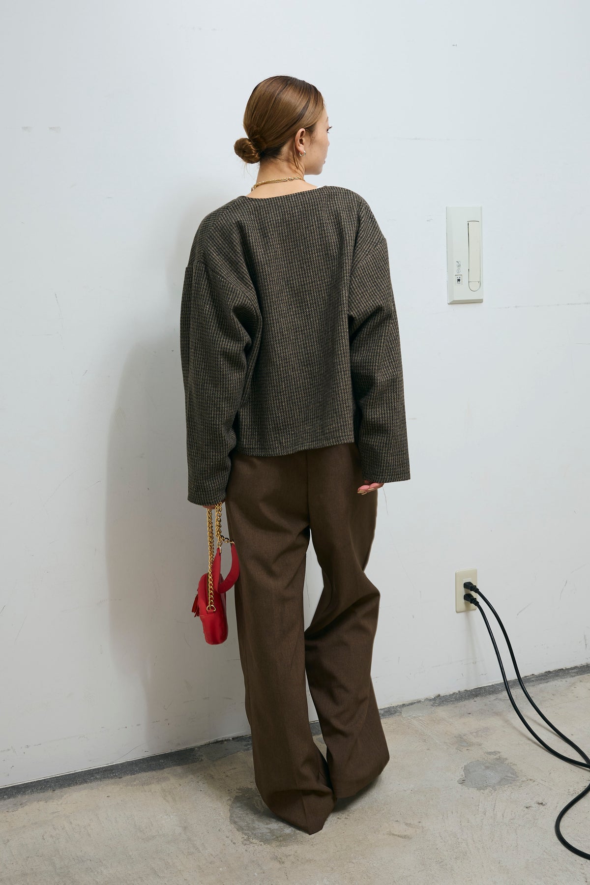 [予約/SET]ガンクラブチェックノーカラーJK+ウエスト配色タックワイドパンツ(2set)
