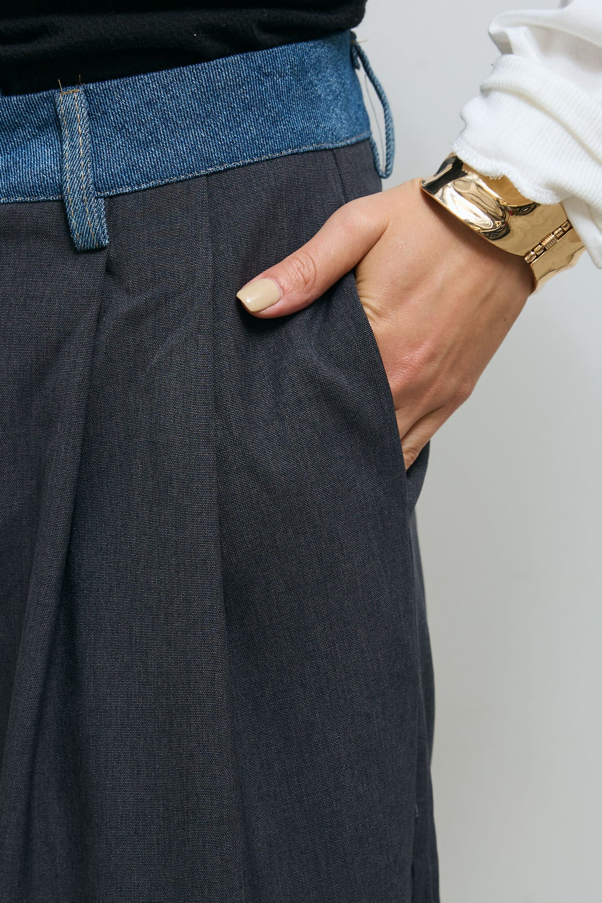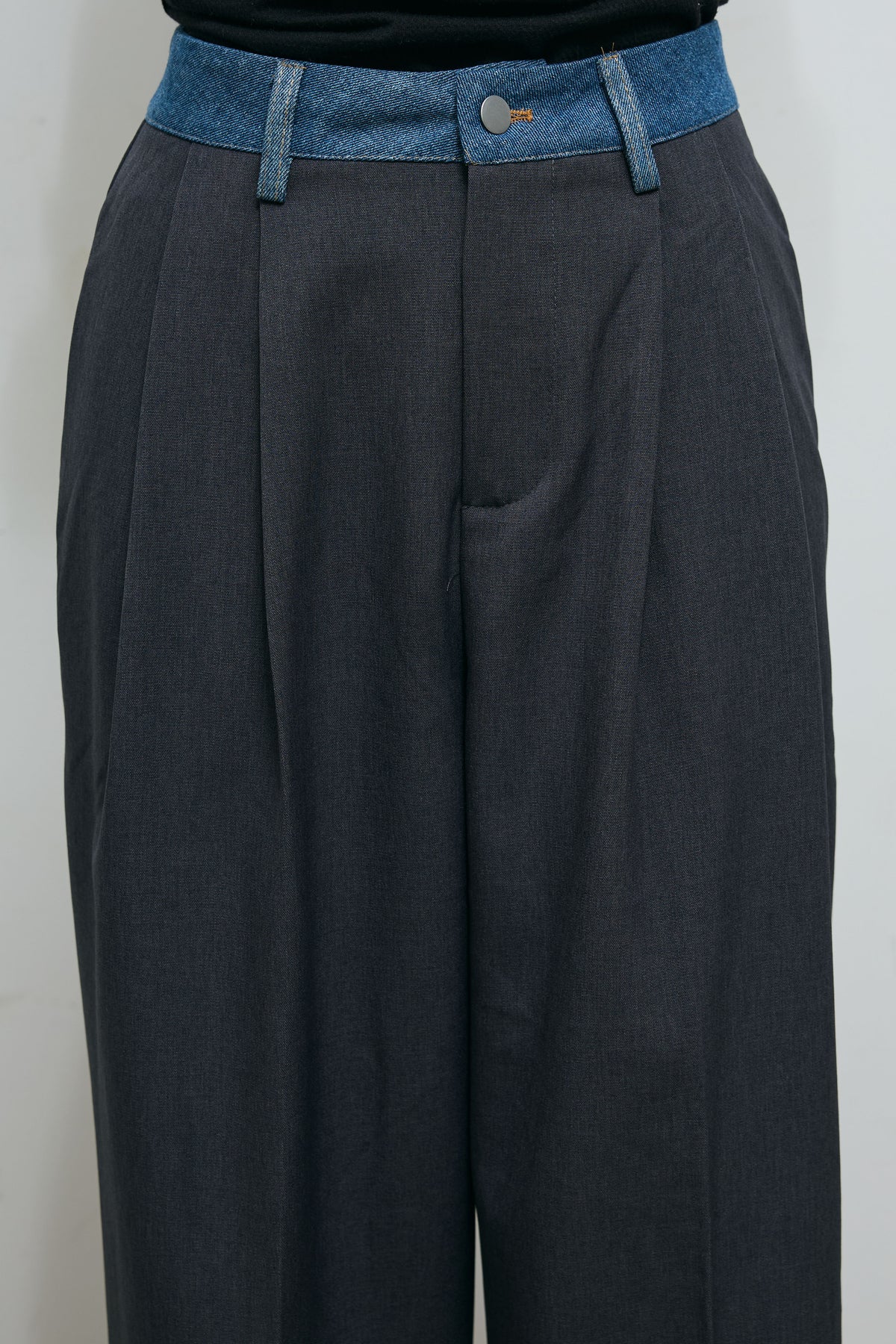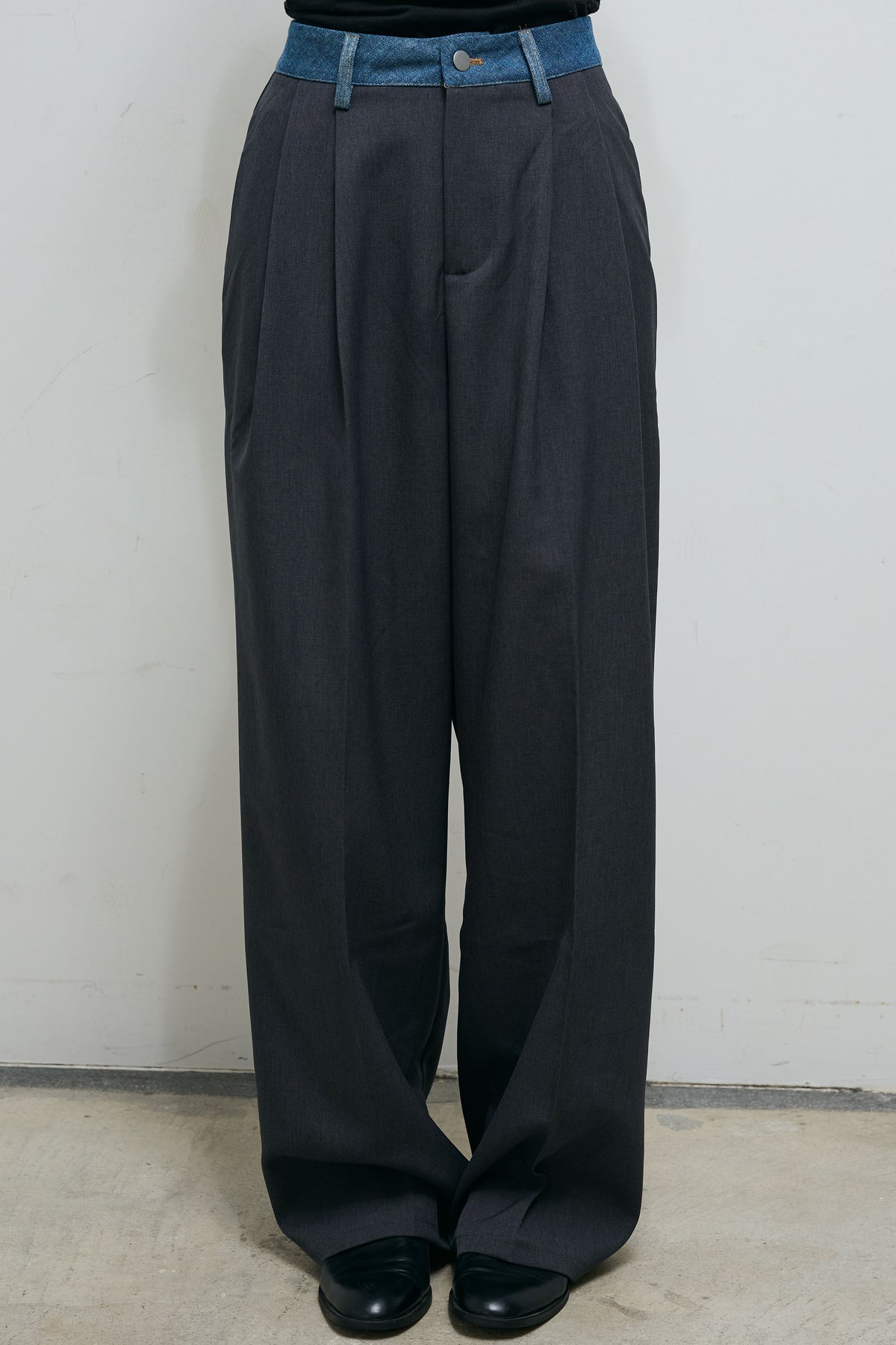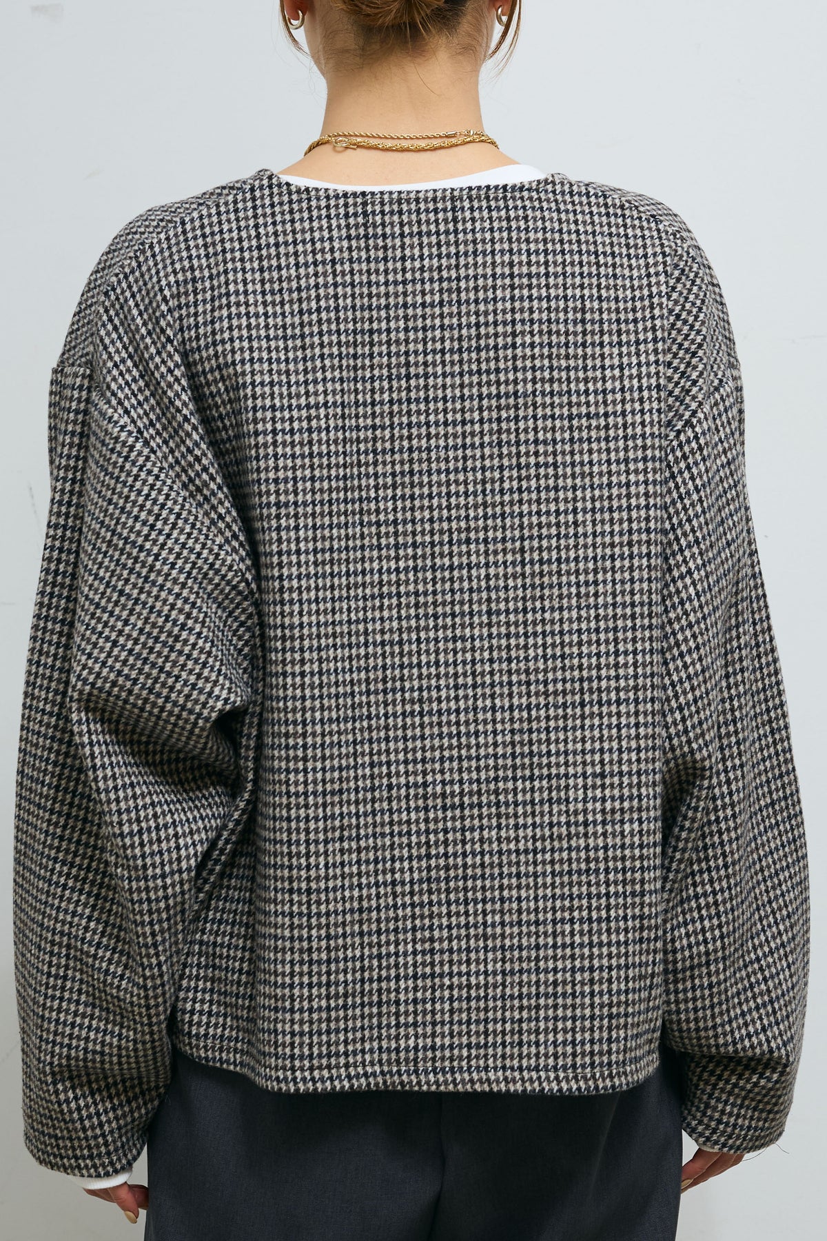 [予約/SET]ガンクラブチェックノーカラーJK+ウエスト配色タックワイドパンツ(2set)