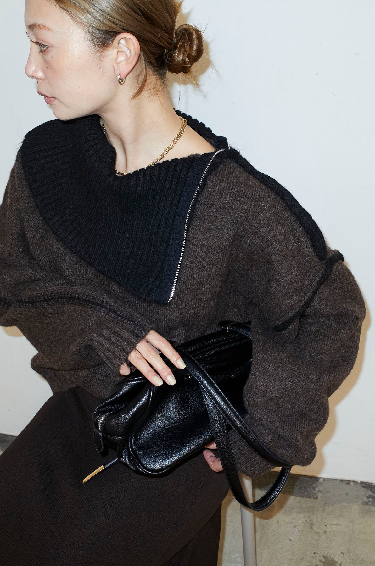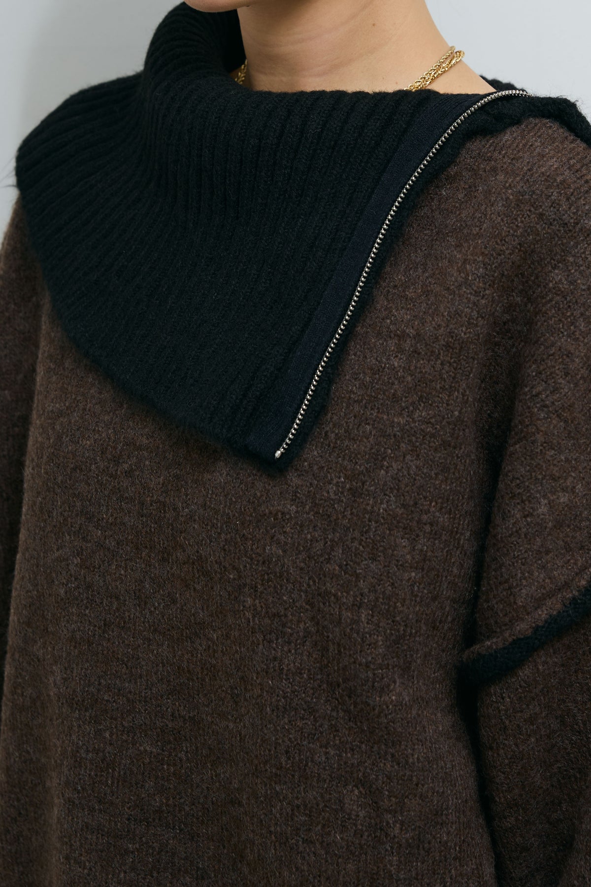 ◆ ハイネックジップデザインニットトップス
