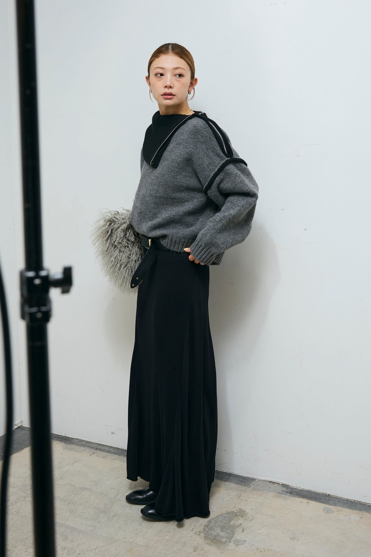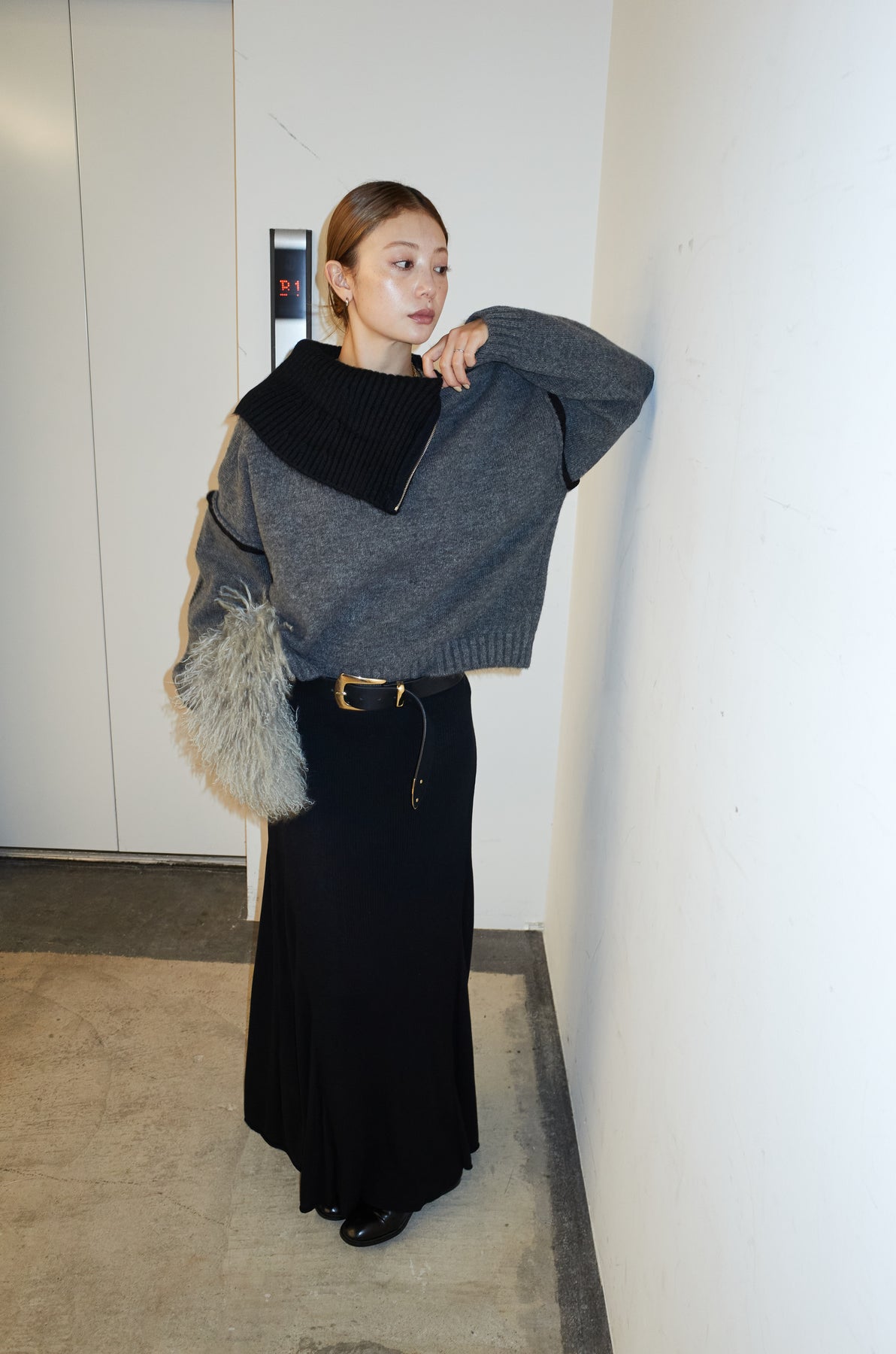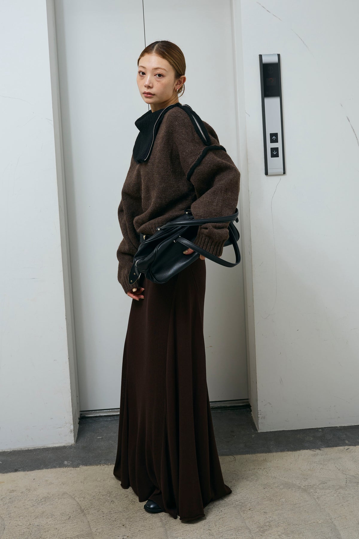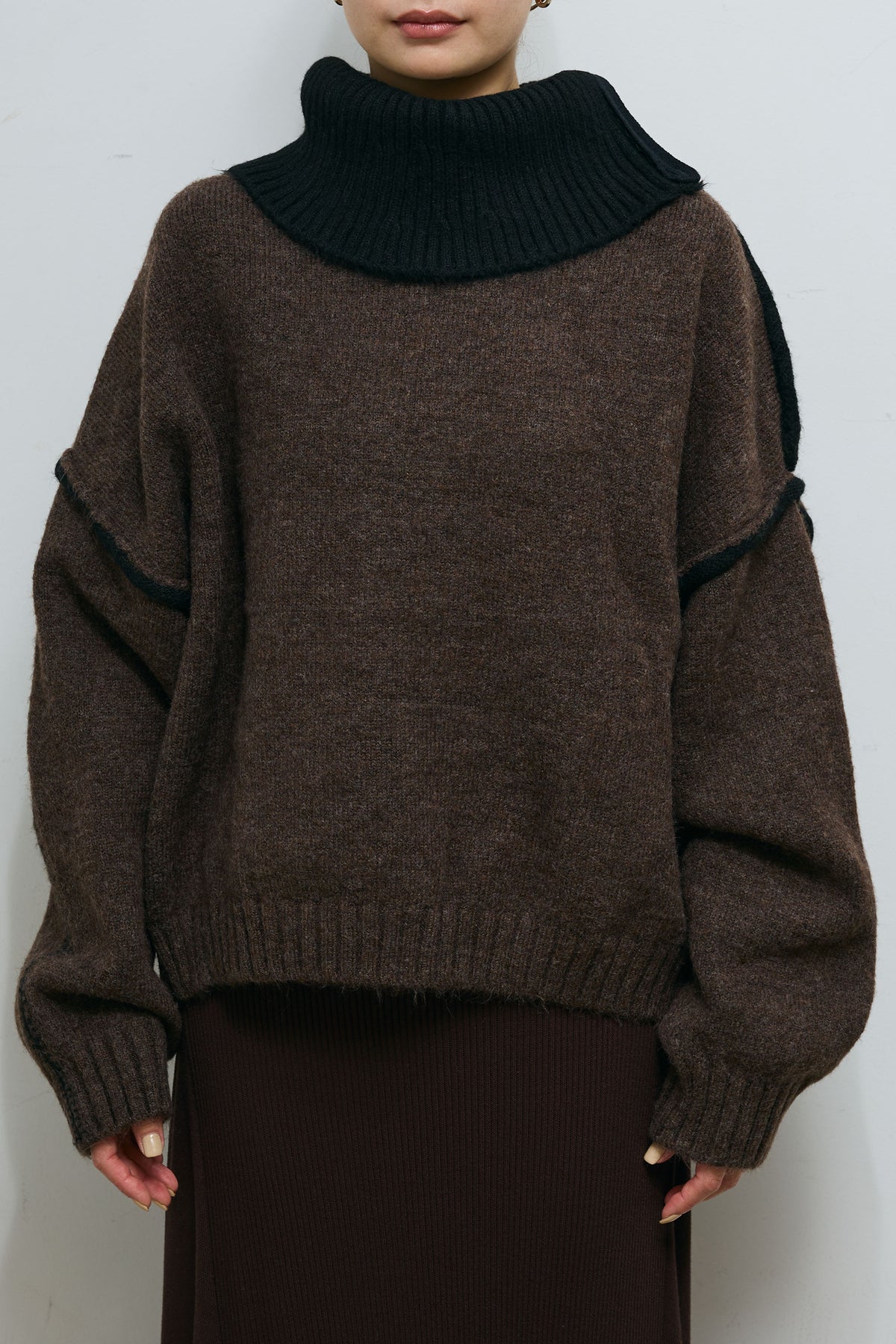 [予約/SET]ハイネックジップデザインニットトップス+切り替えリブニットロングスカート(2set)
