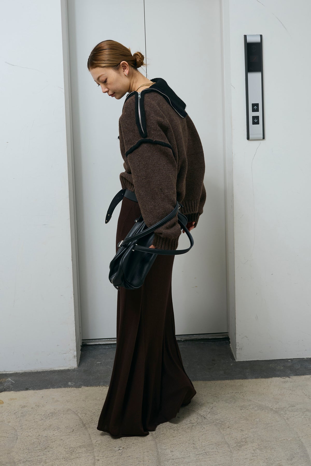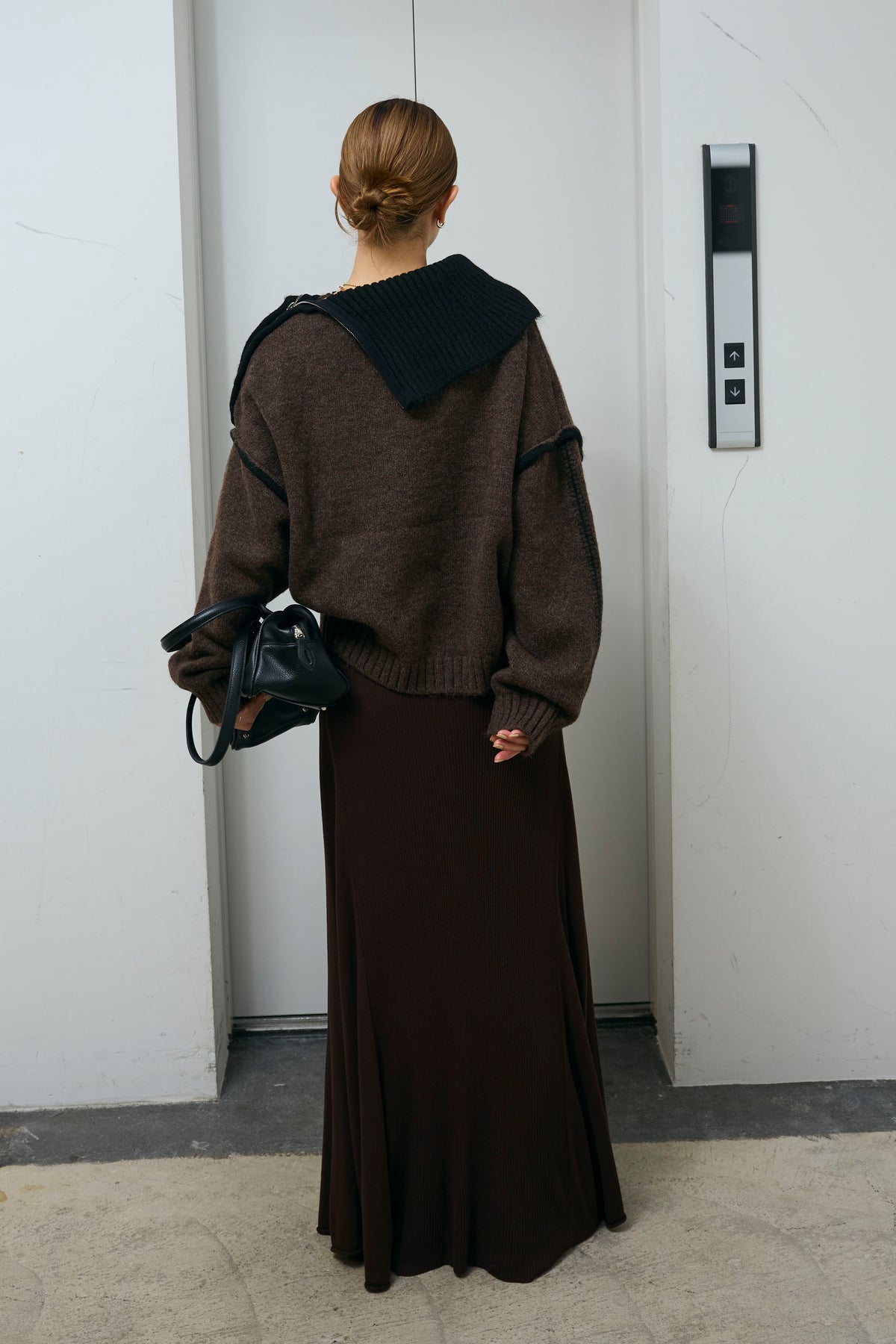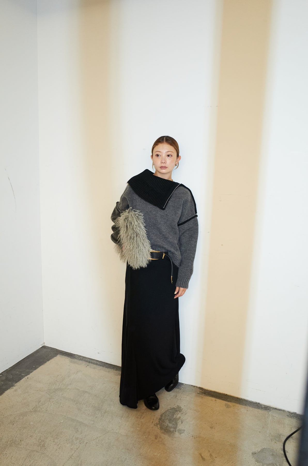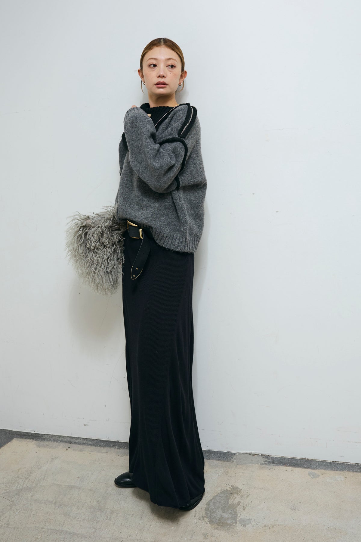 ◆ 切り替えリブニットロングスカート