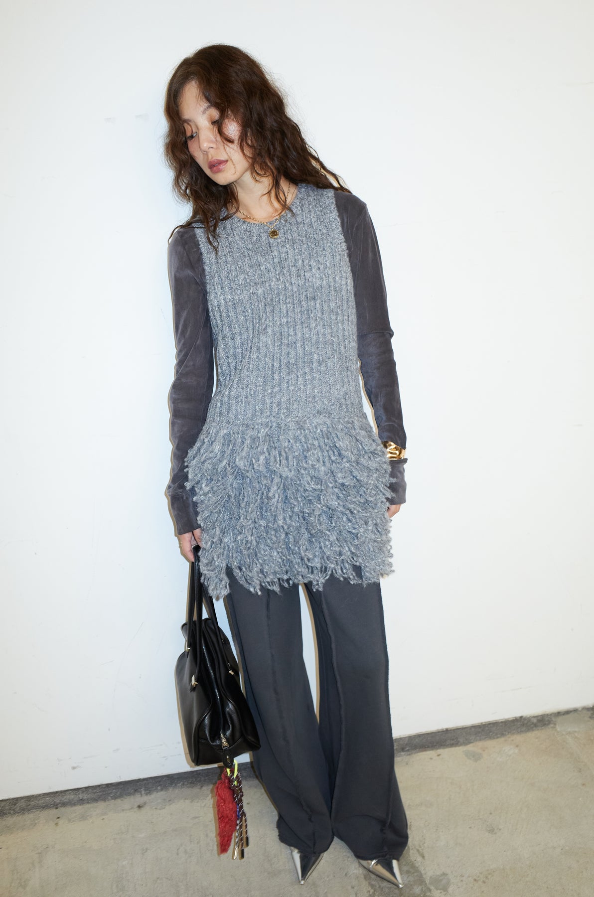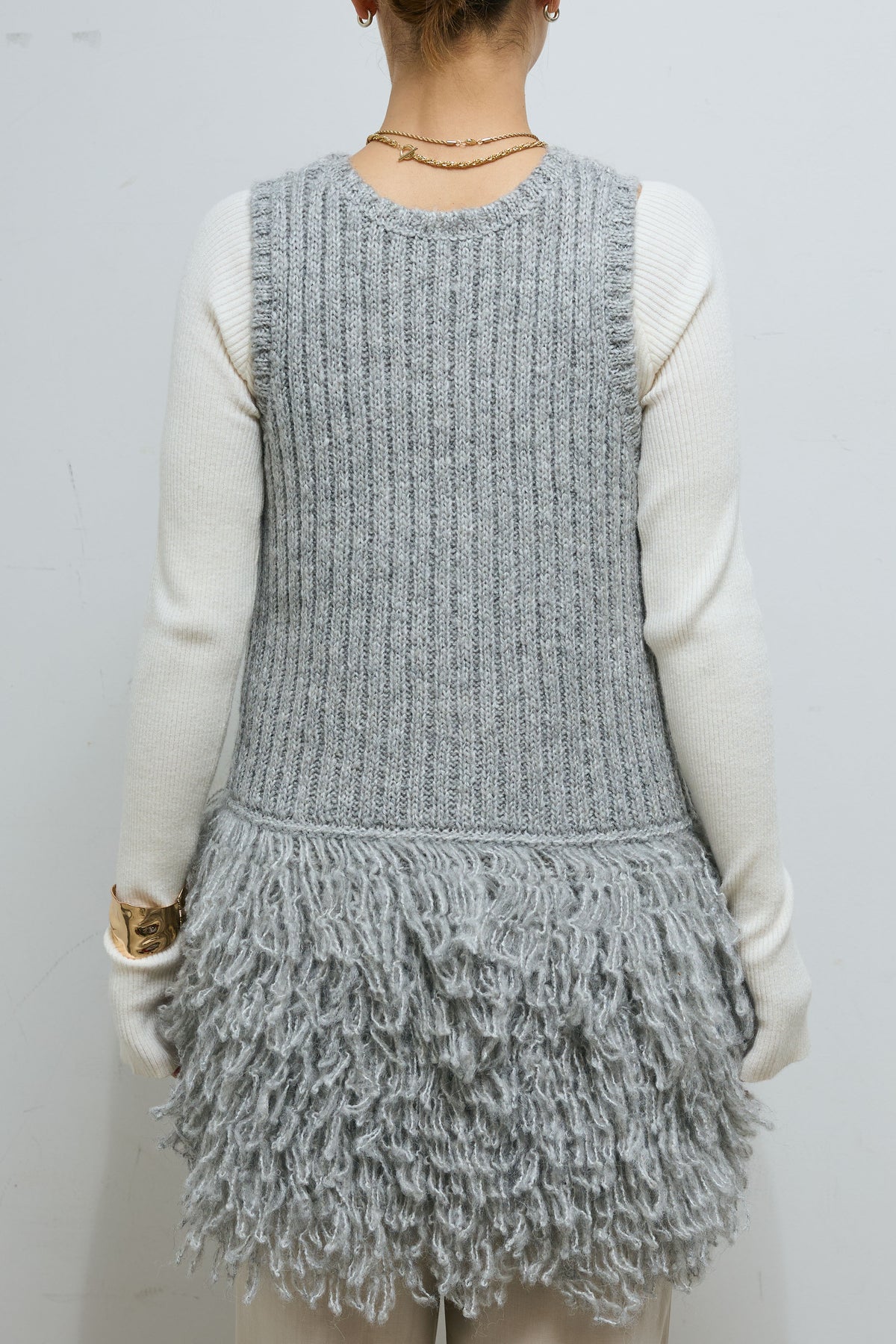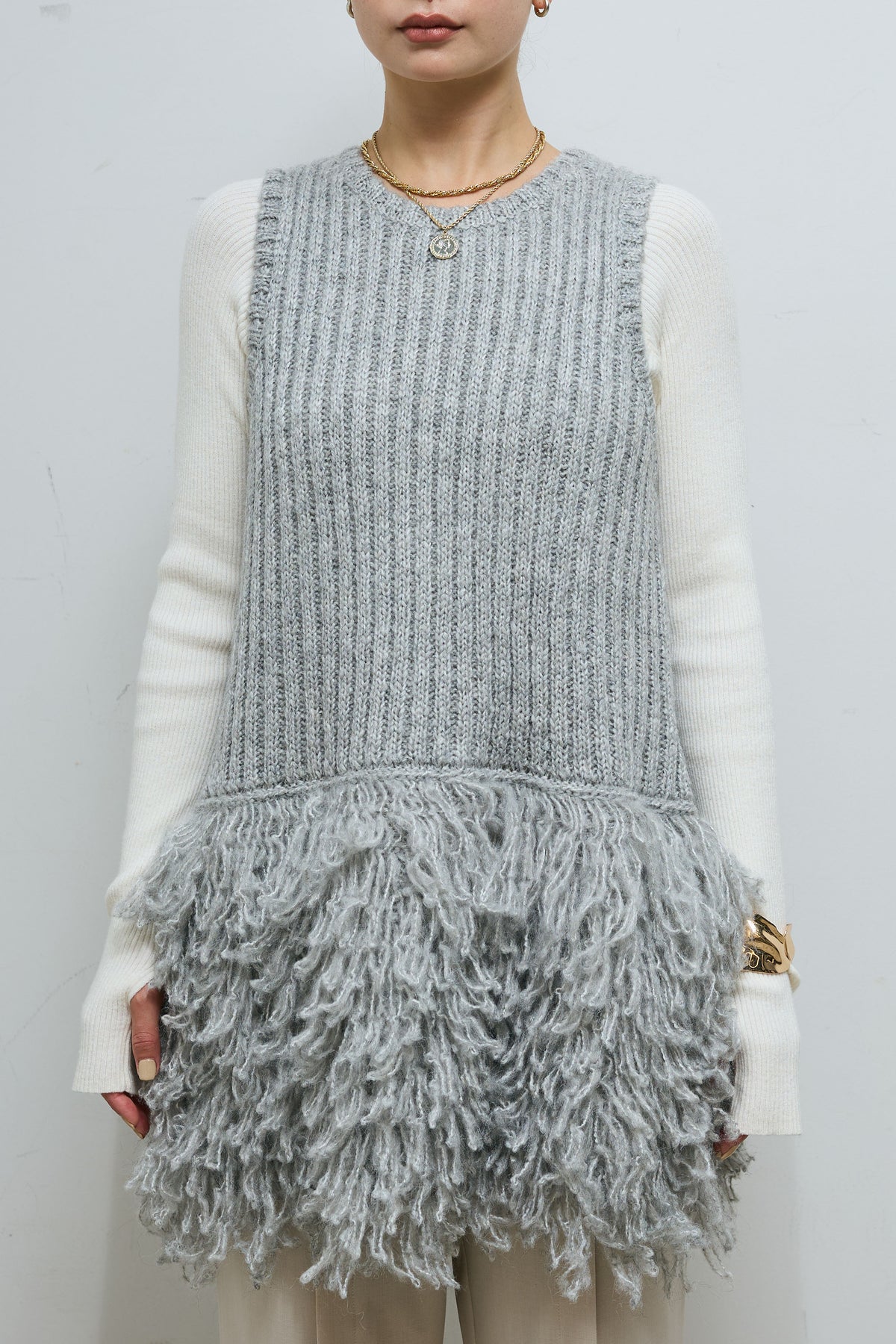 ◆ フリンジ切り替えニットチュニック