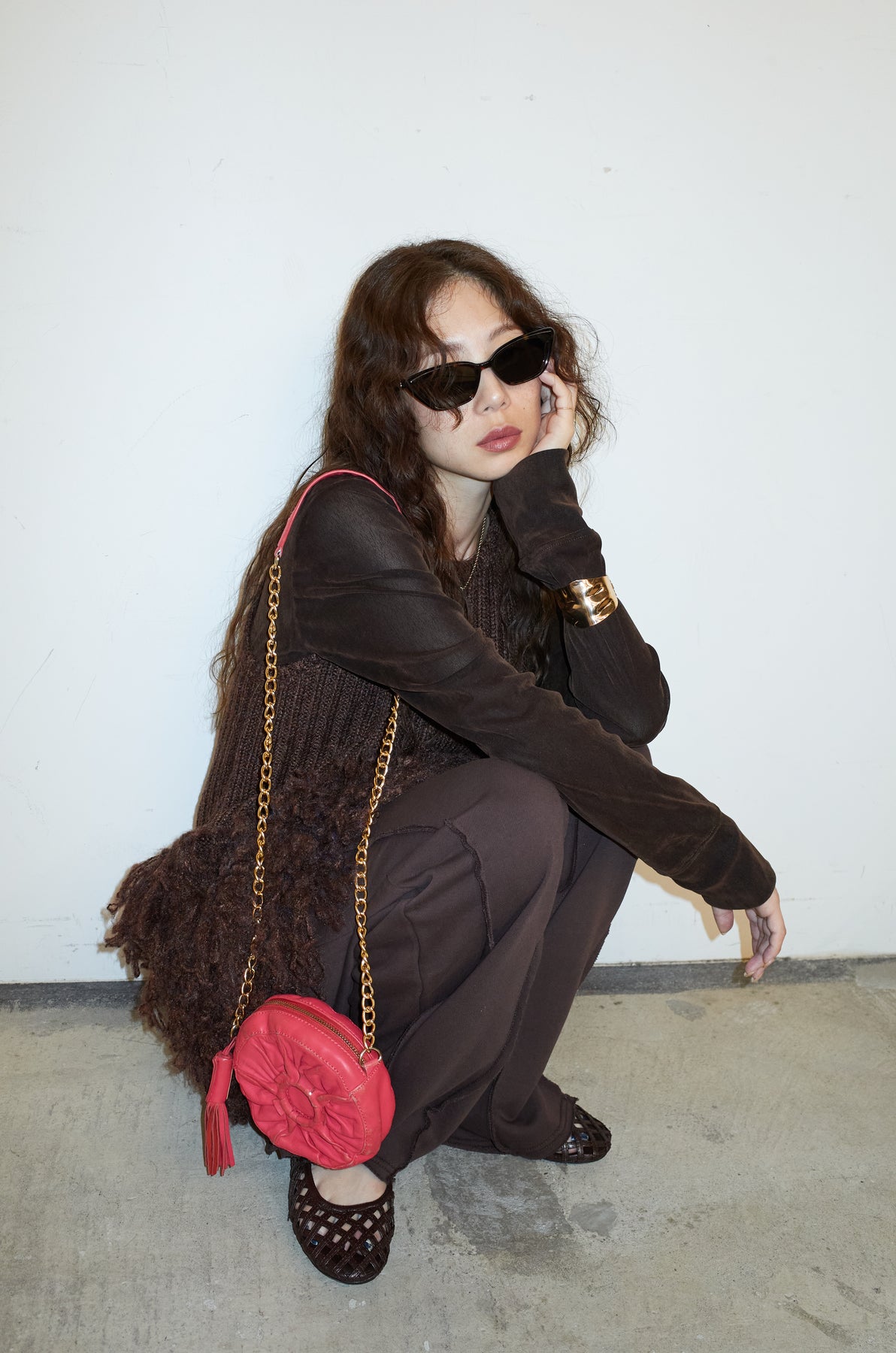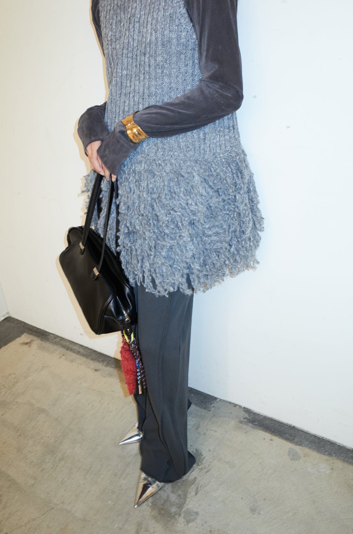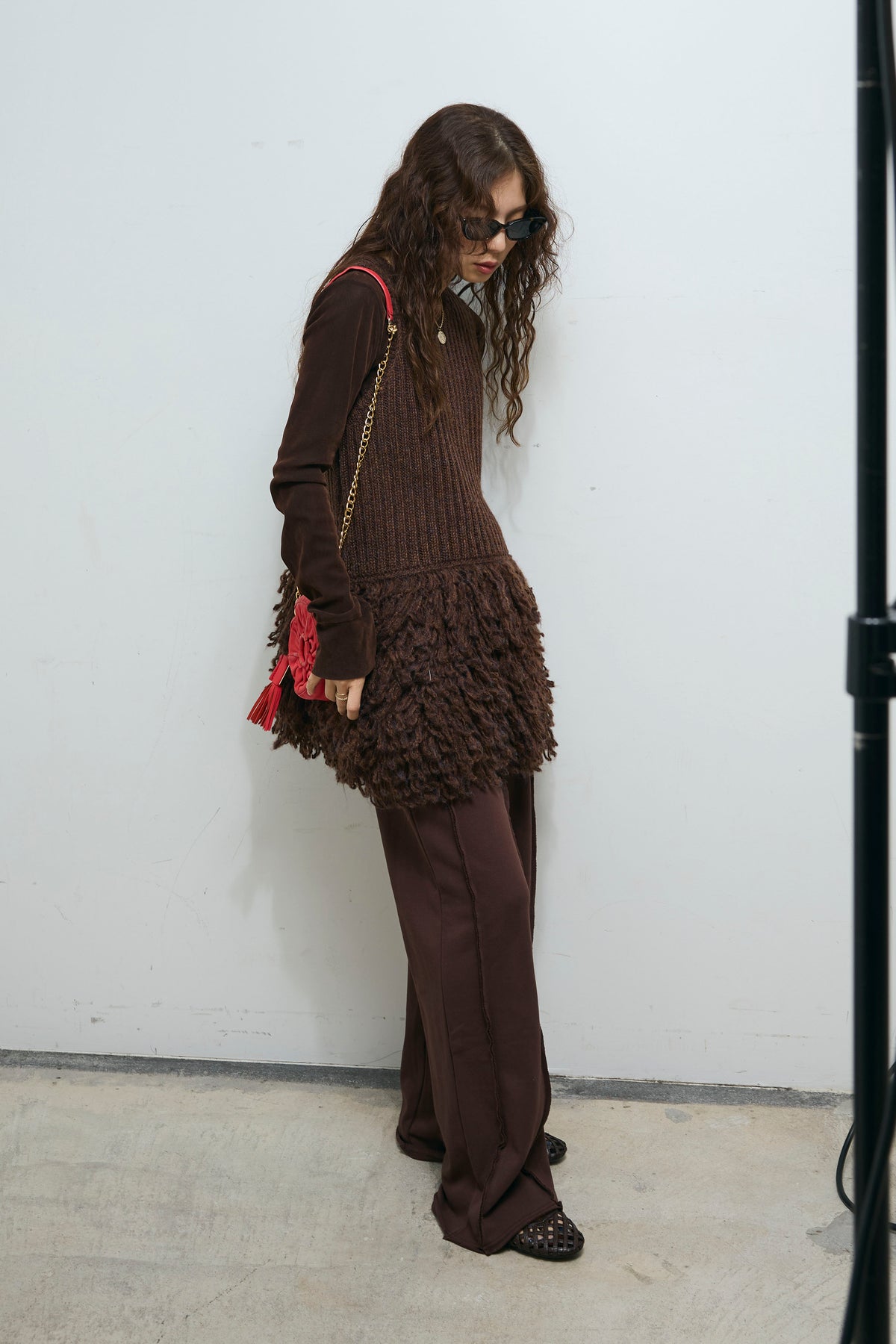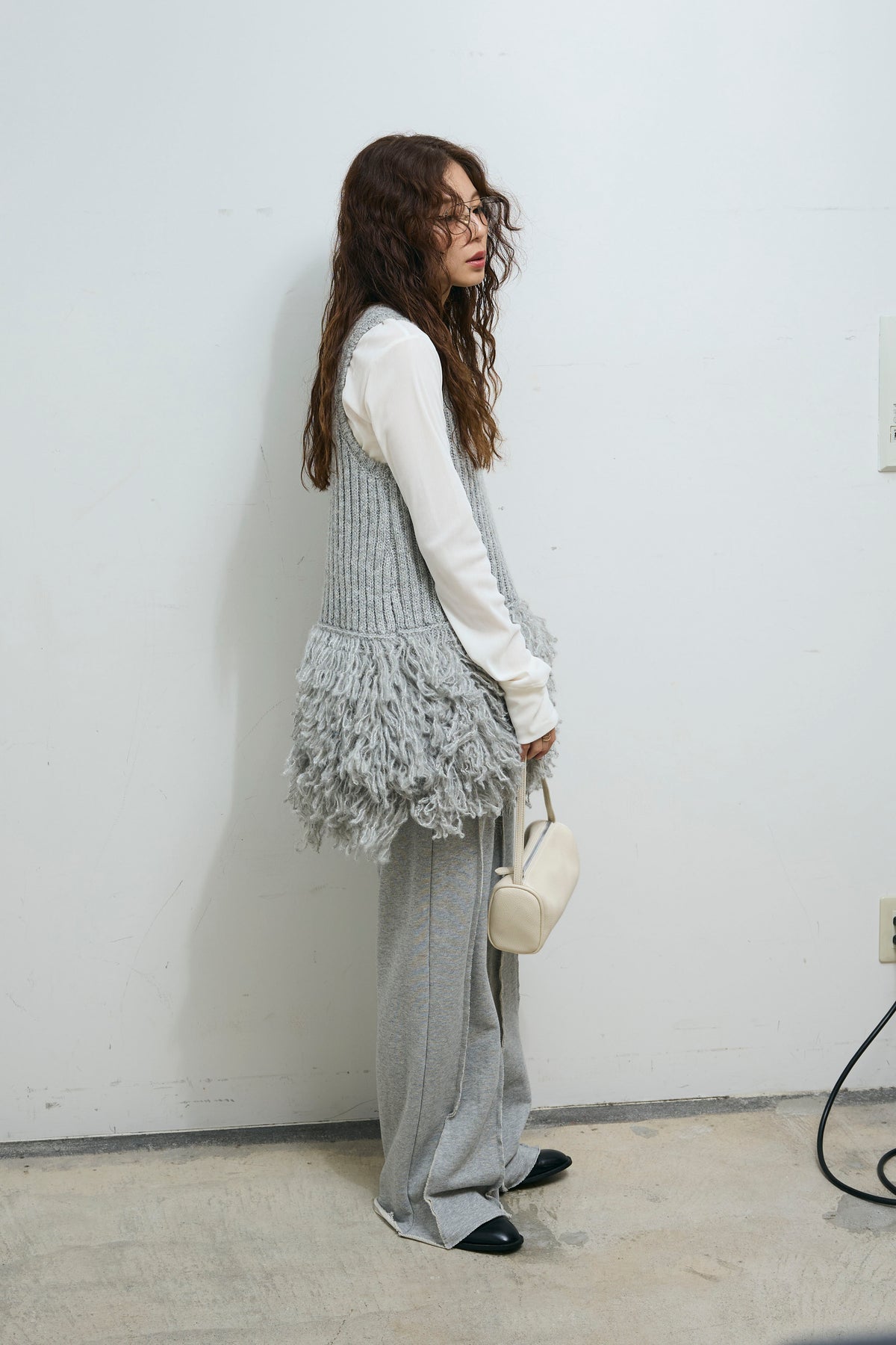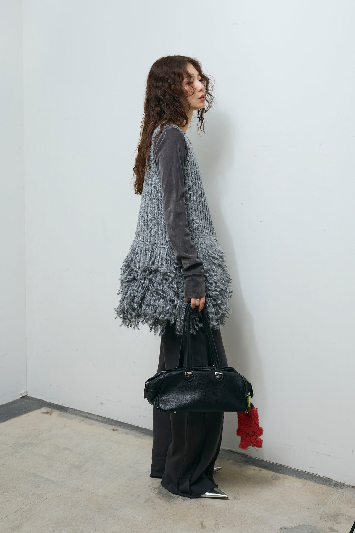 [予約/SET]フリンジ切り替えニットチュニック+ベロアチュールヘンリーネックT+ストレート裏毛パンツ(3set)