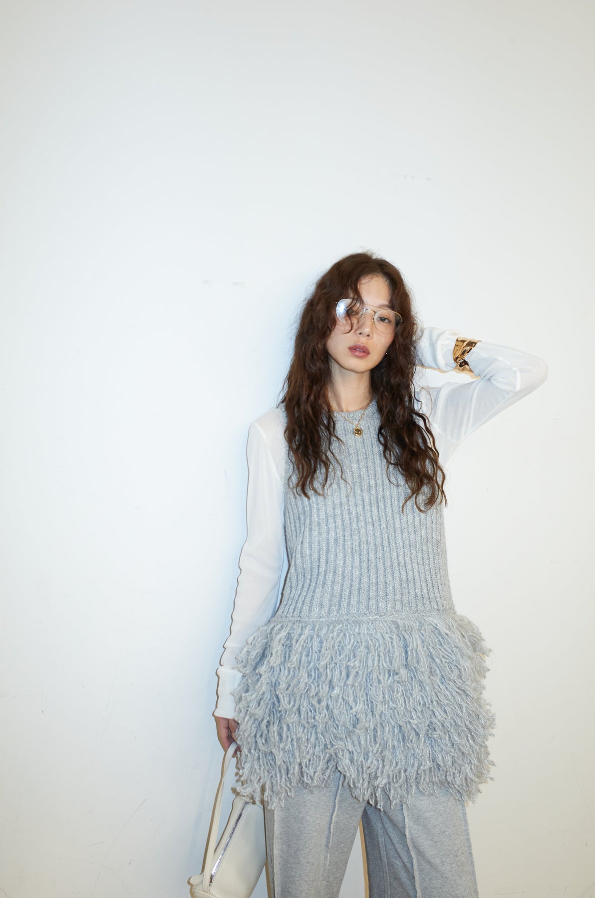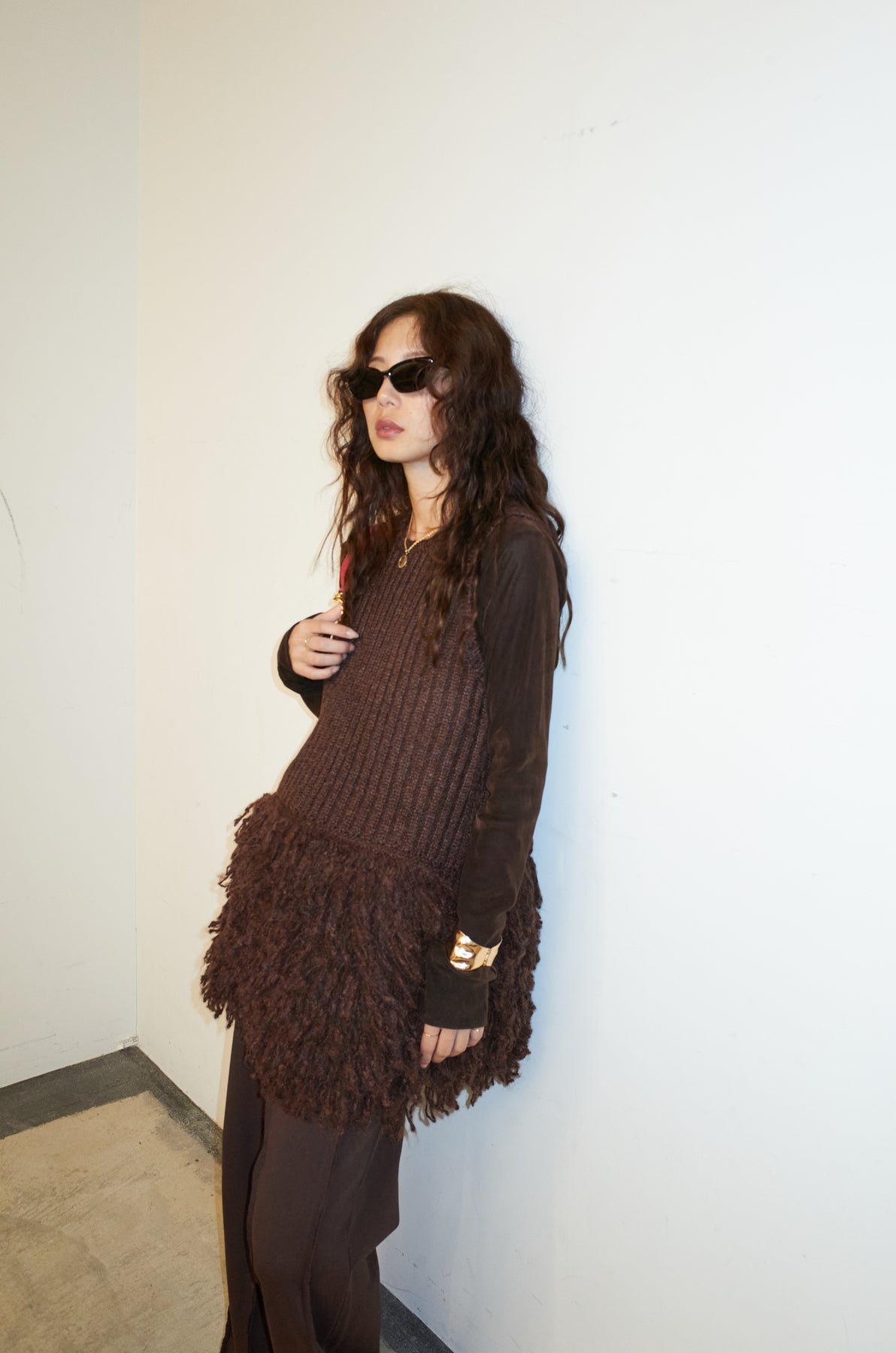 [予約]フリンジ切り替えニットチュニック