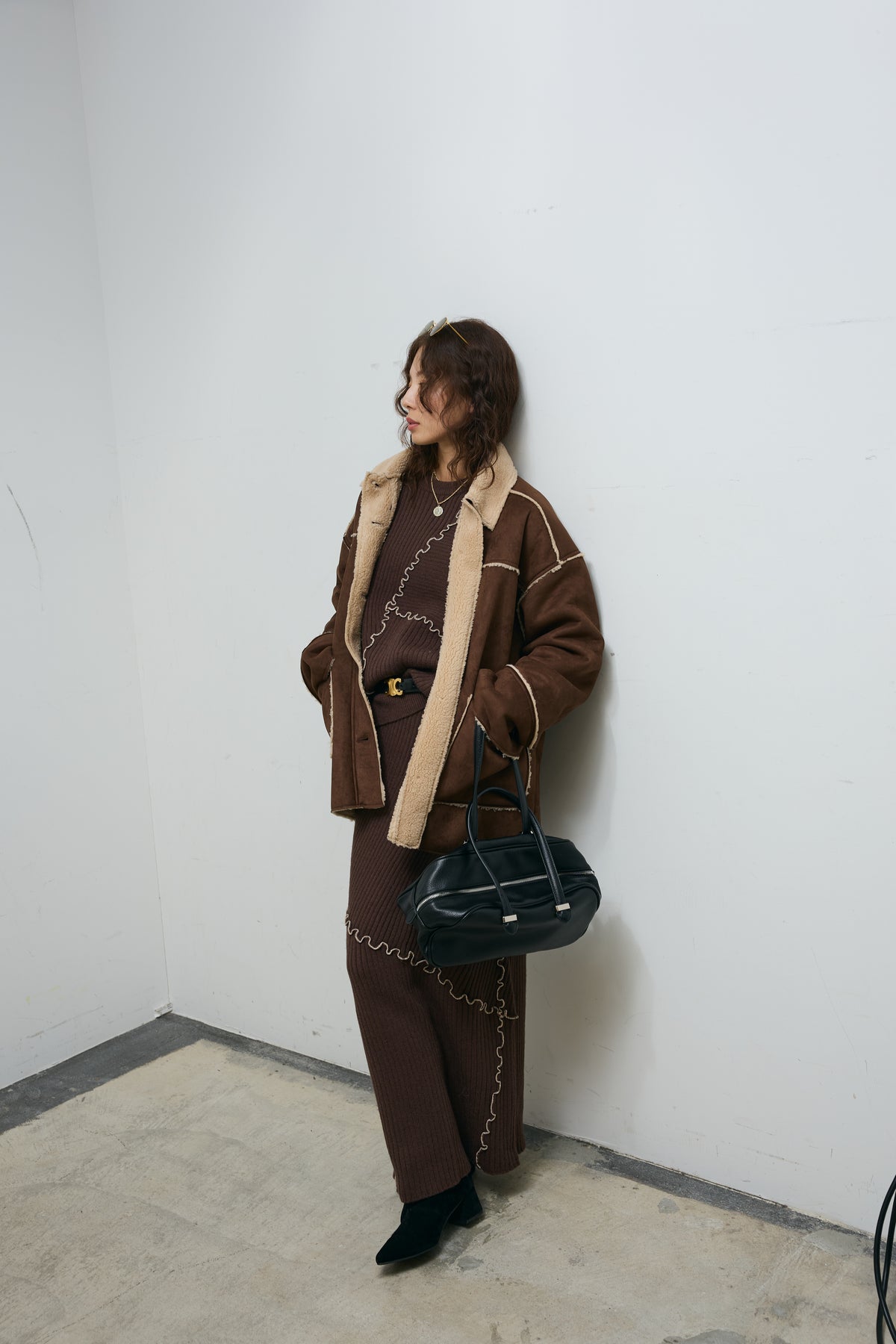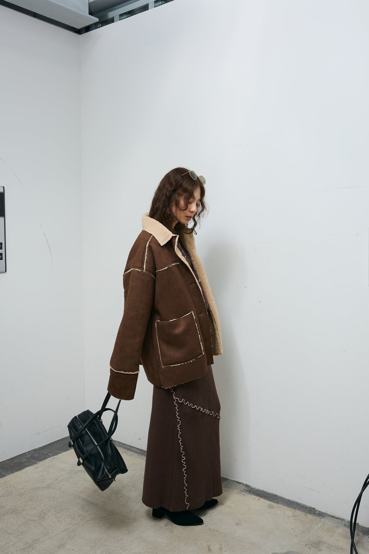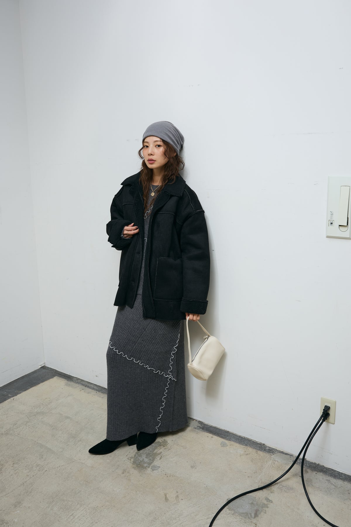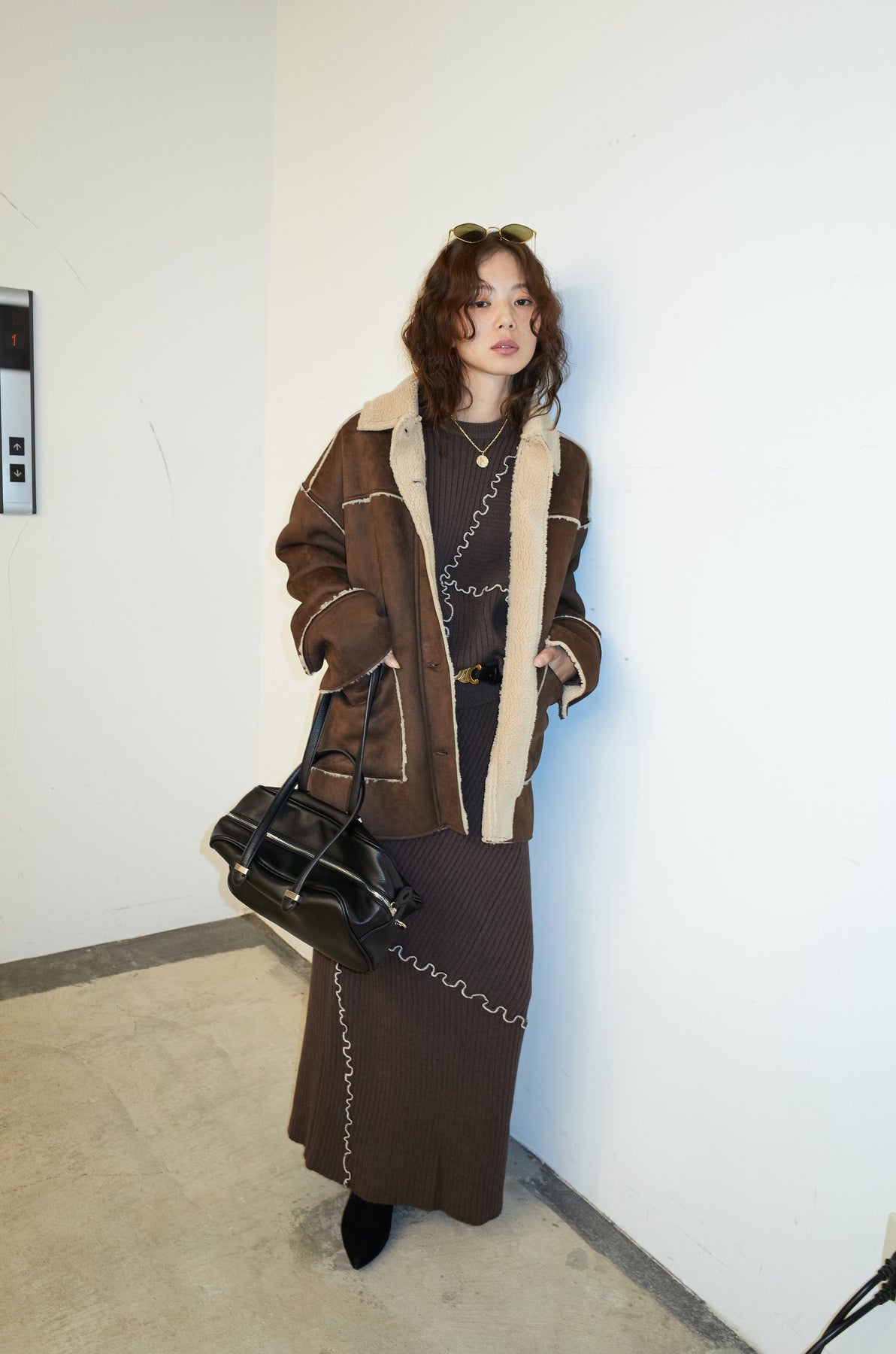 [予約/SET]フェイクムートンジャケット+ランダムメローニットスカート(2set)