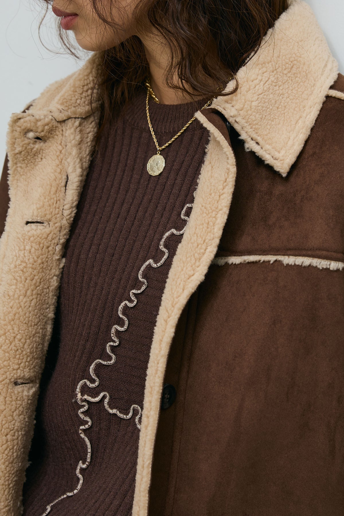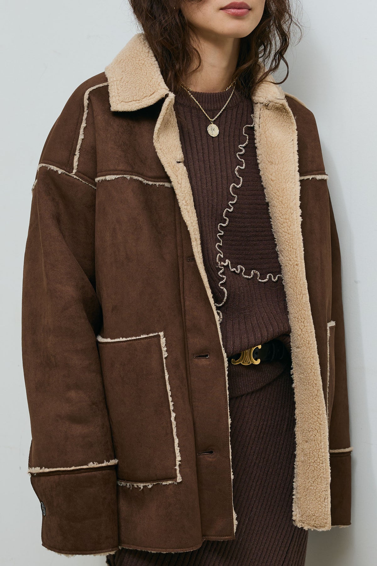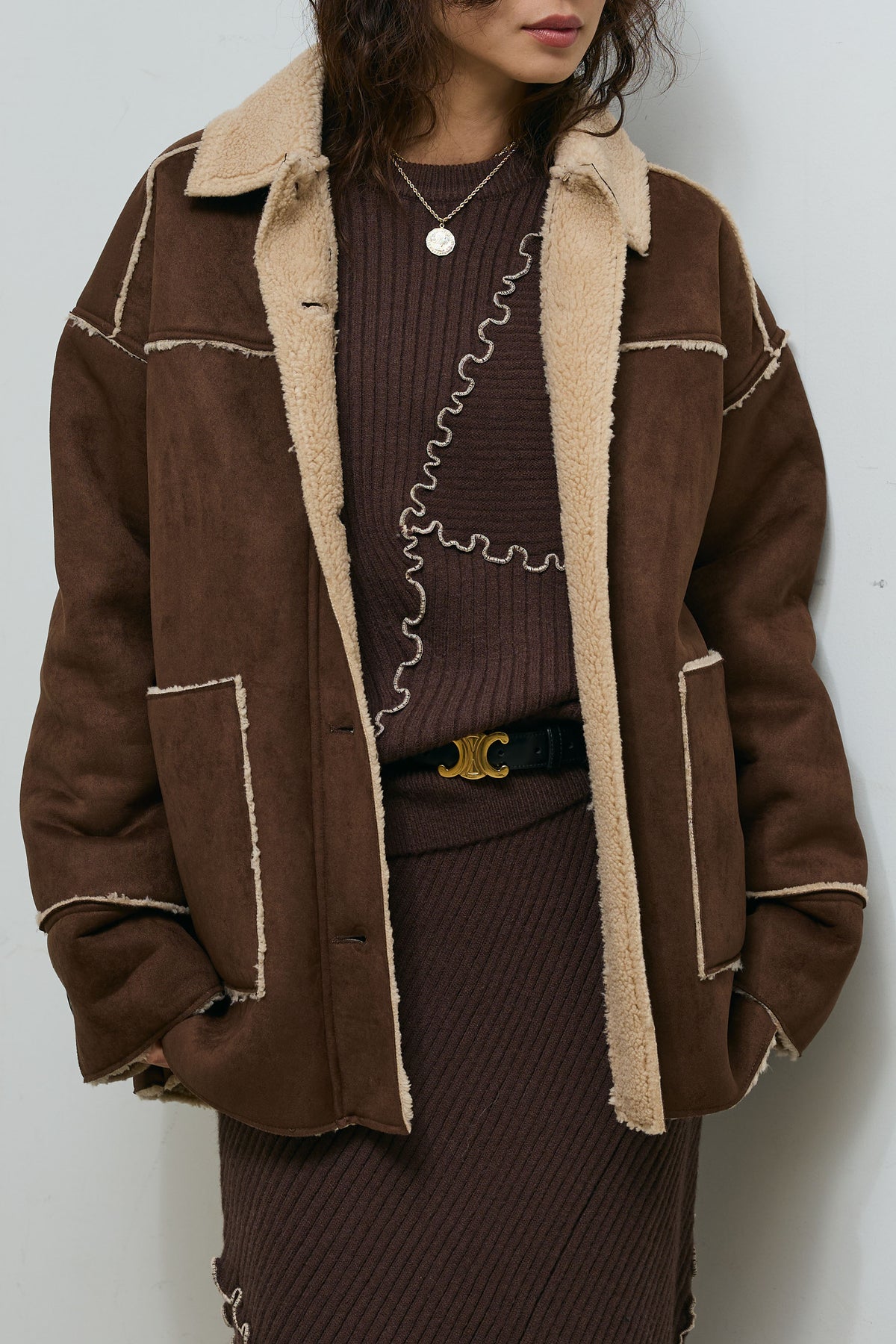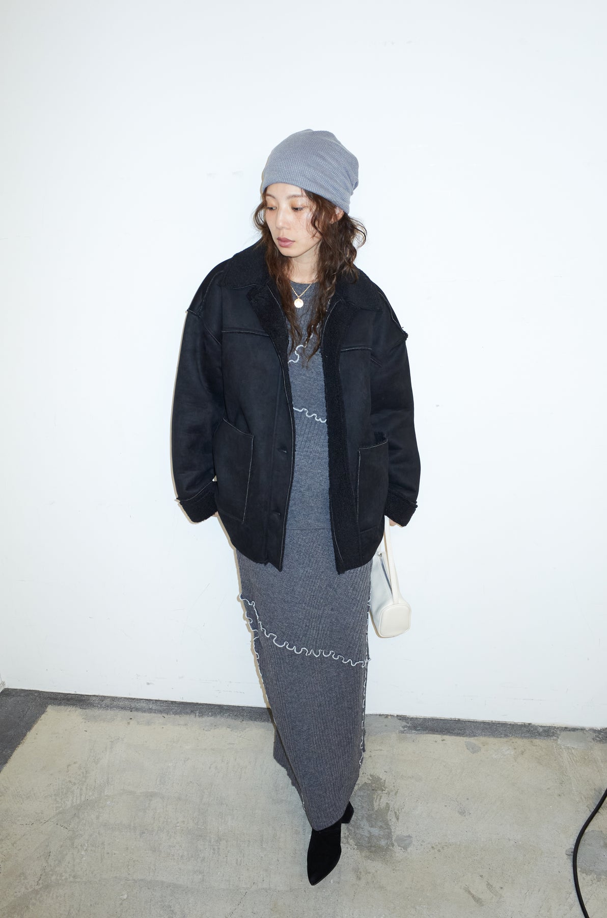 [予約/SET]フェイクムートンジャケット+ランダムメローニットスカート(2set)
