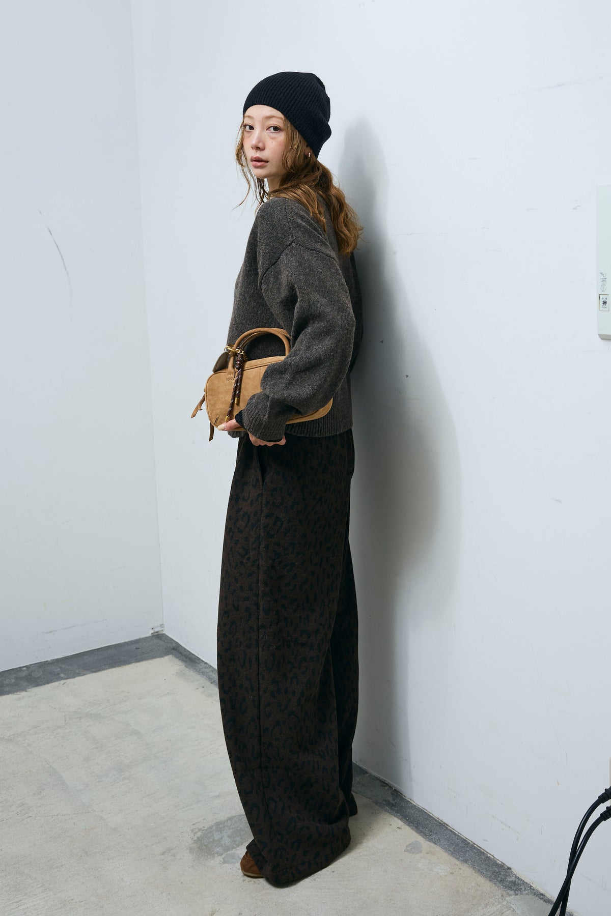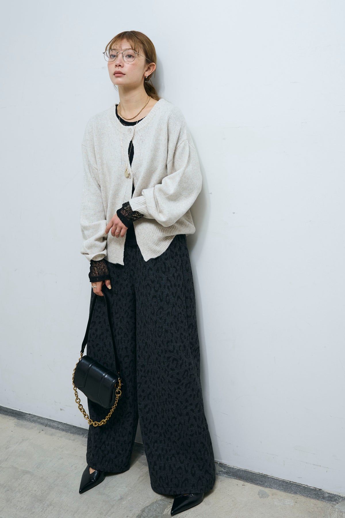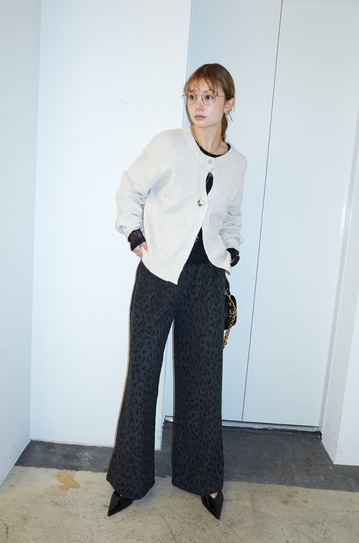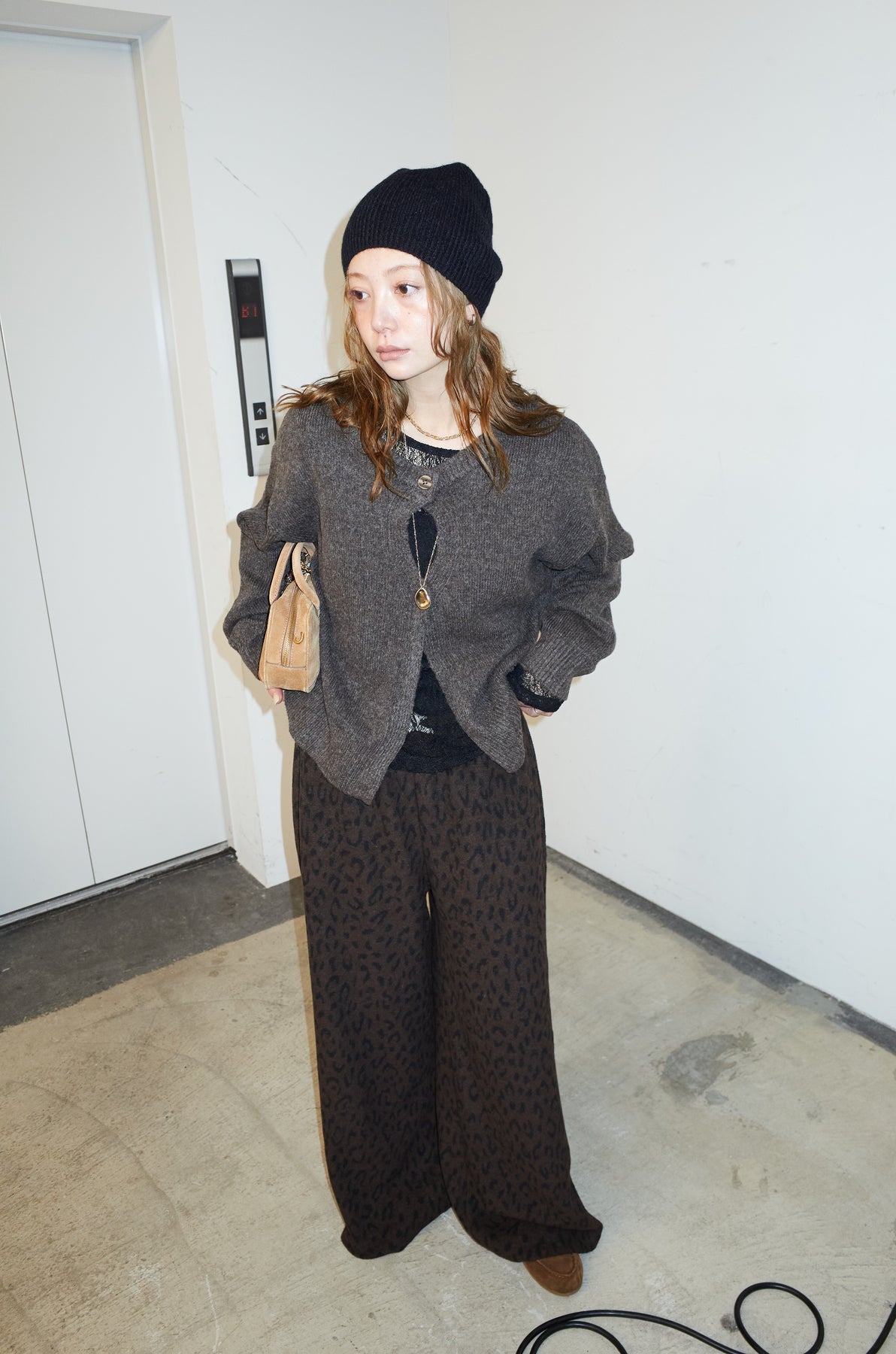 [予約/SET]センターホール2wayニット+シアーレーストップス+パイルタッチレオパード柄イージーパンツ(3set)
