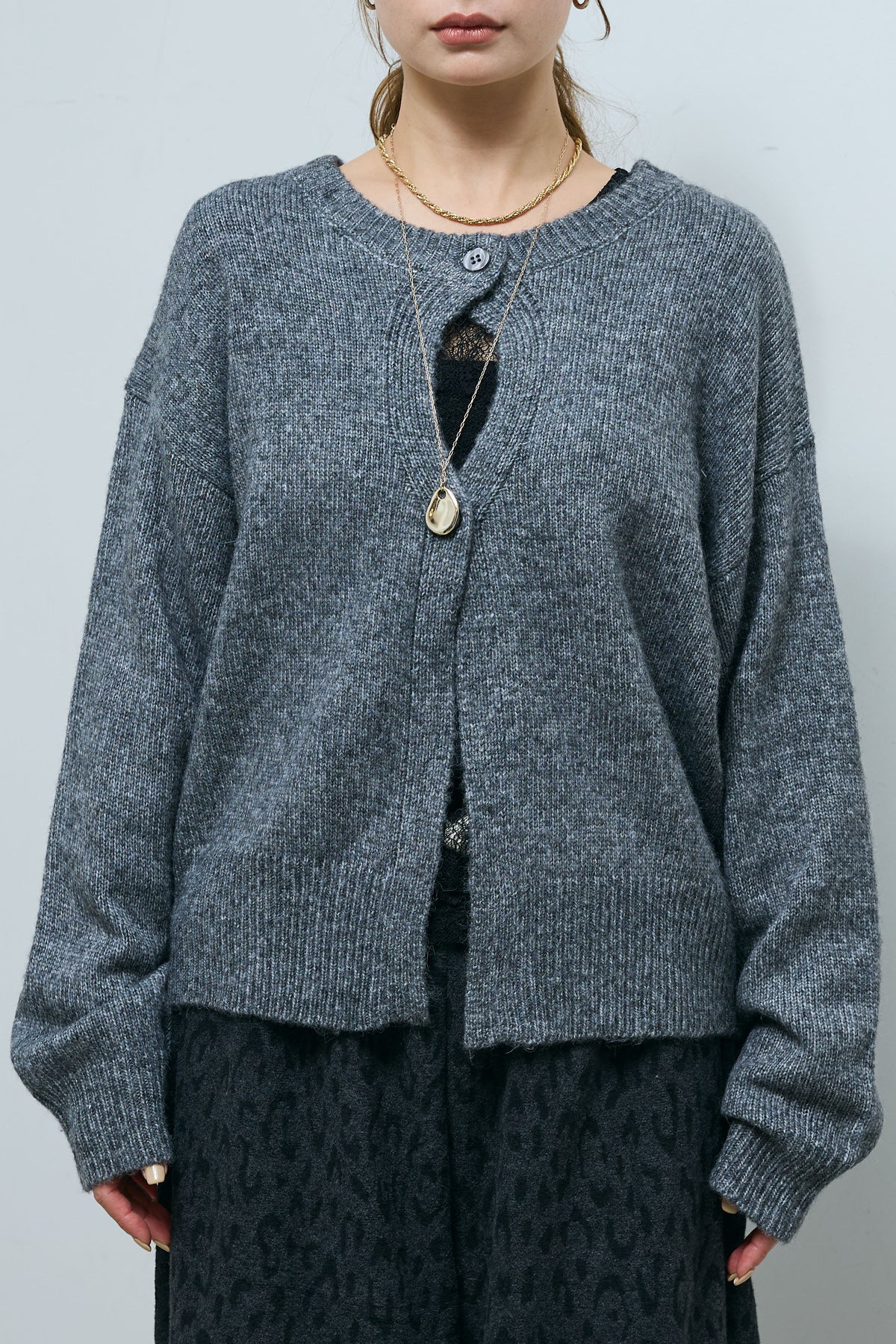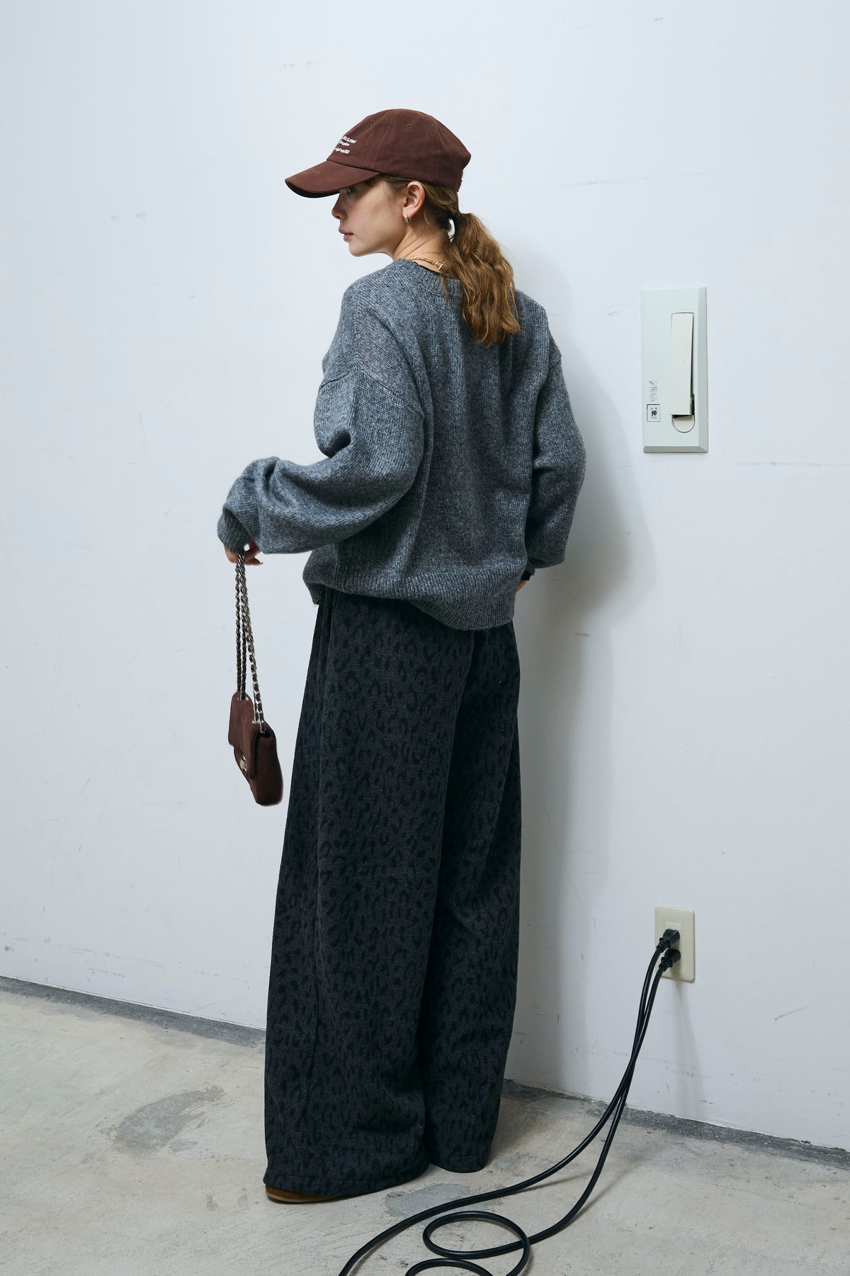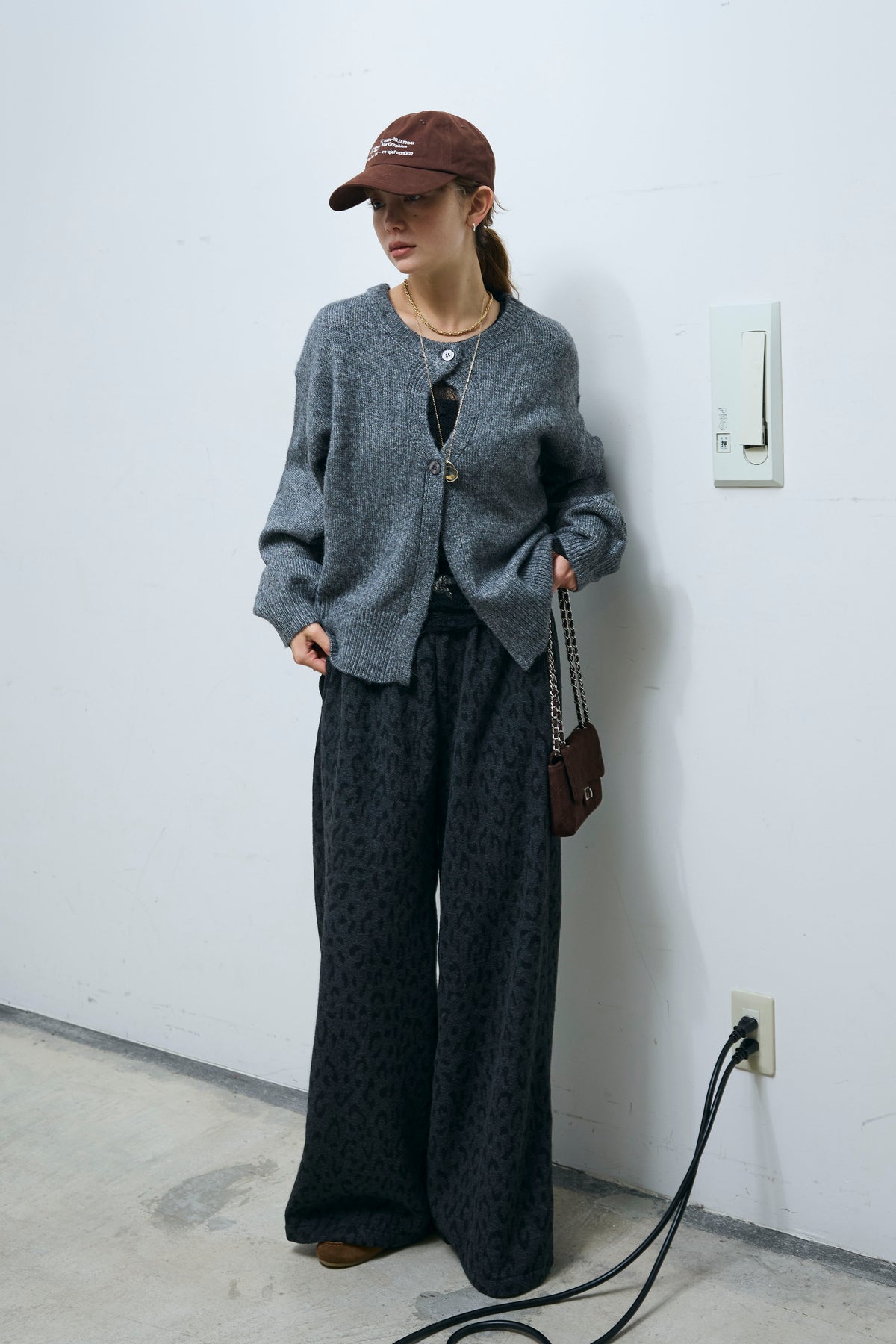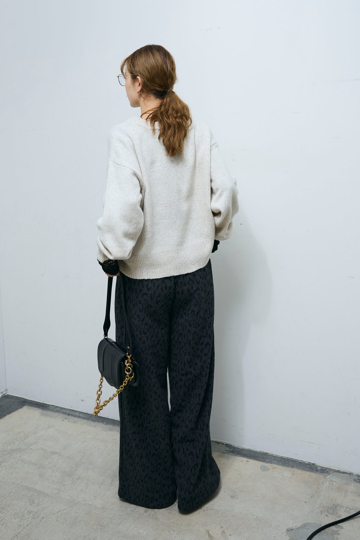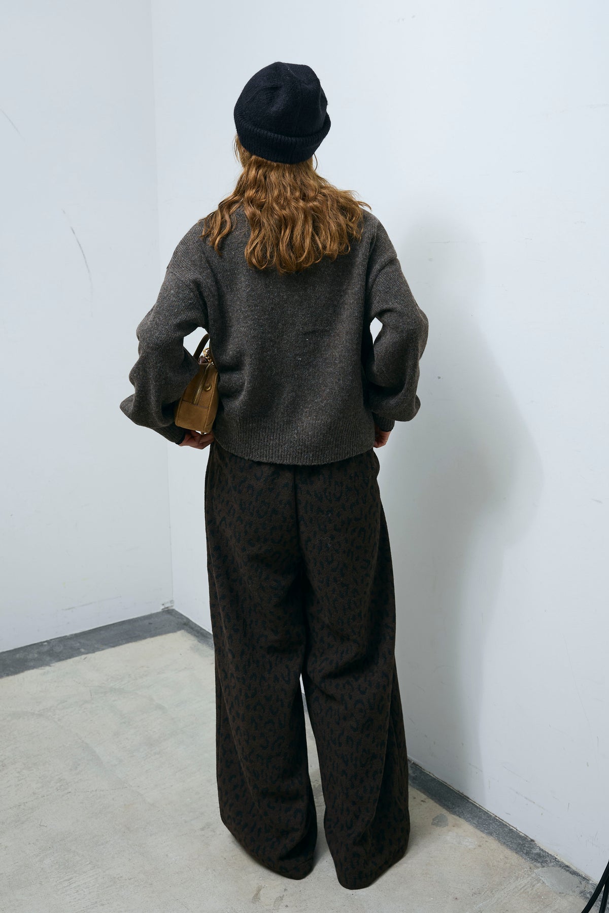 [予約/SET]センターホール2wayニット+シアーレーストップス+パイルタッチレオパード柄イージーパンツ(3set)