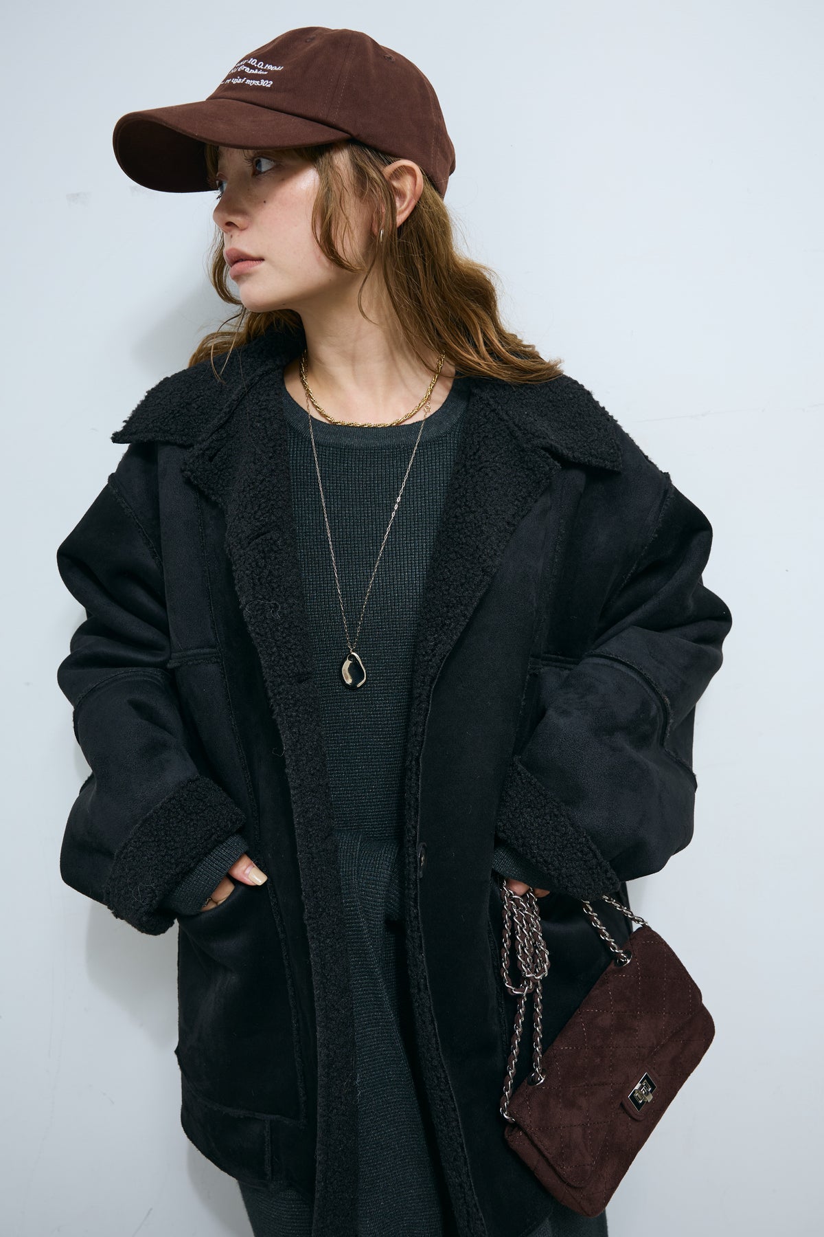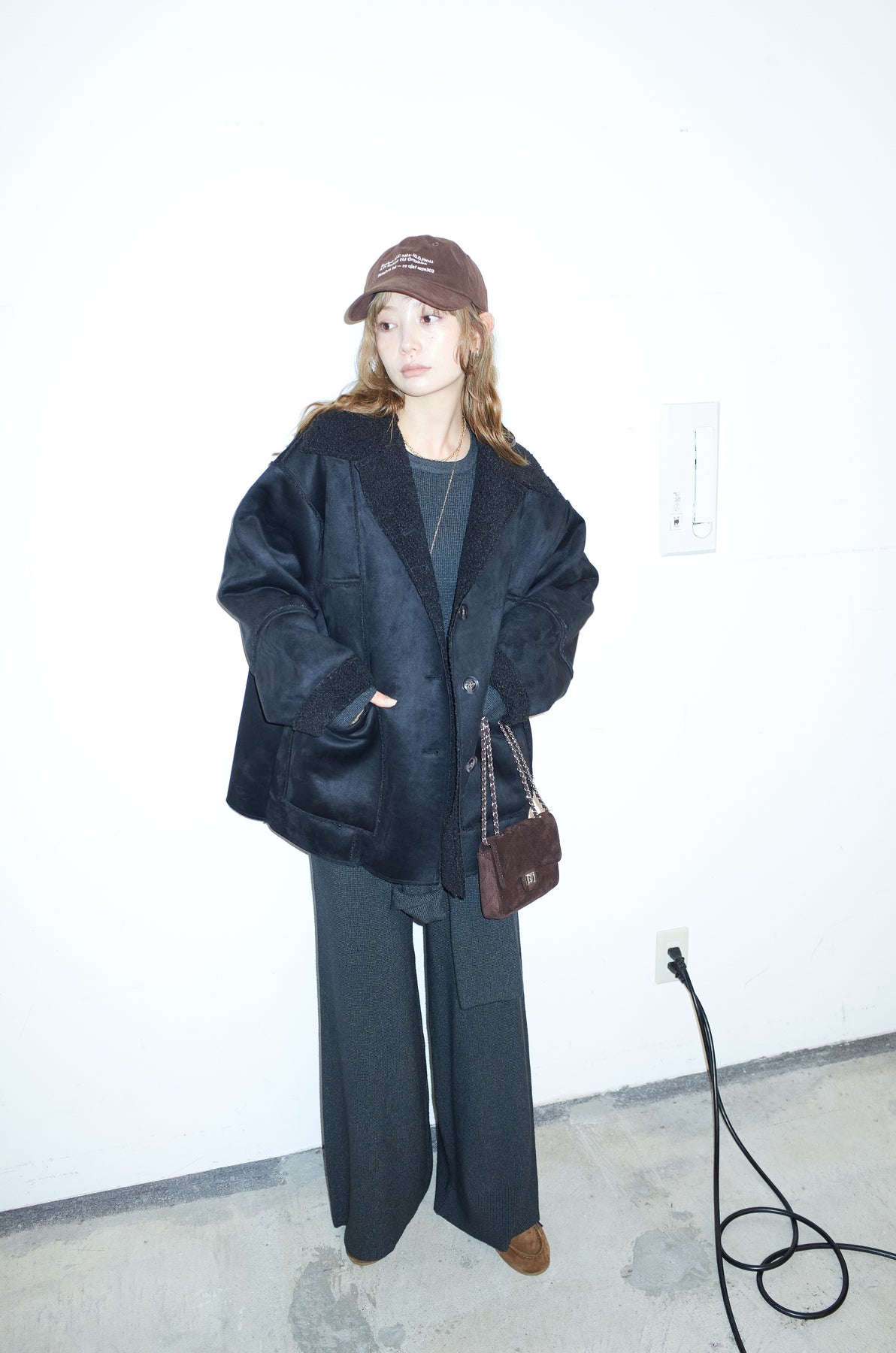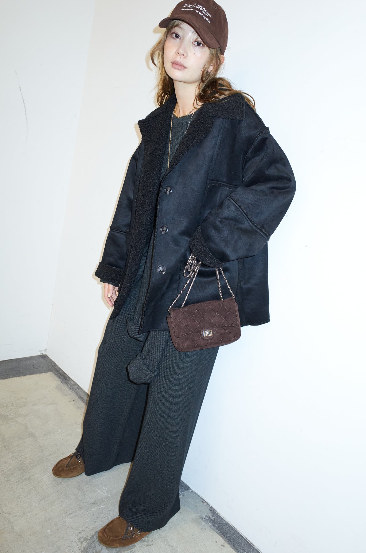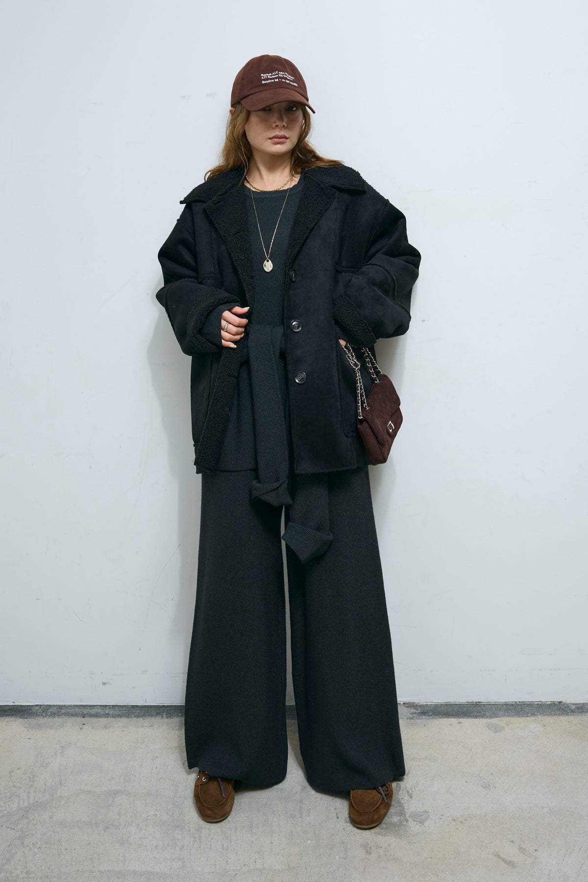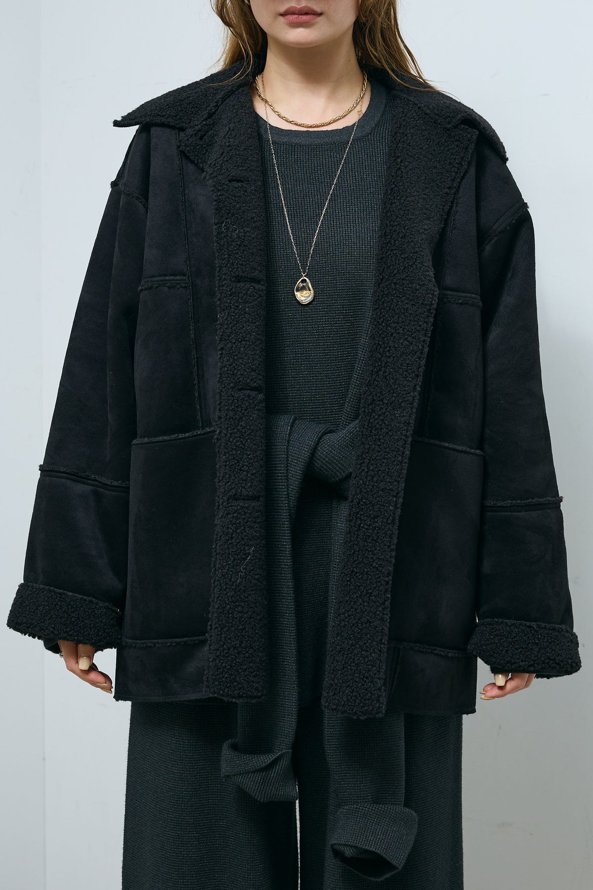 [予約/SET]ウエストレイヤードニットセットアップ+フェイクムートンカバーオール(2set)